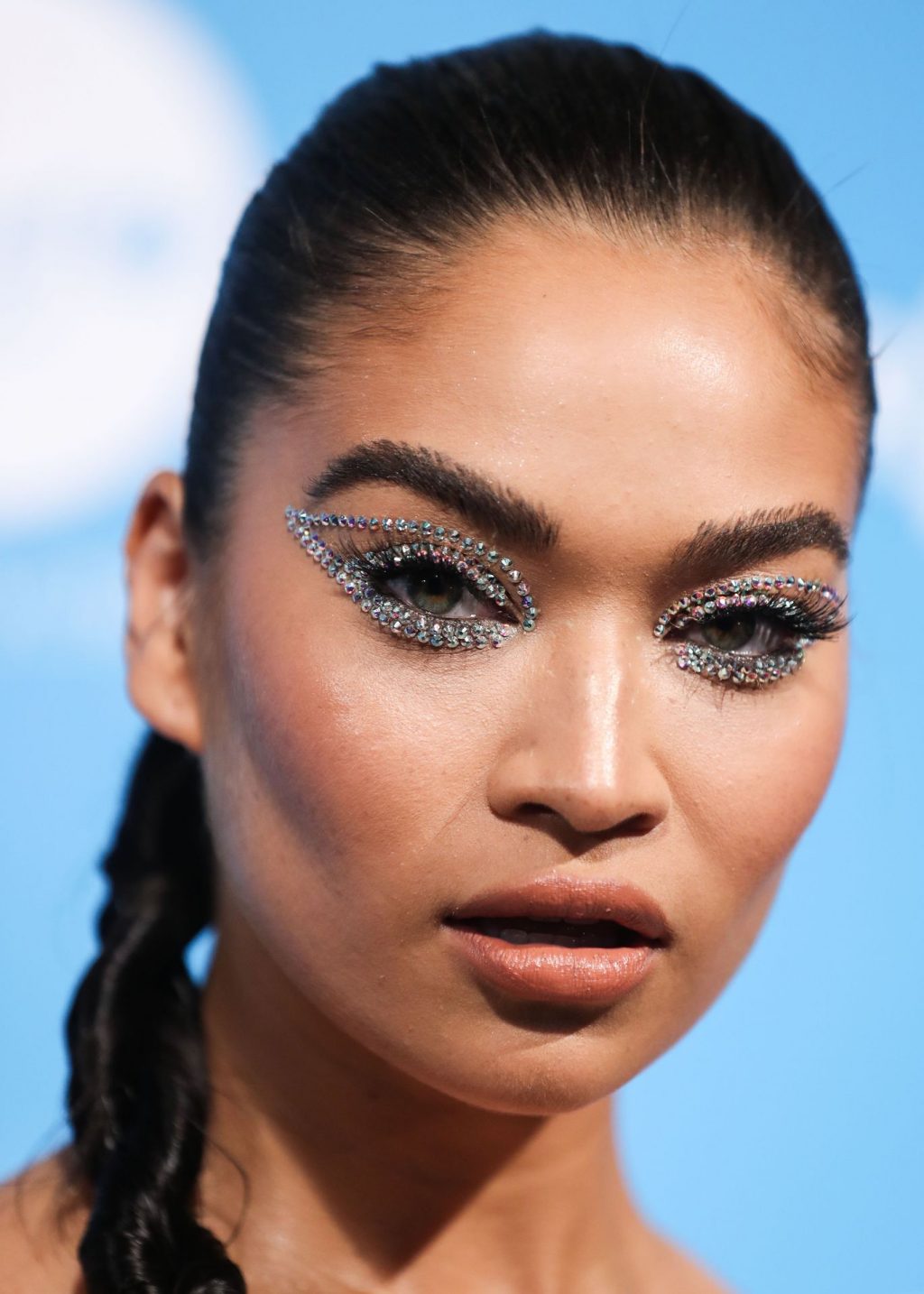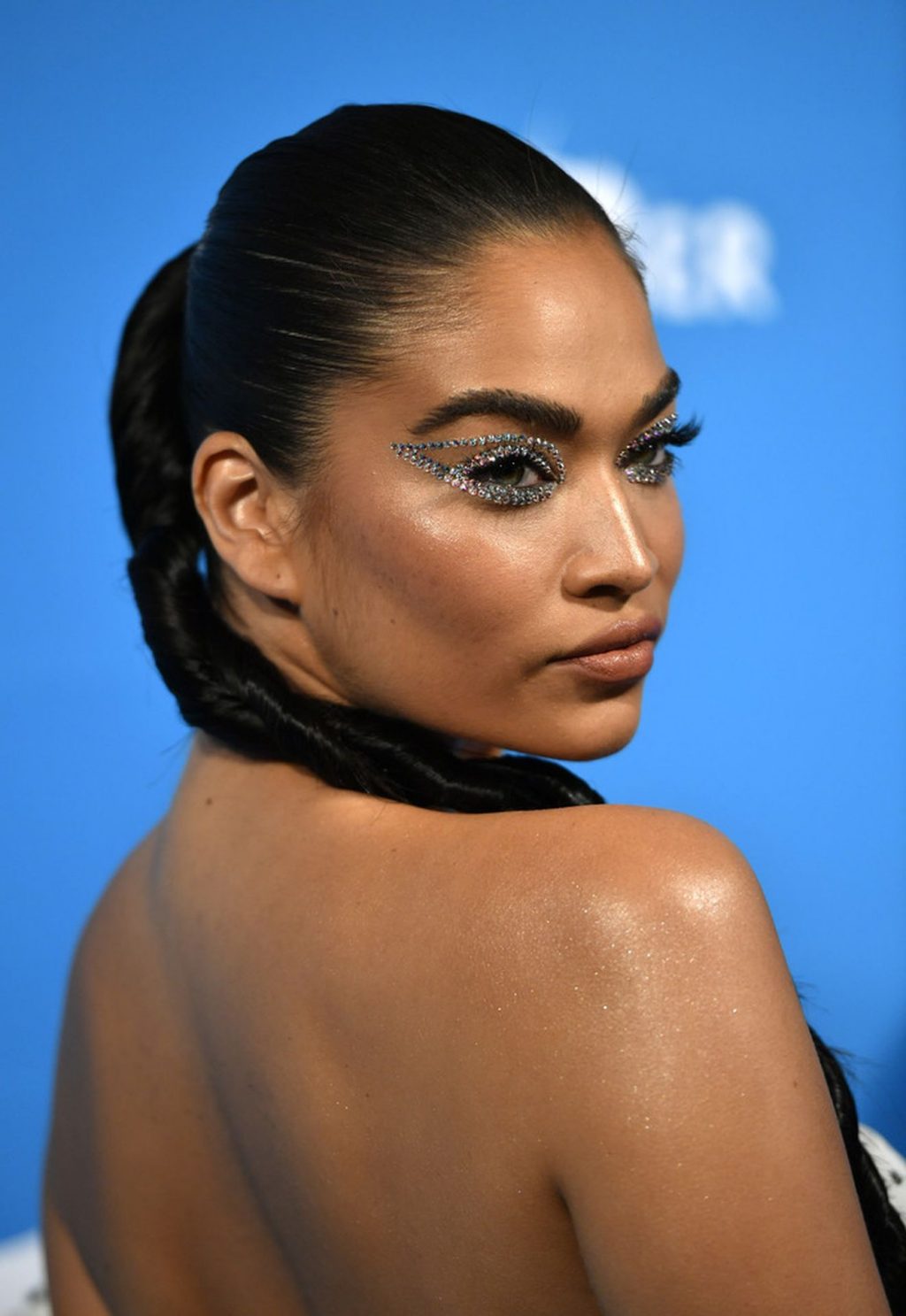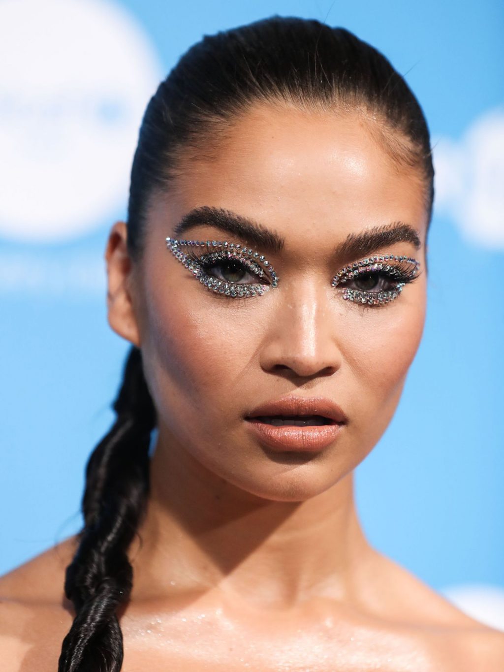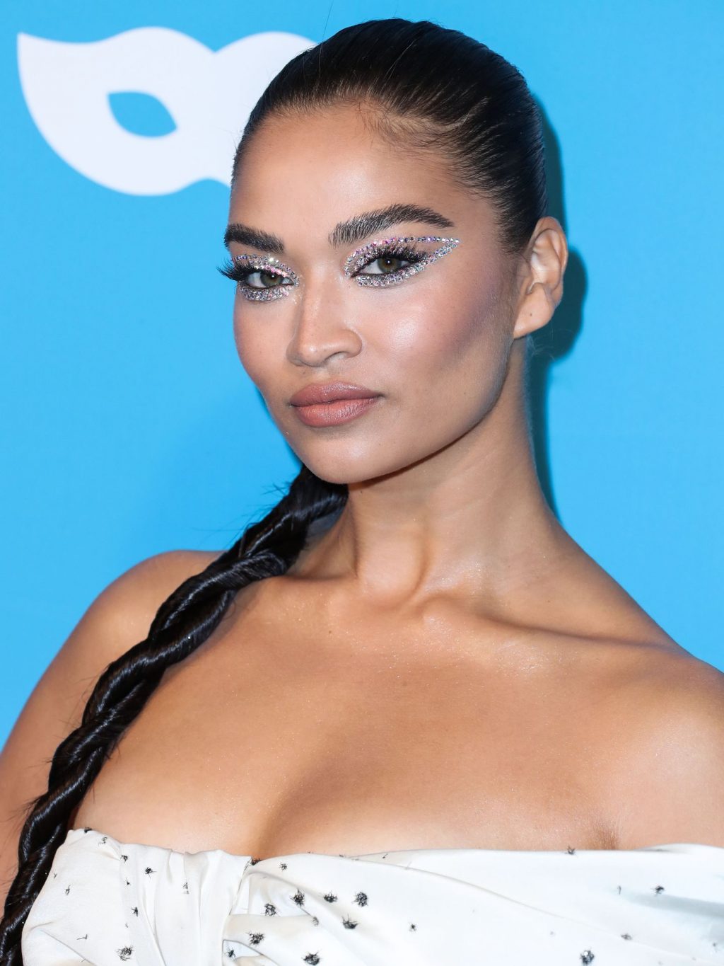 Model Shanina Shaik was photographed in a off-the-shoulder dress at the 7th Annual UNICEF Masquerade Ball 2019 held at the Kimpton La Peer Hotel on October 26, 2019 in West Hollywood, Los Angeles.