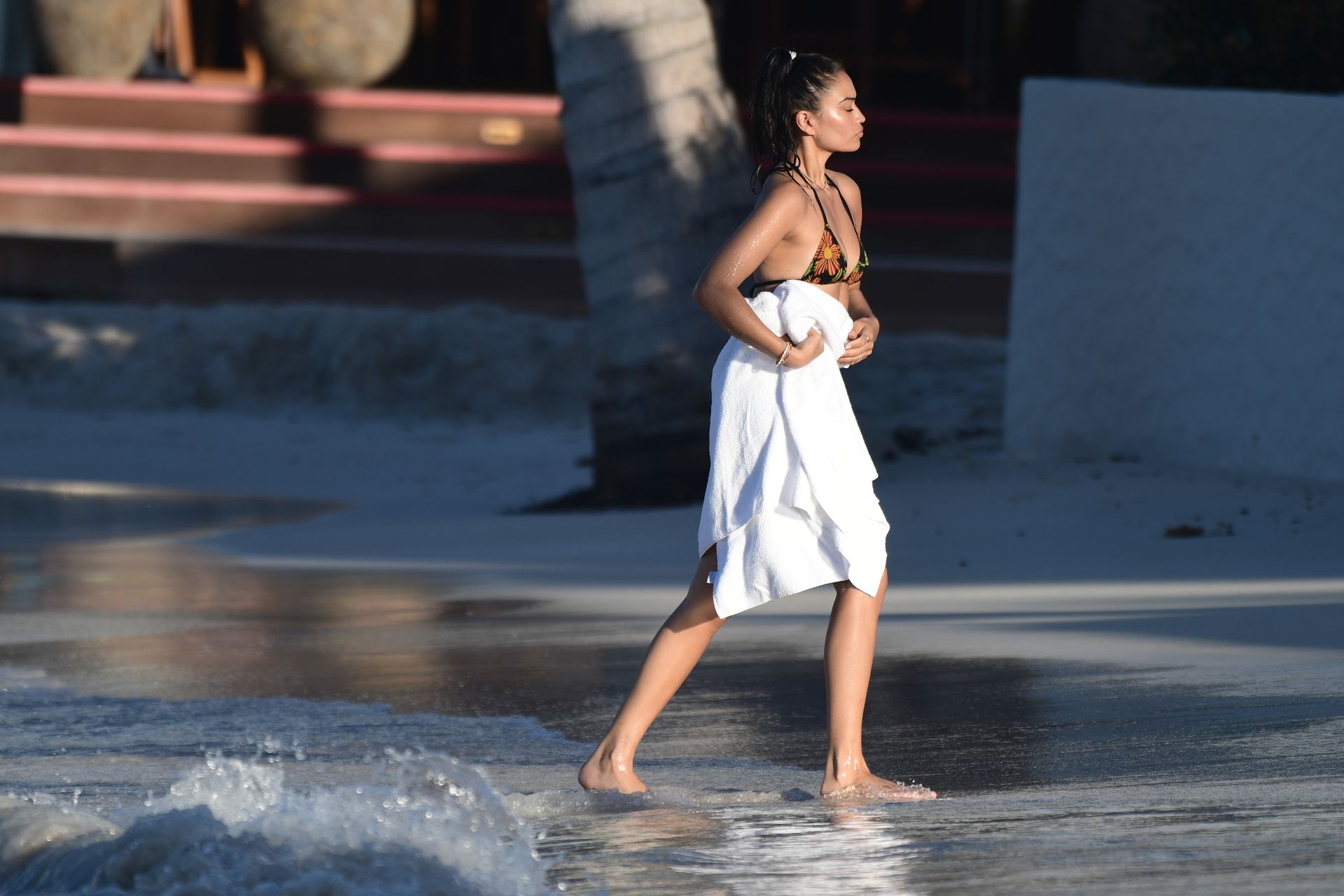 Supermodel Shanina Shaik shows off her amazing bikini body on the day after the wedding of Devon Windsor in St Barts, 11/17/2019.