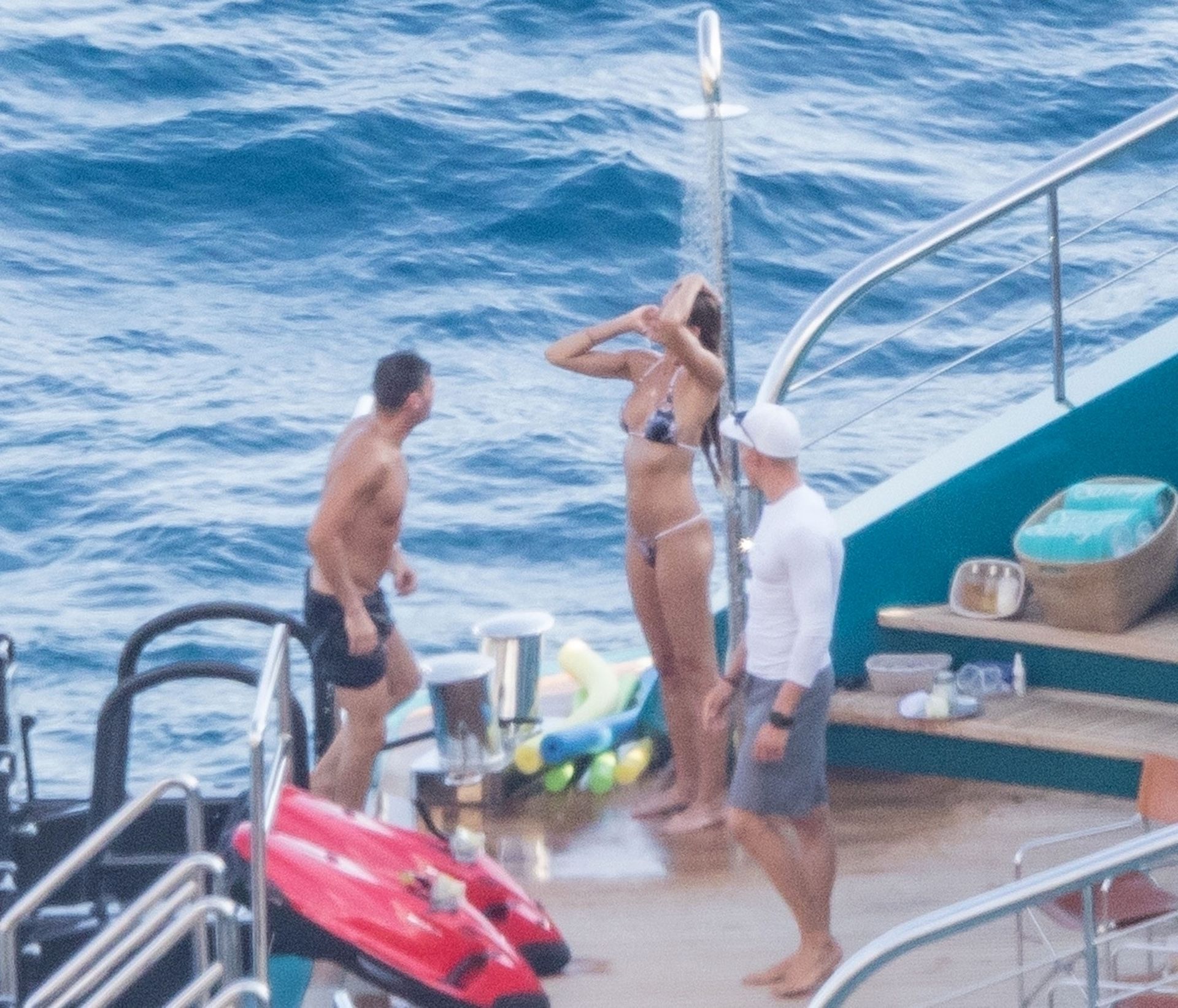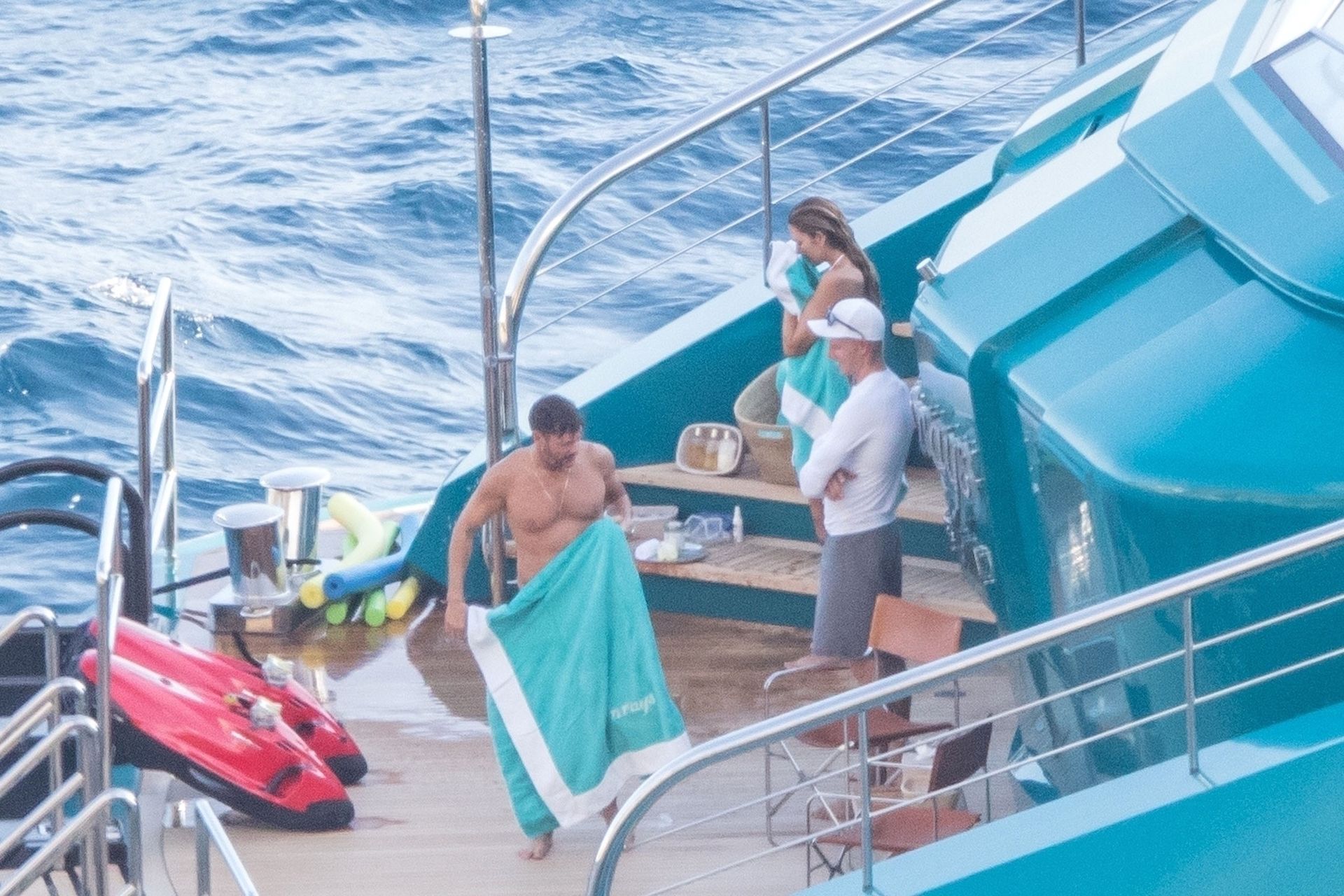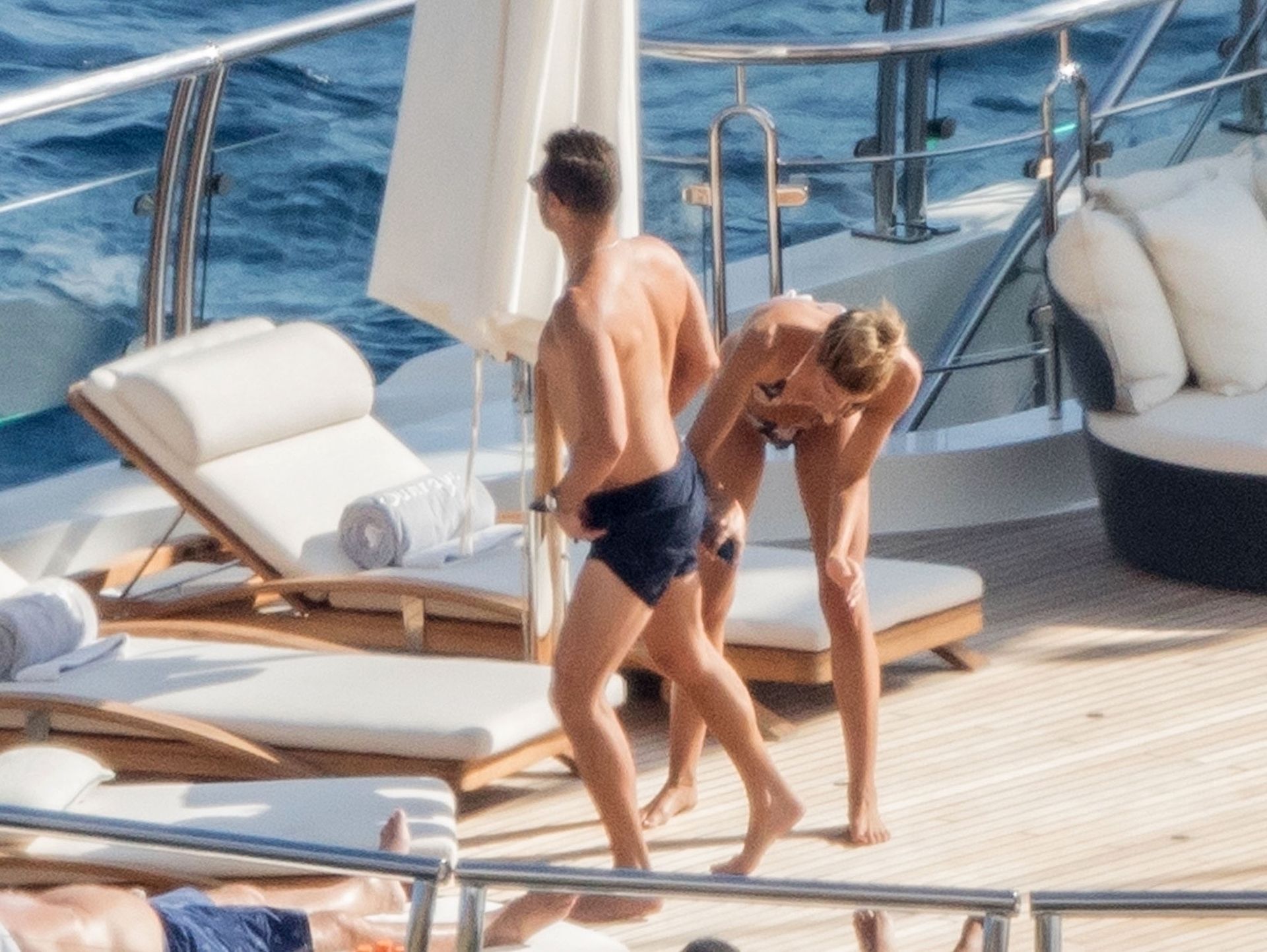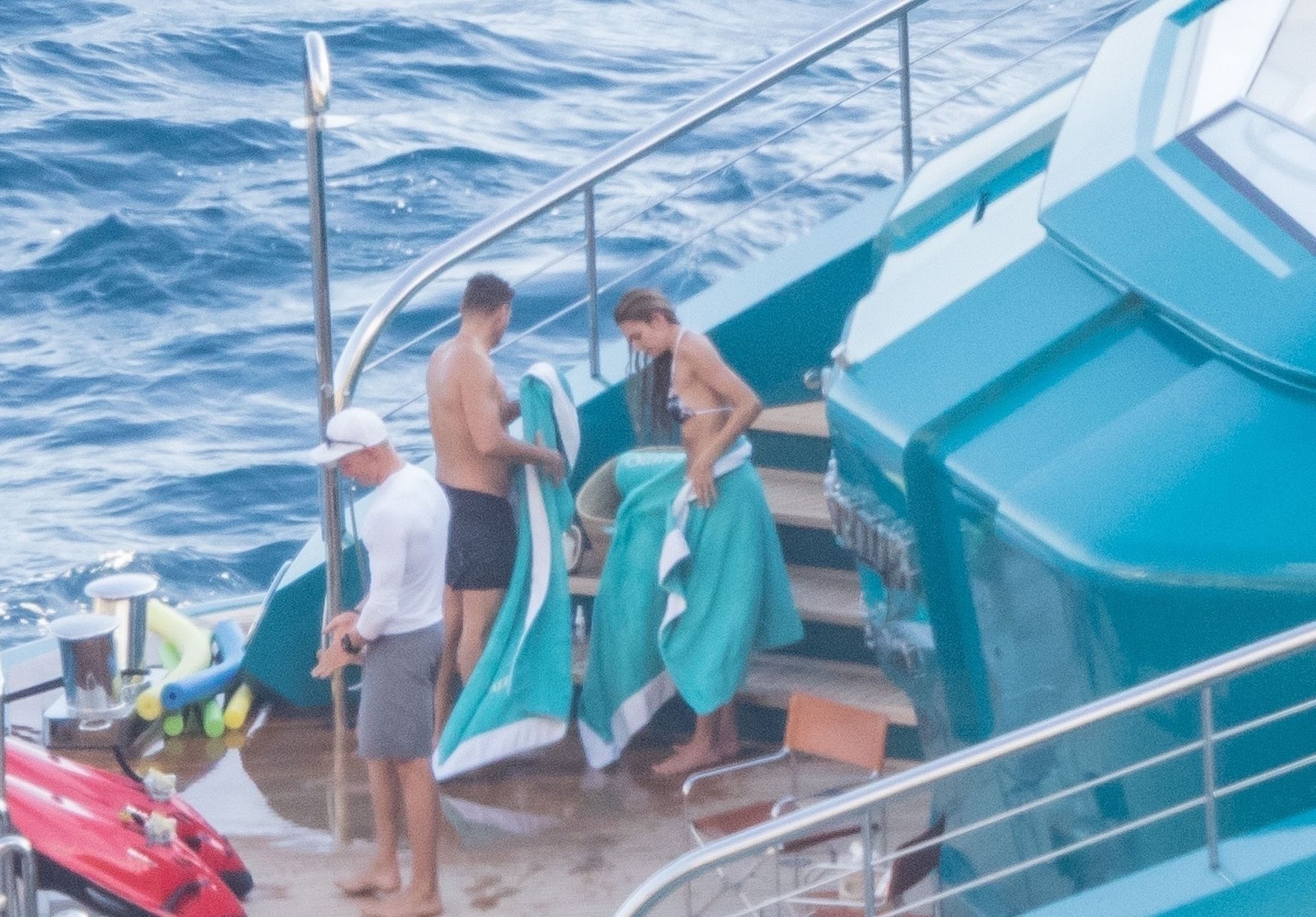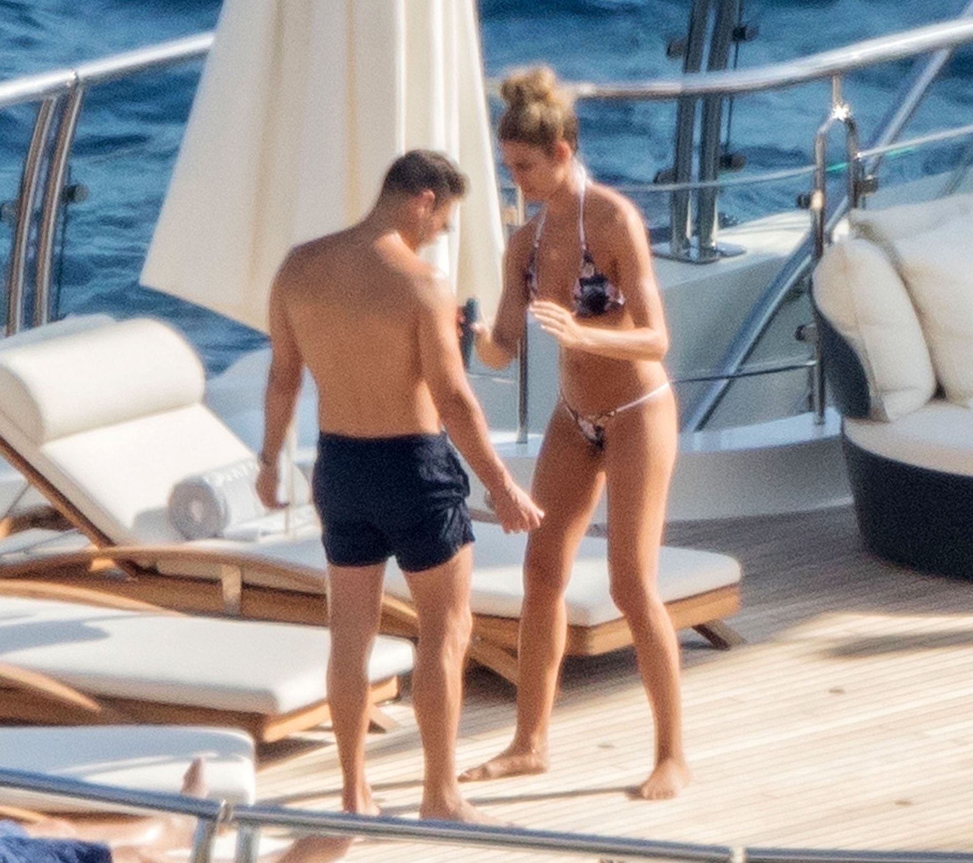 The couple were pictured relaxing onboard a luxury yacht as they enjoyed their summer holiday’s together in Italy. They were photographed diving into the sea for a swim before going back to their boat for some downtime relaxing while sunbathing.