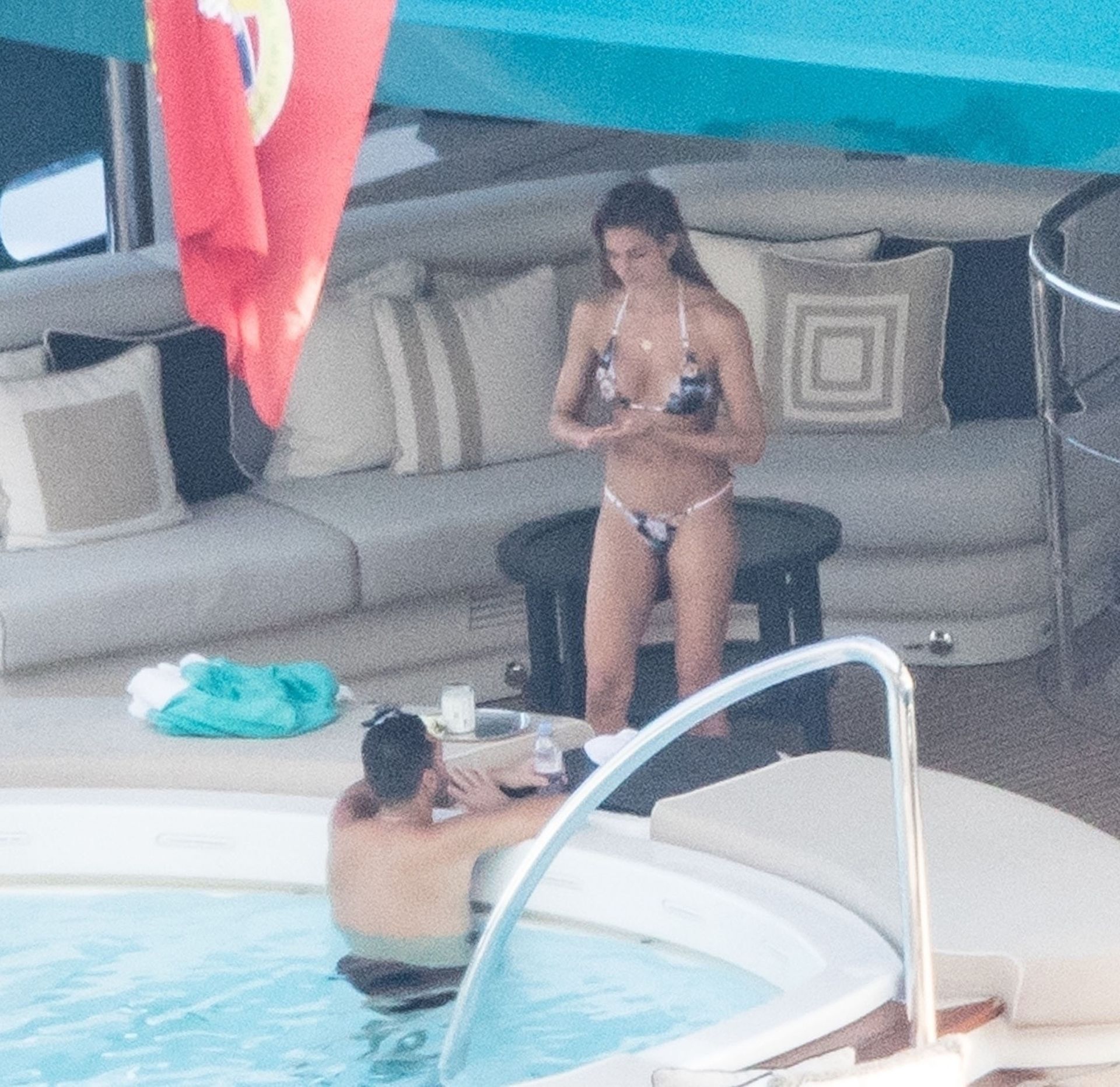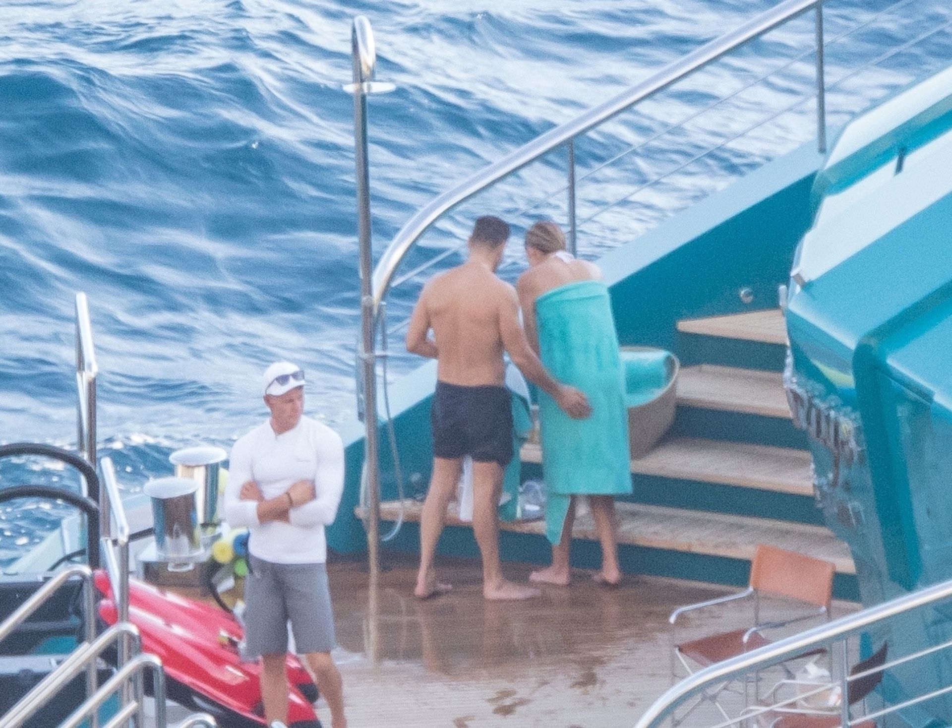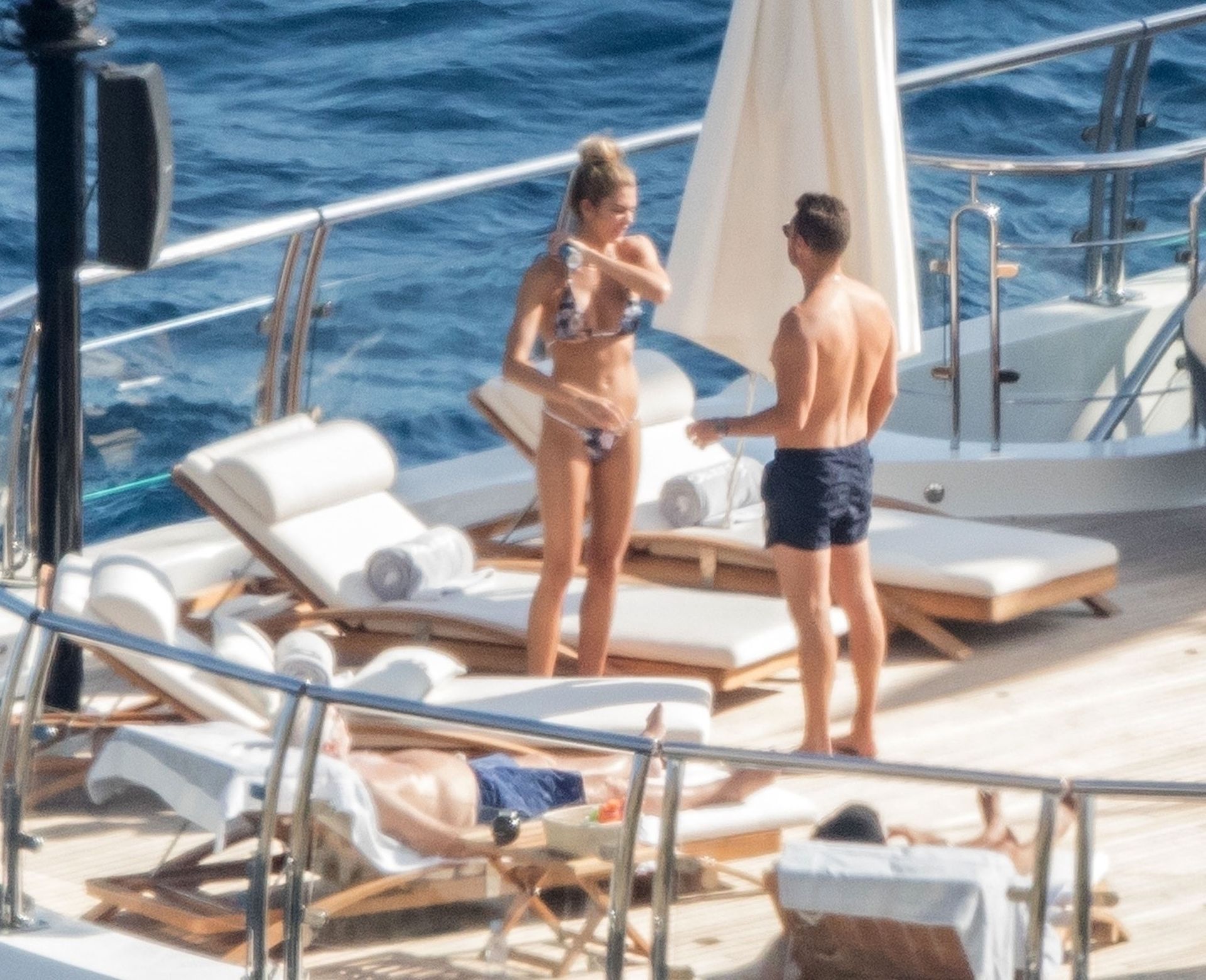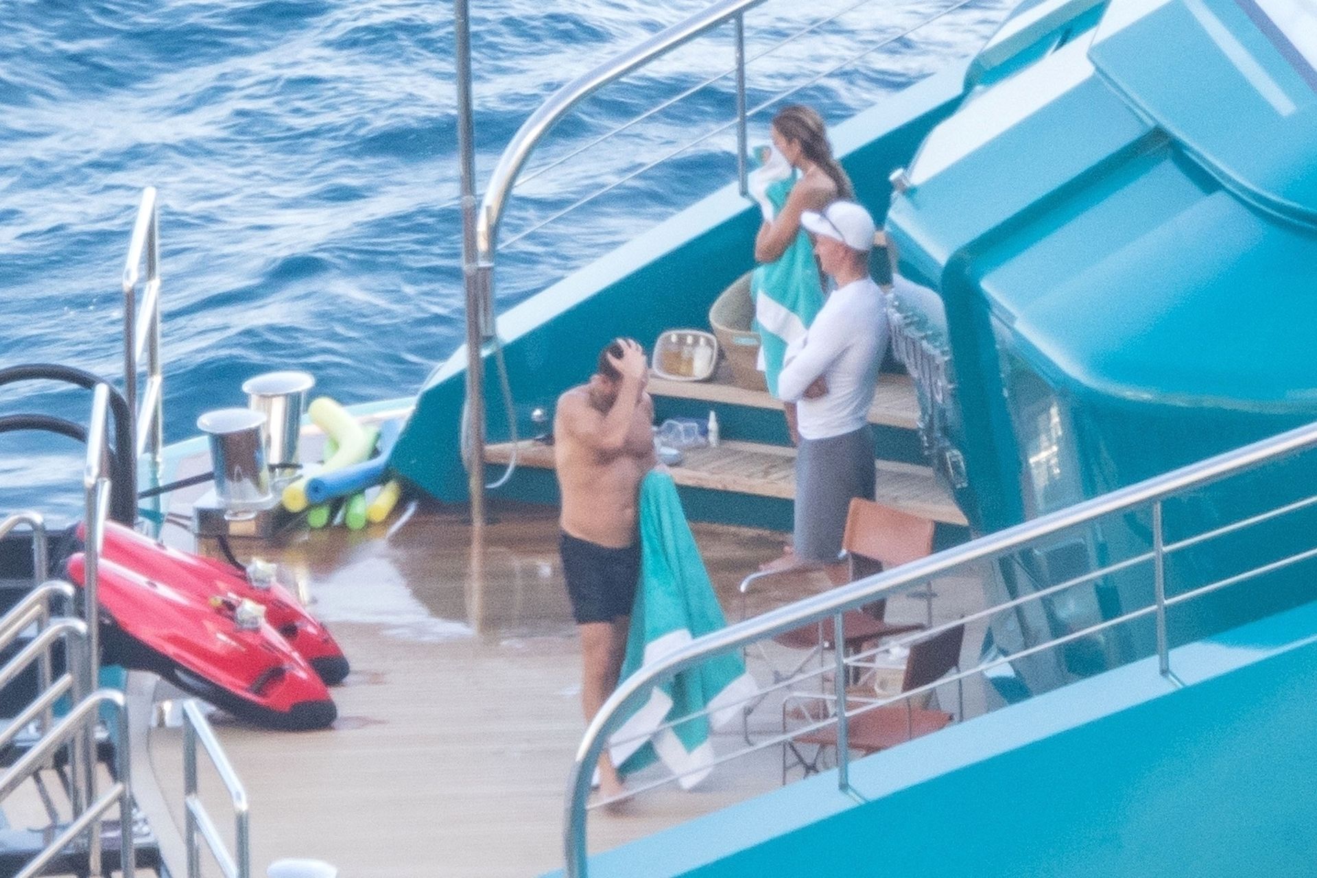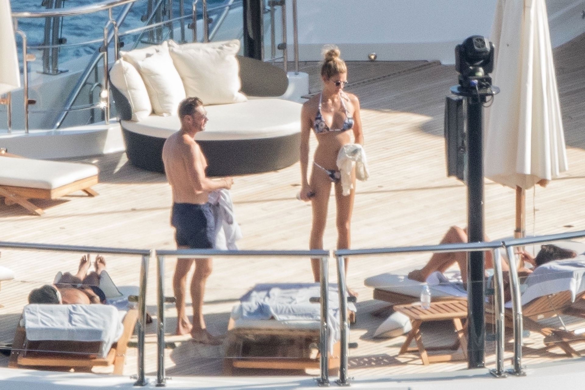 The couple were pictured relaxing onboard a luxury yacht as they enjoyed their summer holiday’s together in Italy. They were photographed diving into the sea for a swim before going back to their boat for some downtime relaxing while sunbathing.