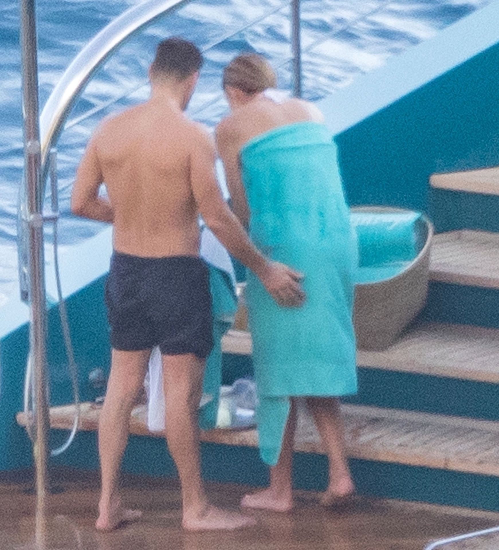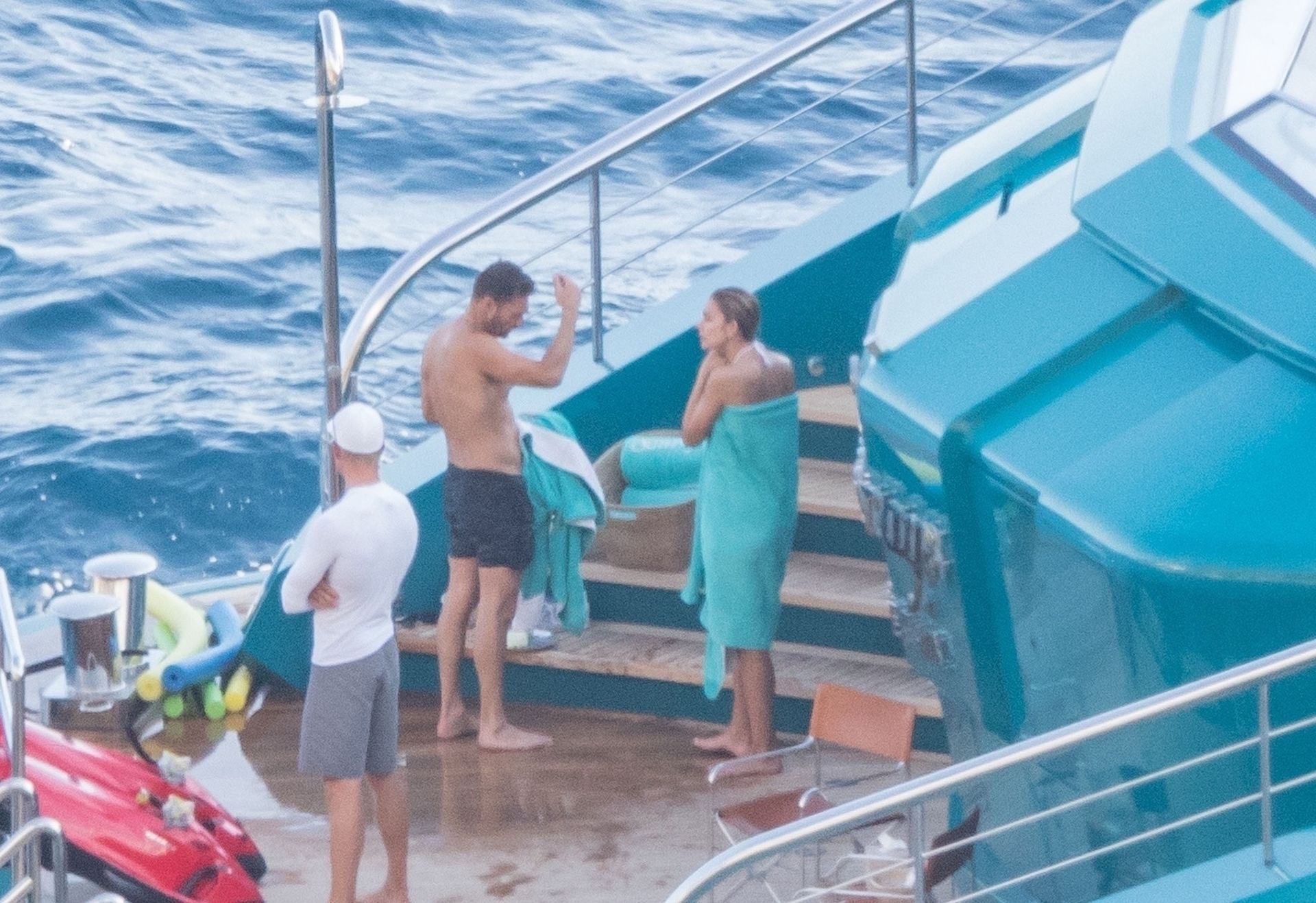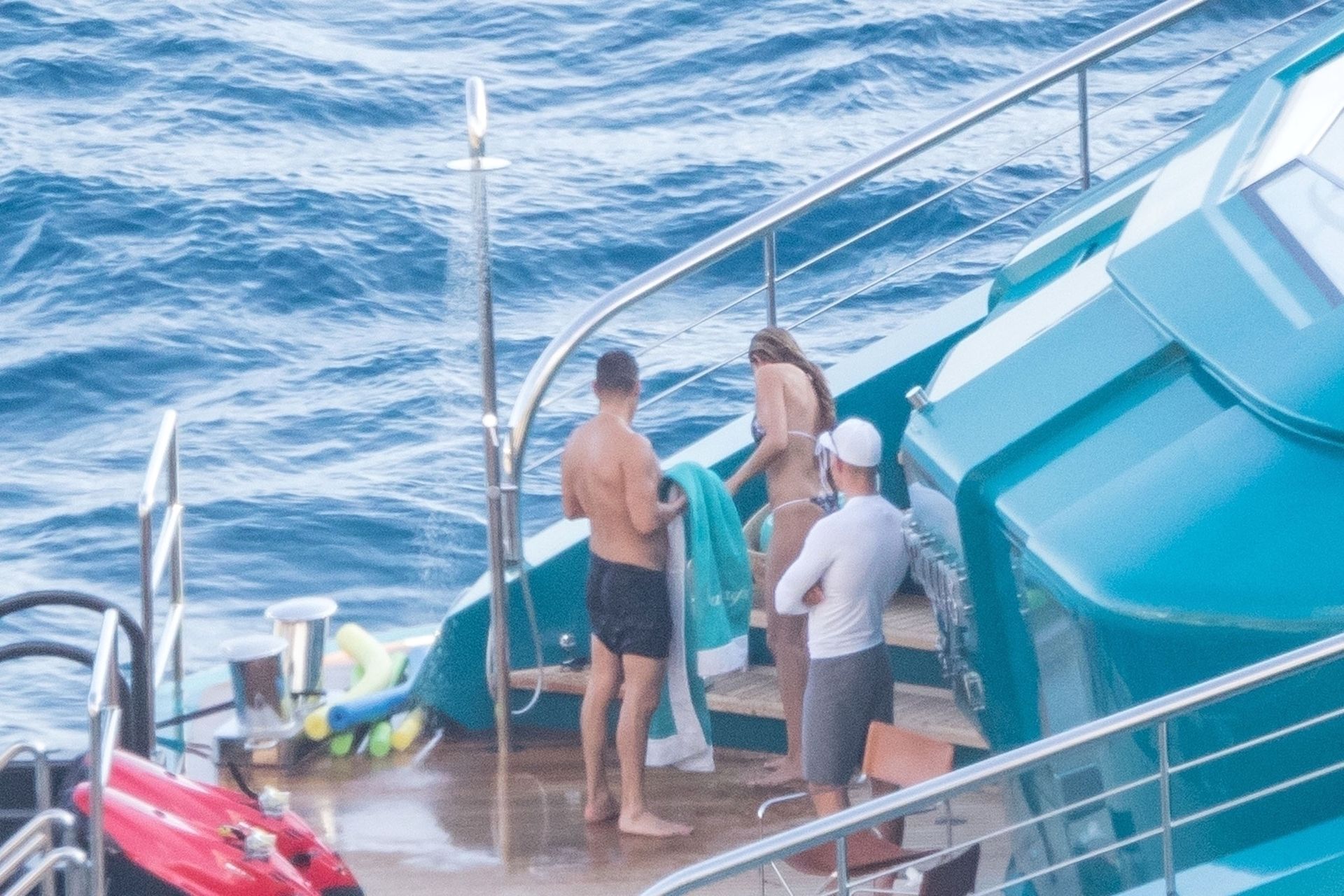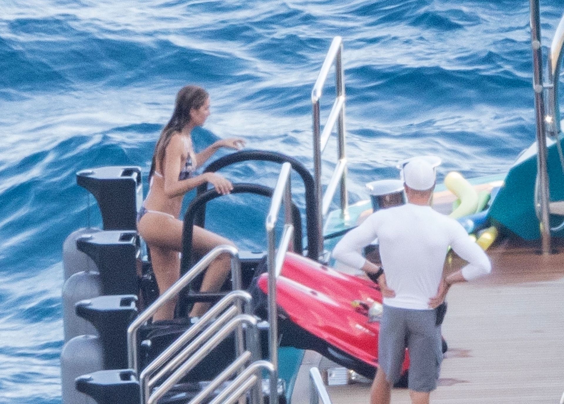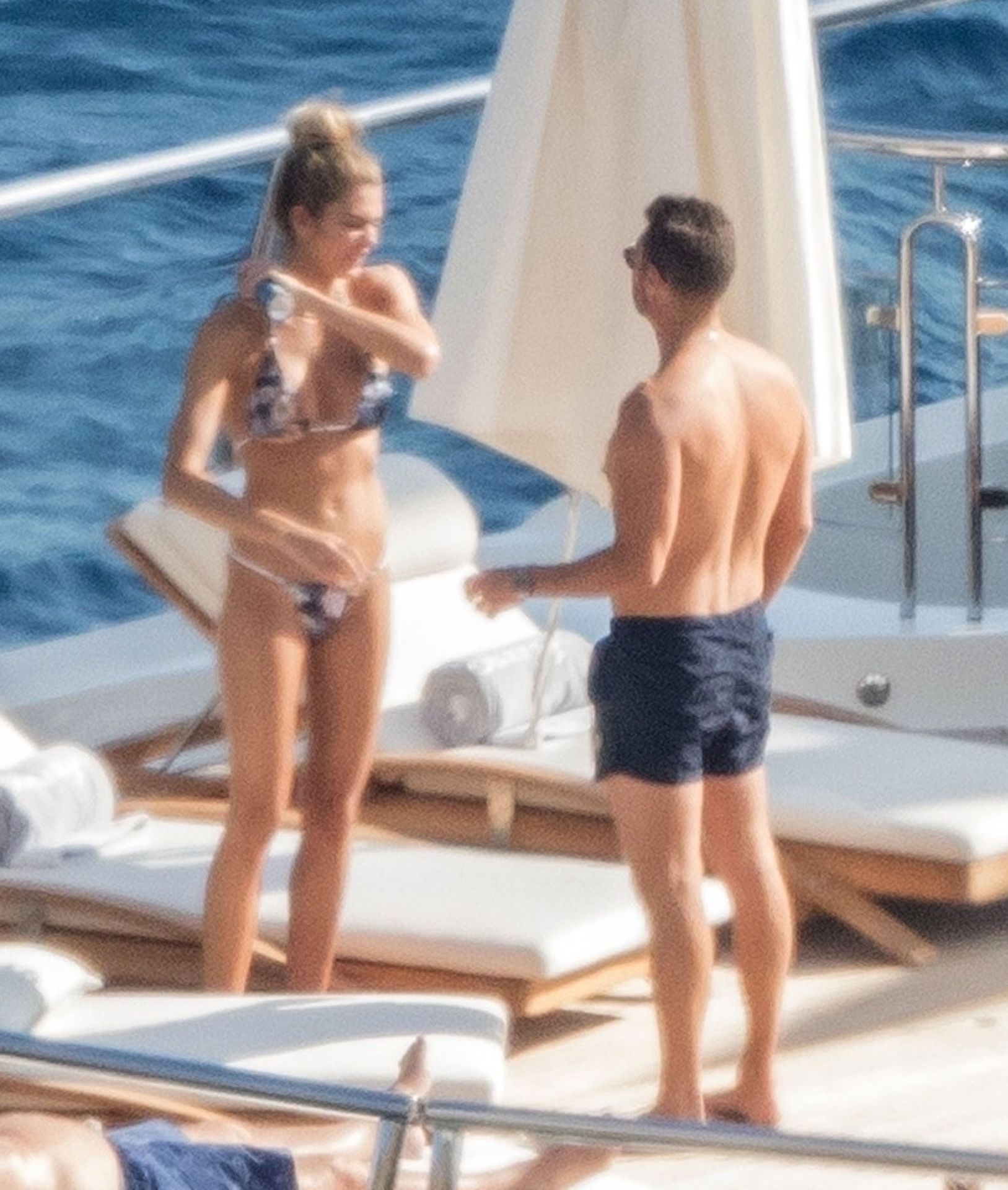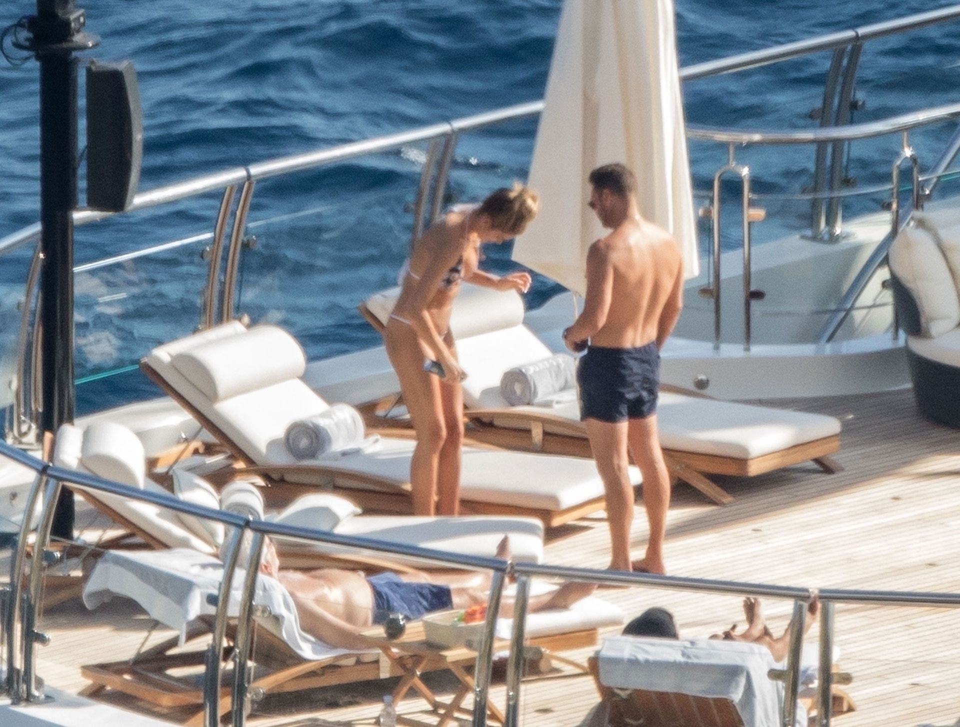 The couple were pictured relaxing onboard a luxury yacht as they enjoyed their summer holiday’s together in Italy. They were photographed diving into the sea for a swim before going back to their boat for some downtime relaxing while sunbathing.