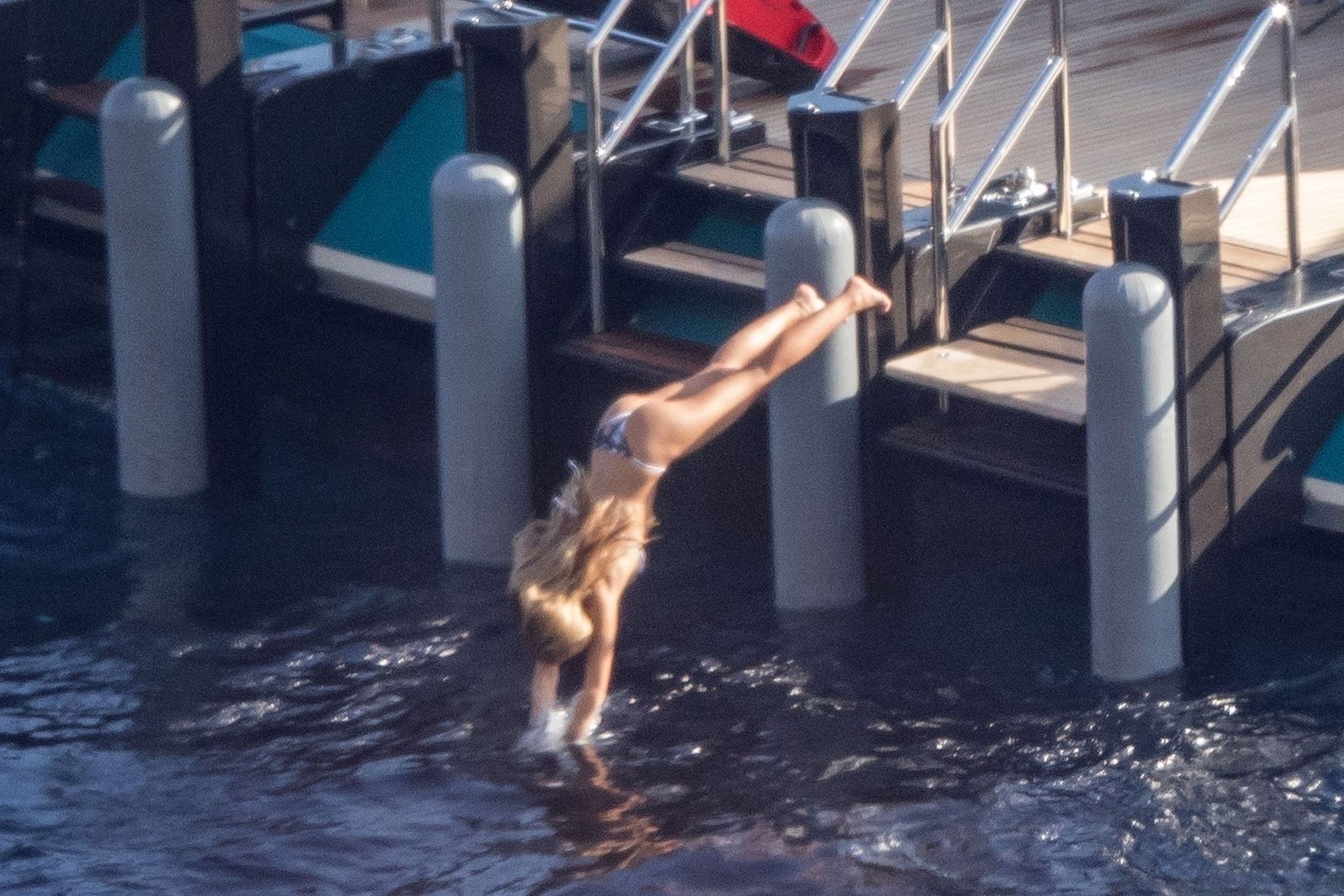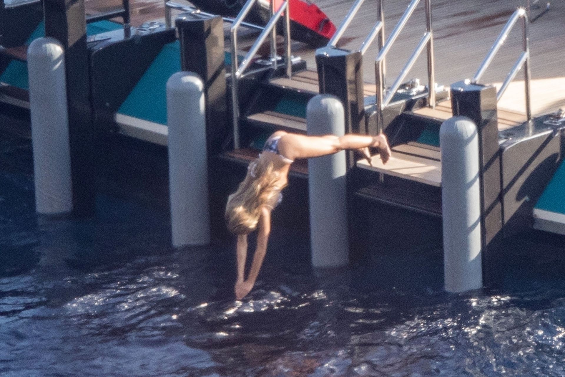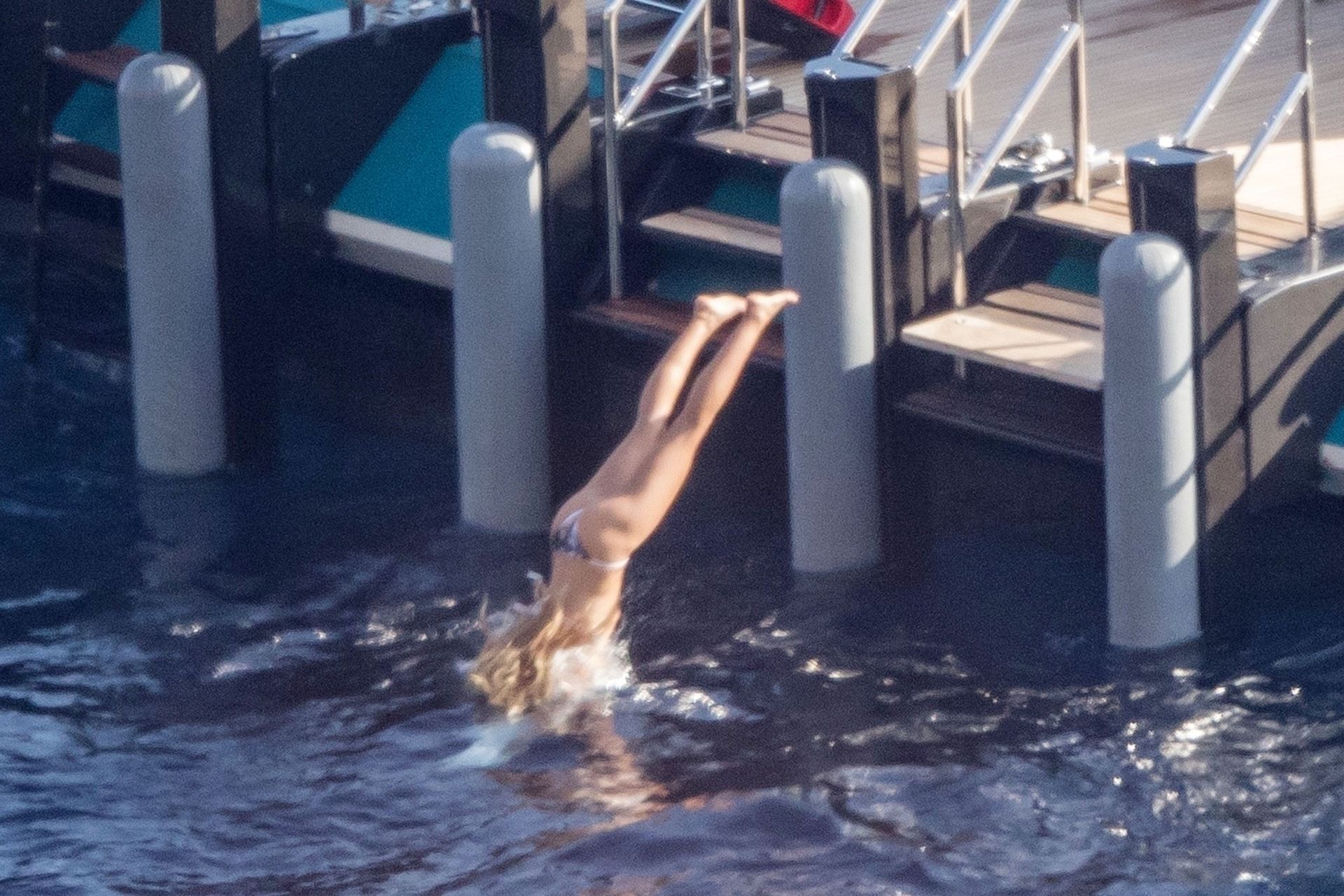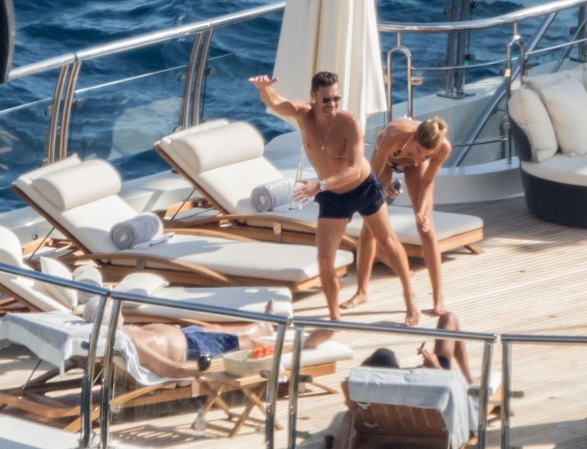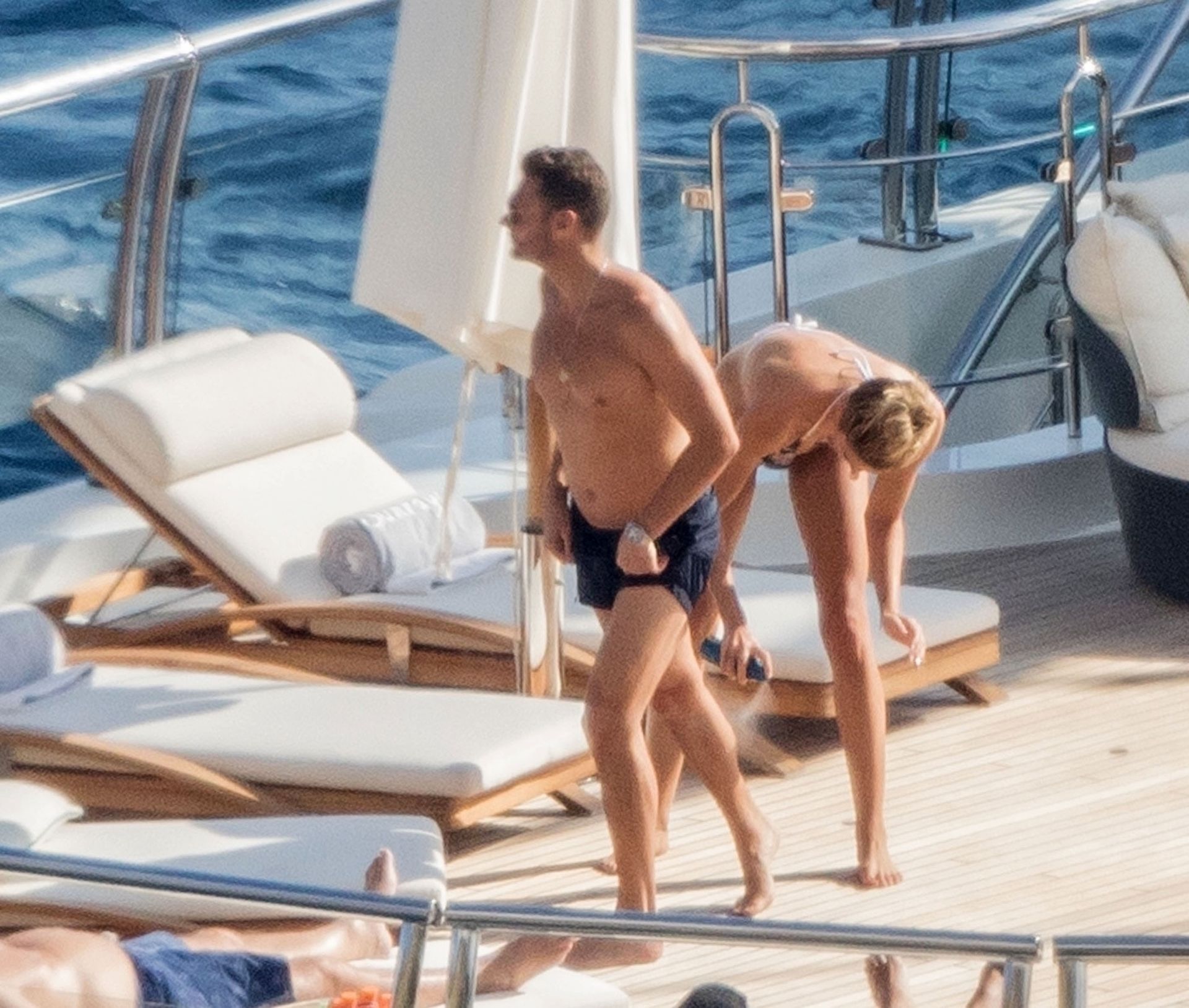 The couple were pictured relaxing onboard a luxury yacht as they enjoyed their summer holiday’s together in Italy. They were photographed diving into the sea for a swim before going back to their boat for some downtime relaxing while sunbathing.
