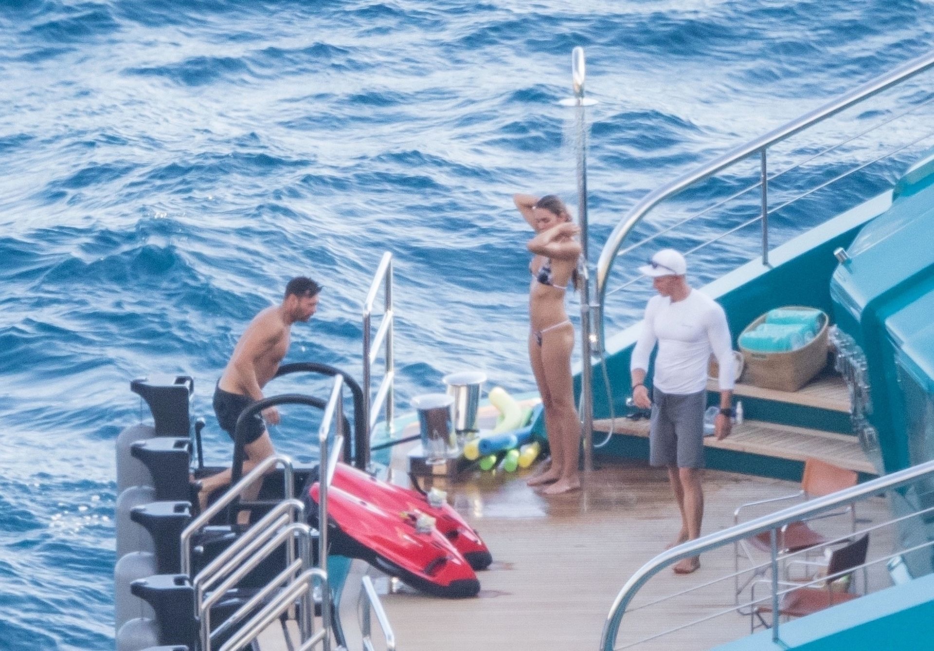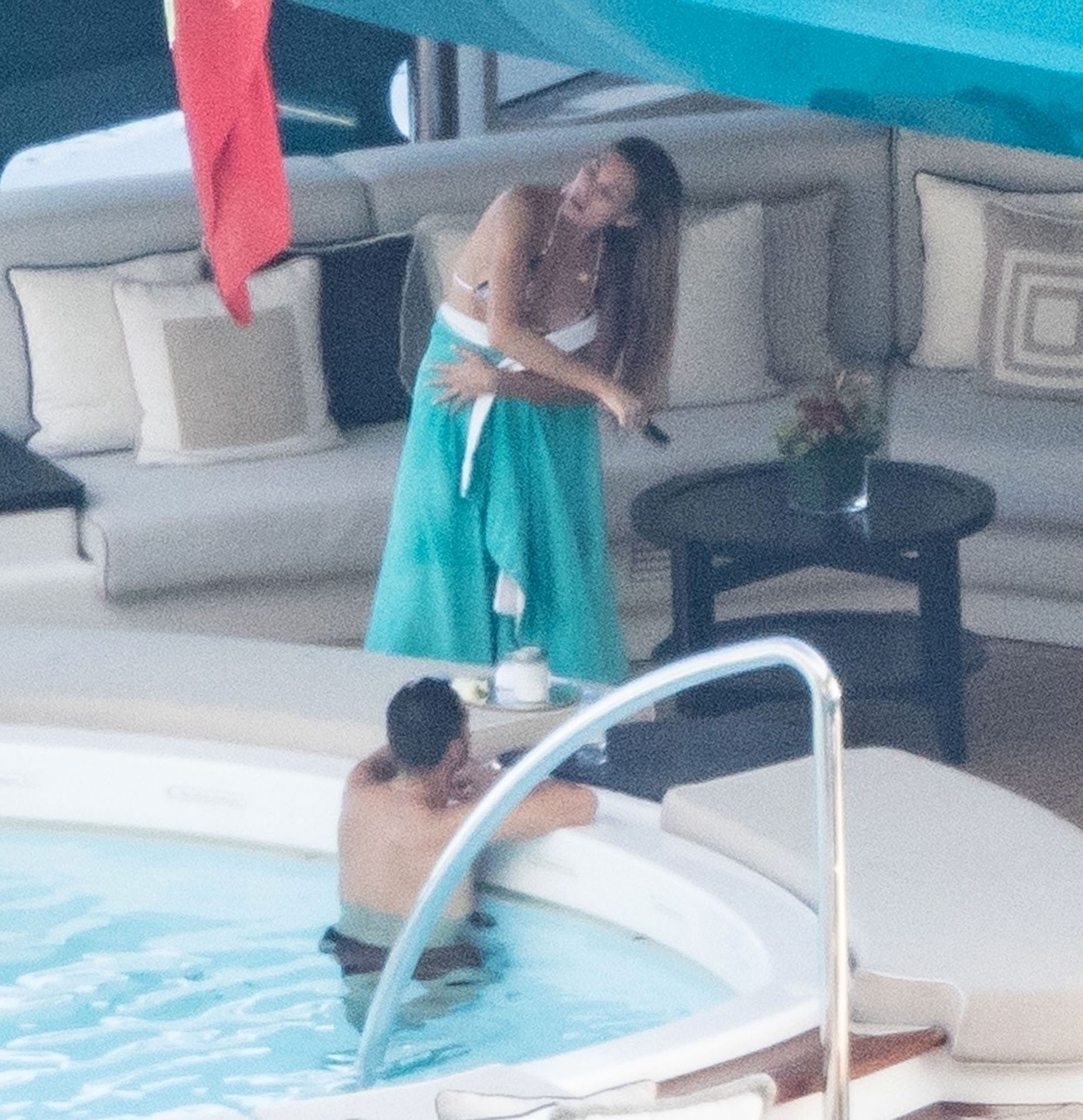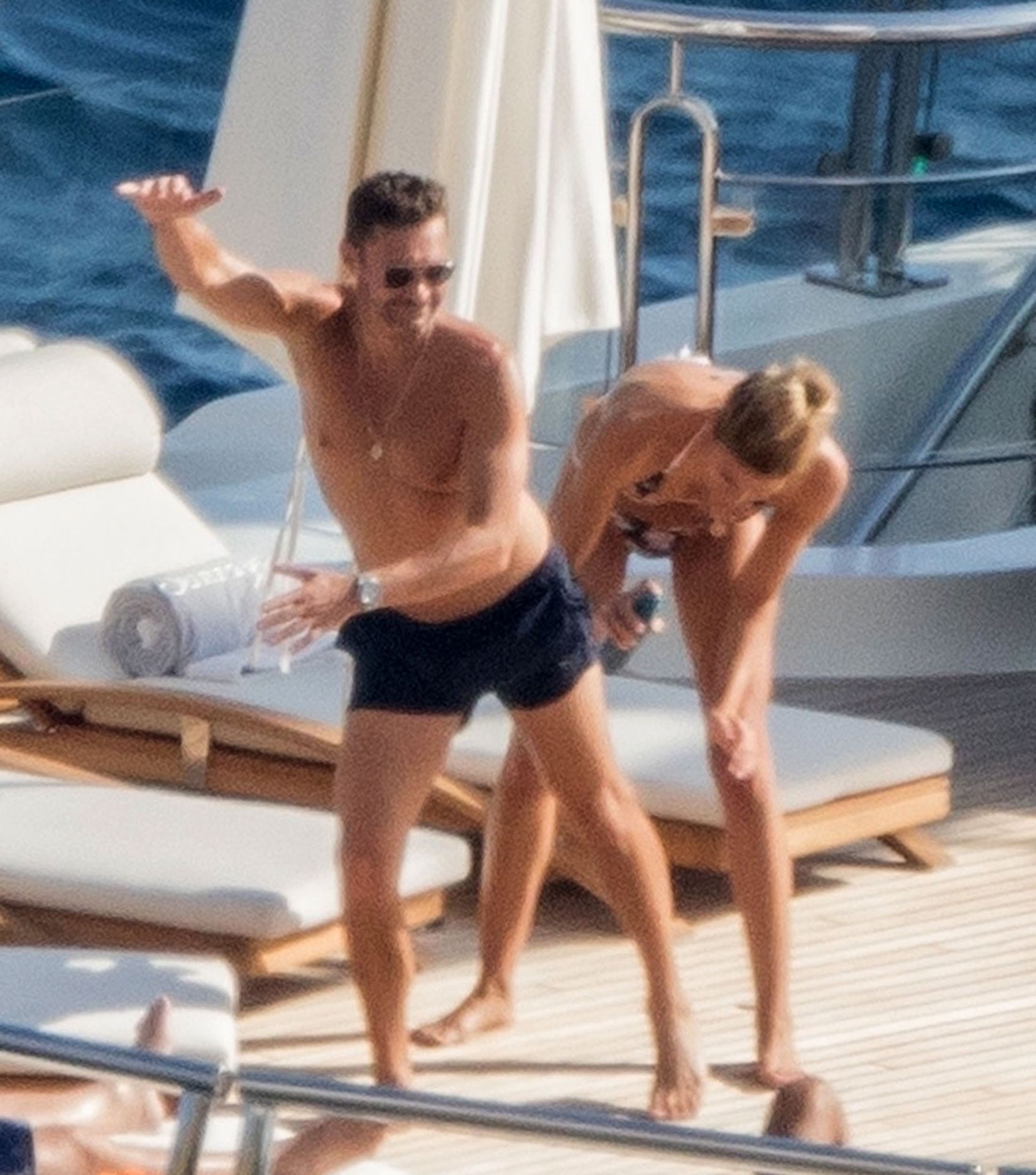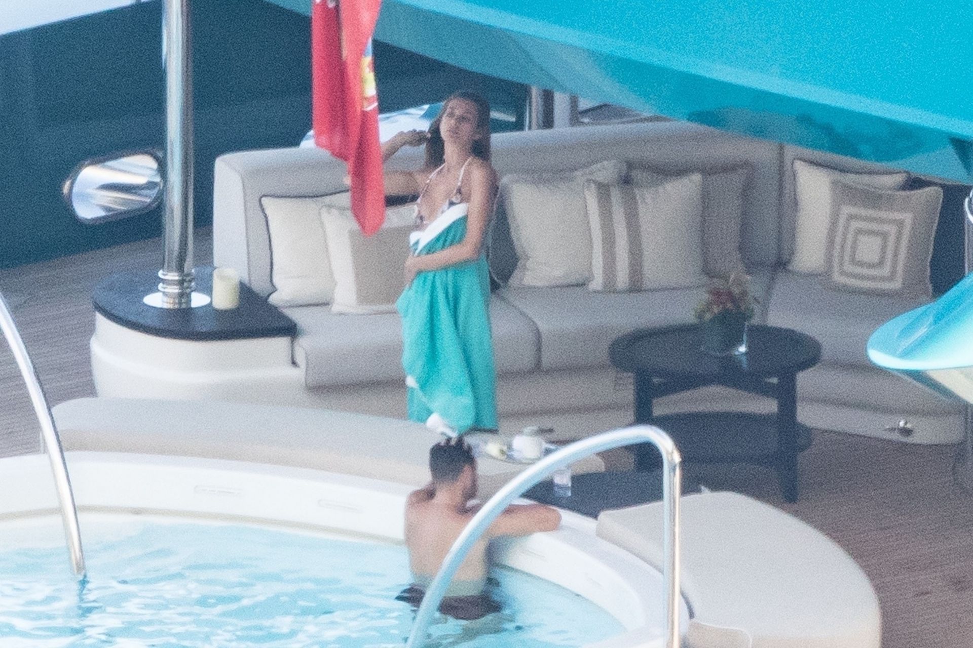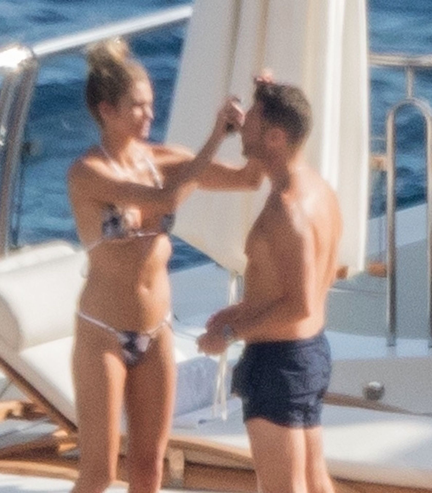 The couple were pictured relaxing onboard a luxury yacht as they enjoyed their summer holiday’s together in Italy. They were photographed diving into the sea for a swim before going back to their boat for some downtime relaxing while sunbathing.