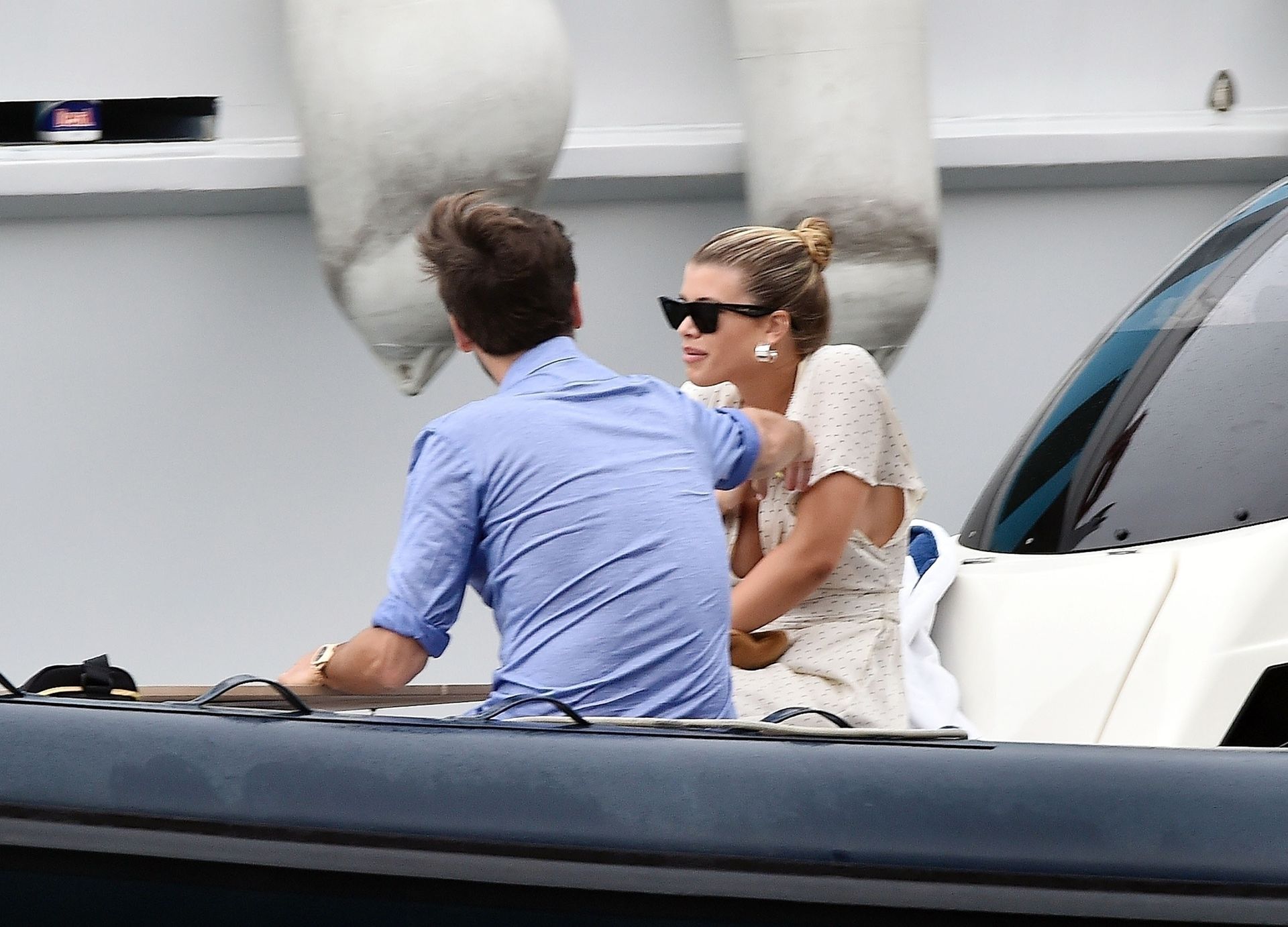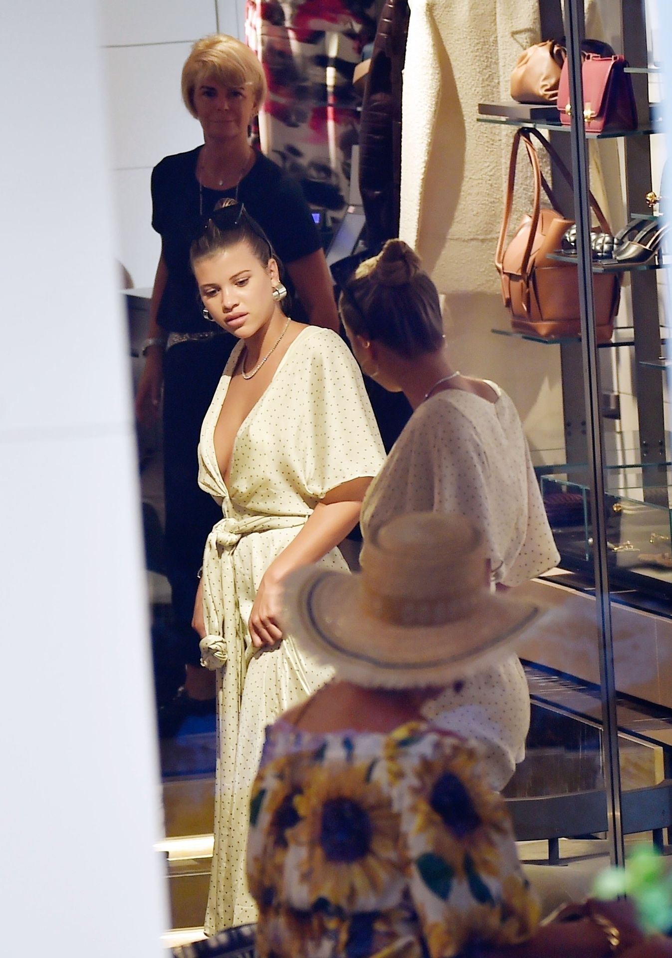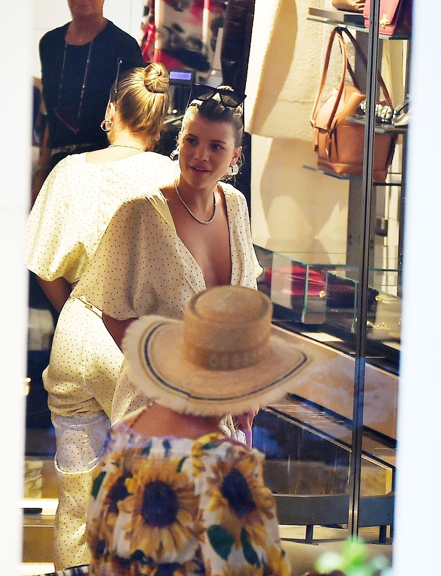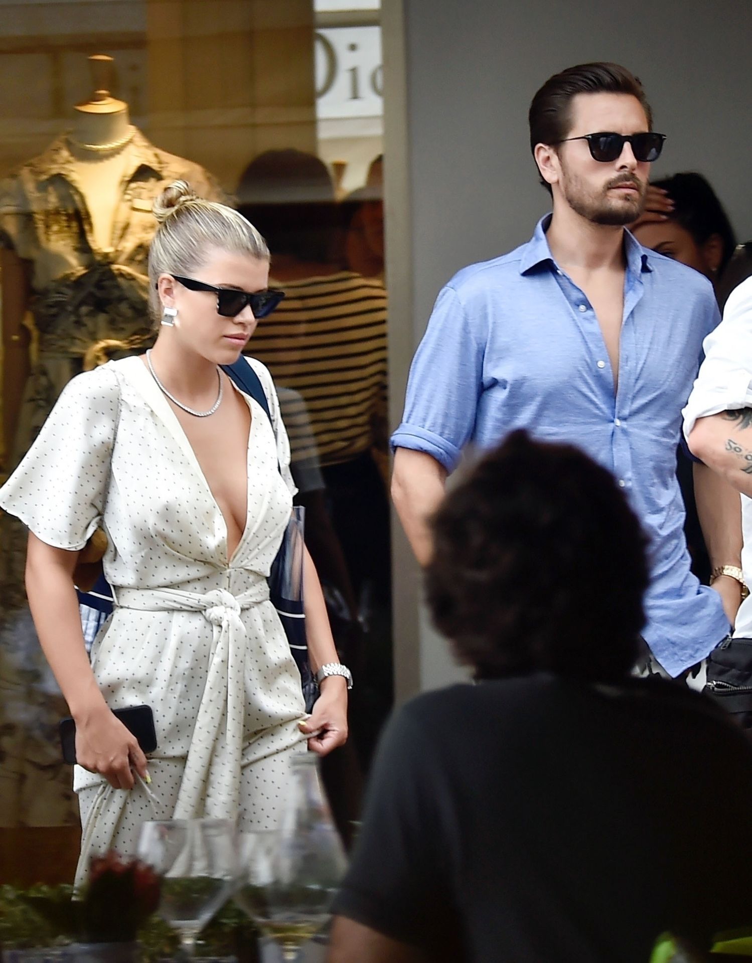 Sofia Richie suffers an epic wardrobe malfunction flashing her boob tape in a plunging dress as she joins her beau, 36, in Italy amid Kylie Jenner‘s birthday celebrations with family, 08/12/2019.