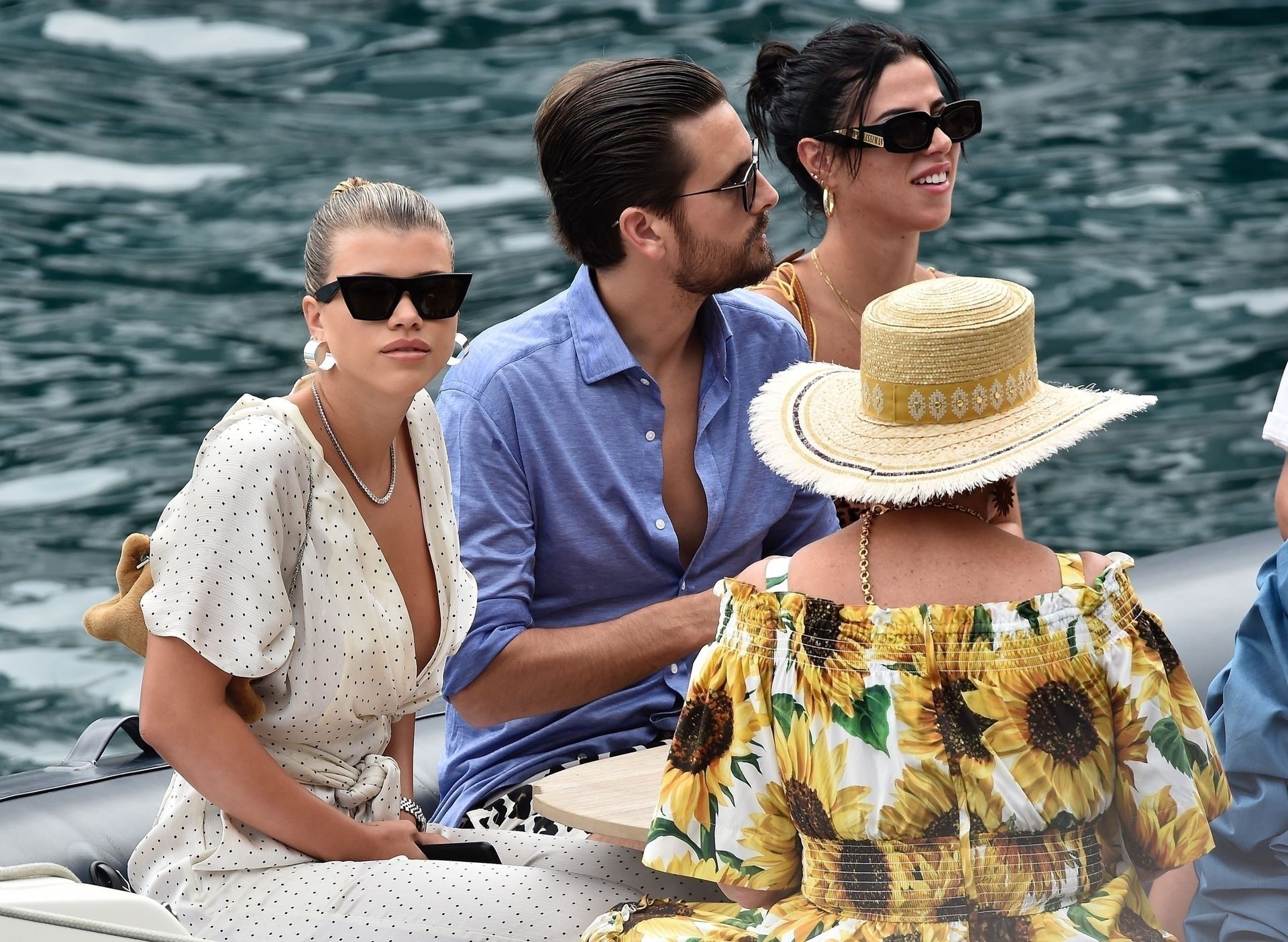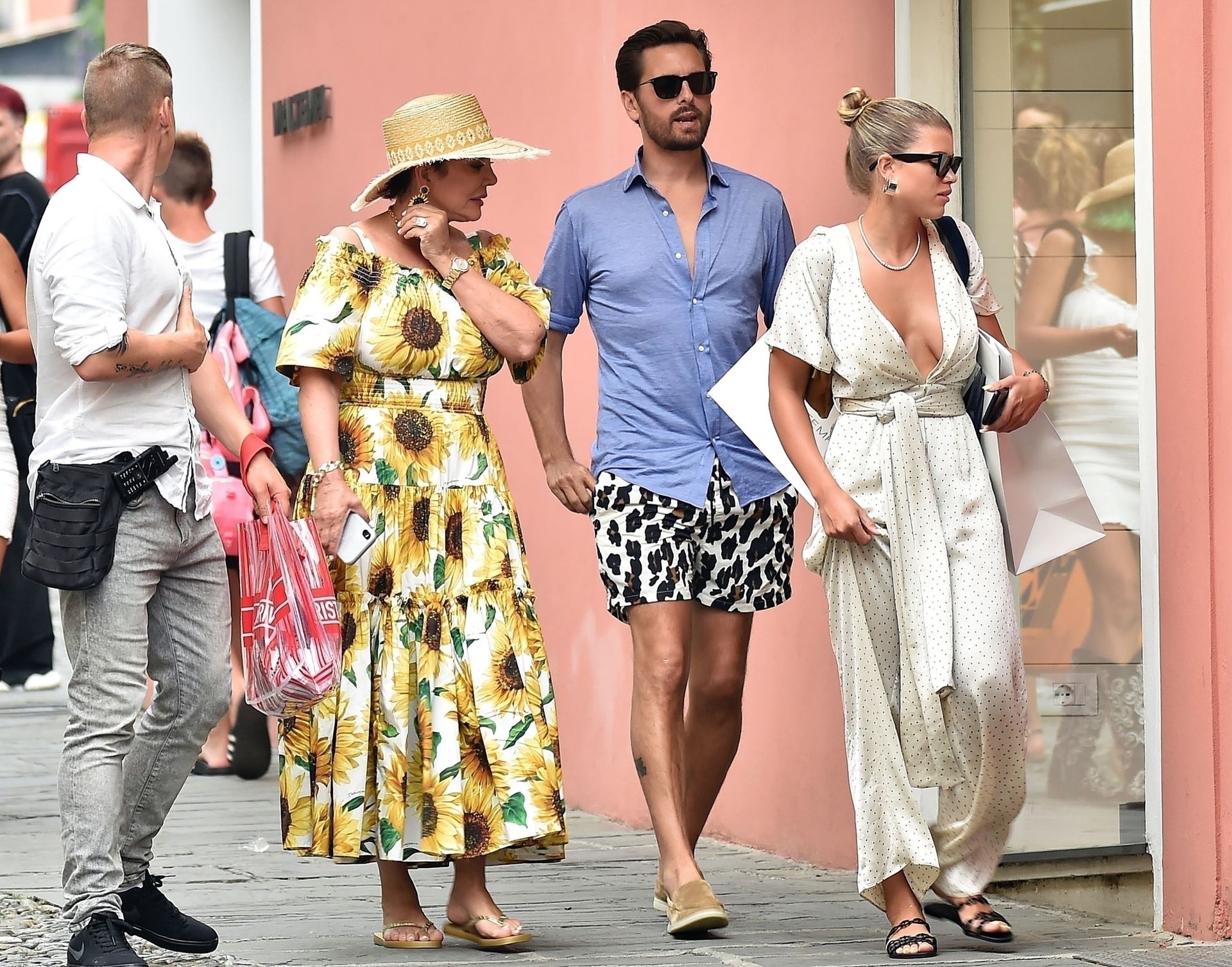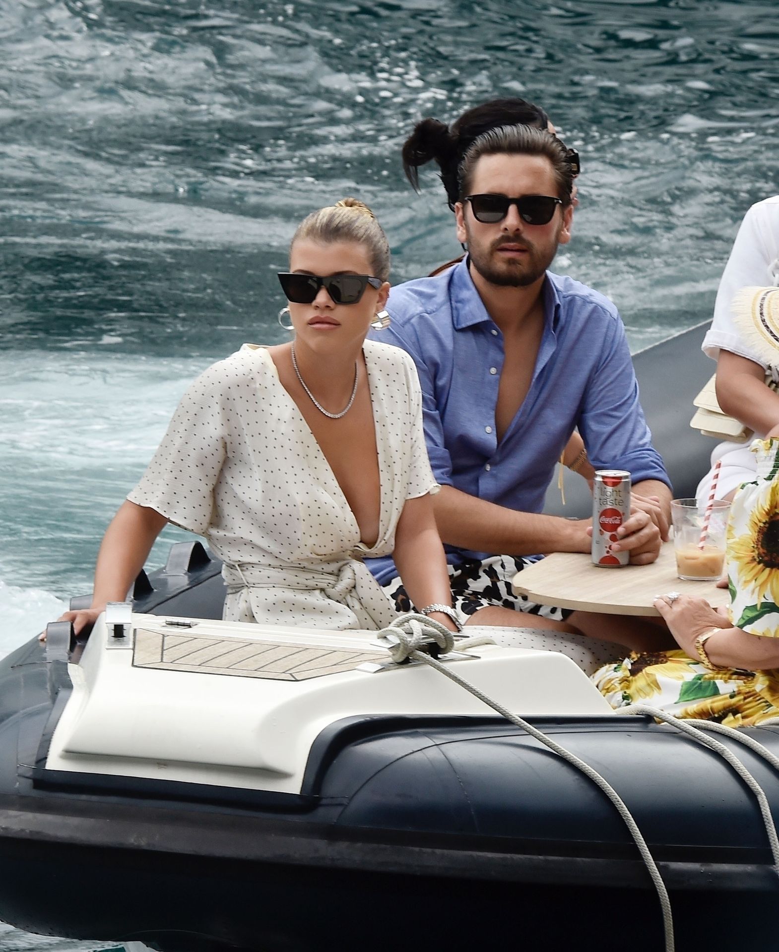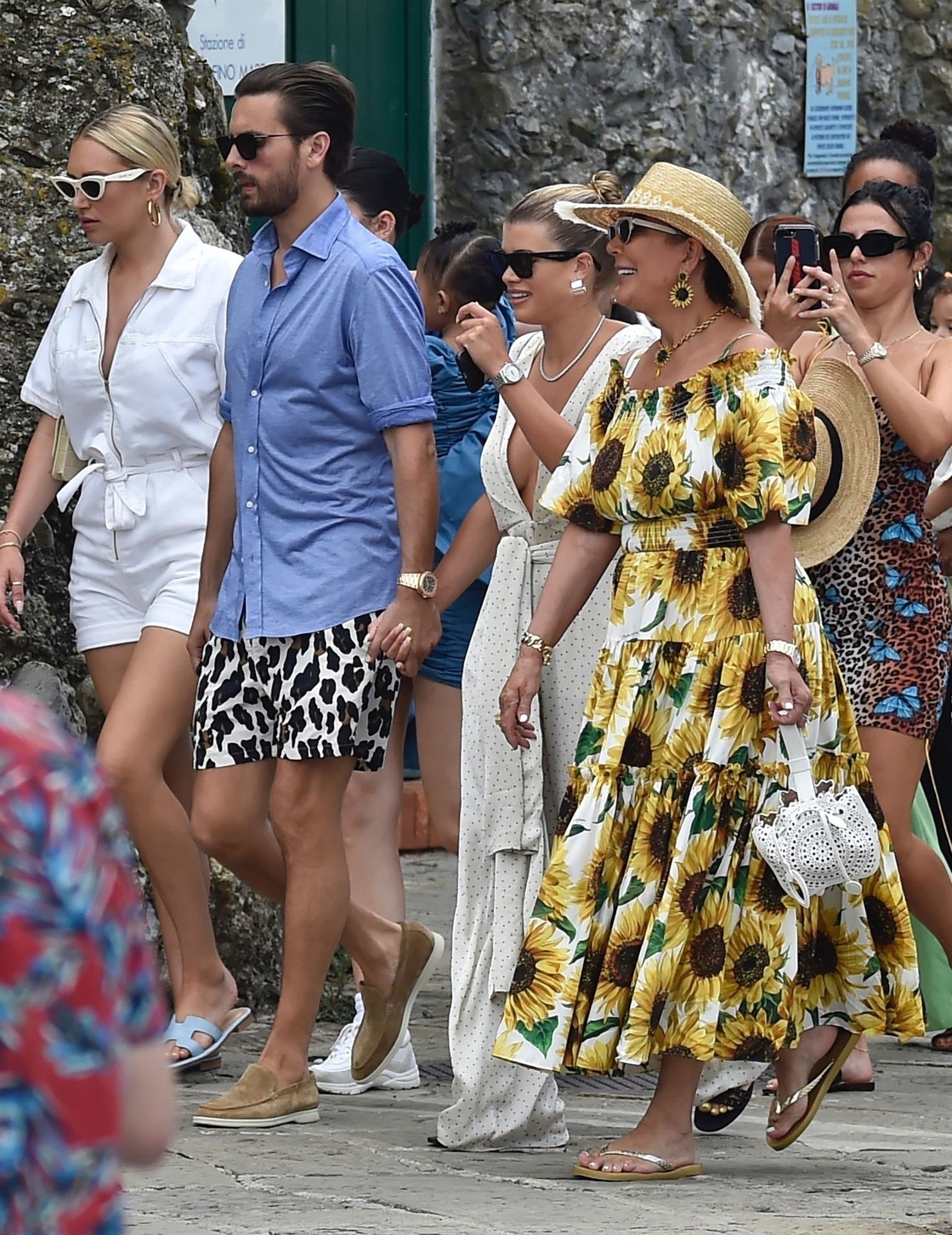 Lovebirds Scott Disick and Sofia Richie take in the sights with Kris and Kylie Jenner and her adorable daughter Stormy. The gang arrive at shore via a dinghy ride and stroll through the coastal town of Portofino turning a few heads with a variety of striking outfits as they go shopping looking rather glammed up on their Italian break.