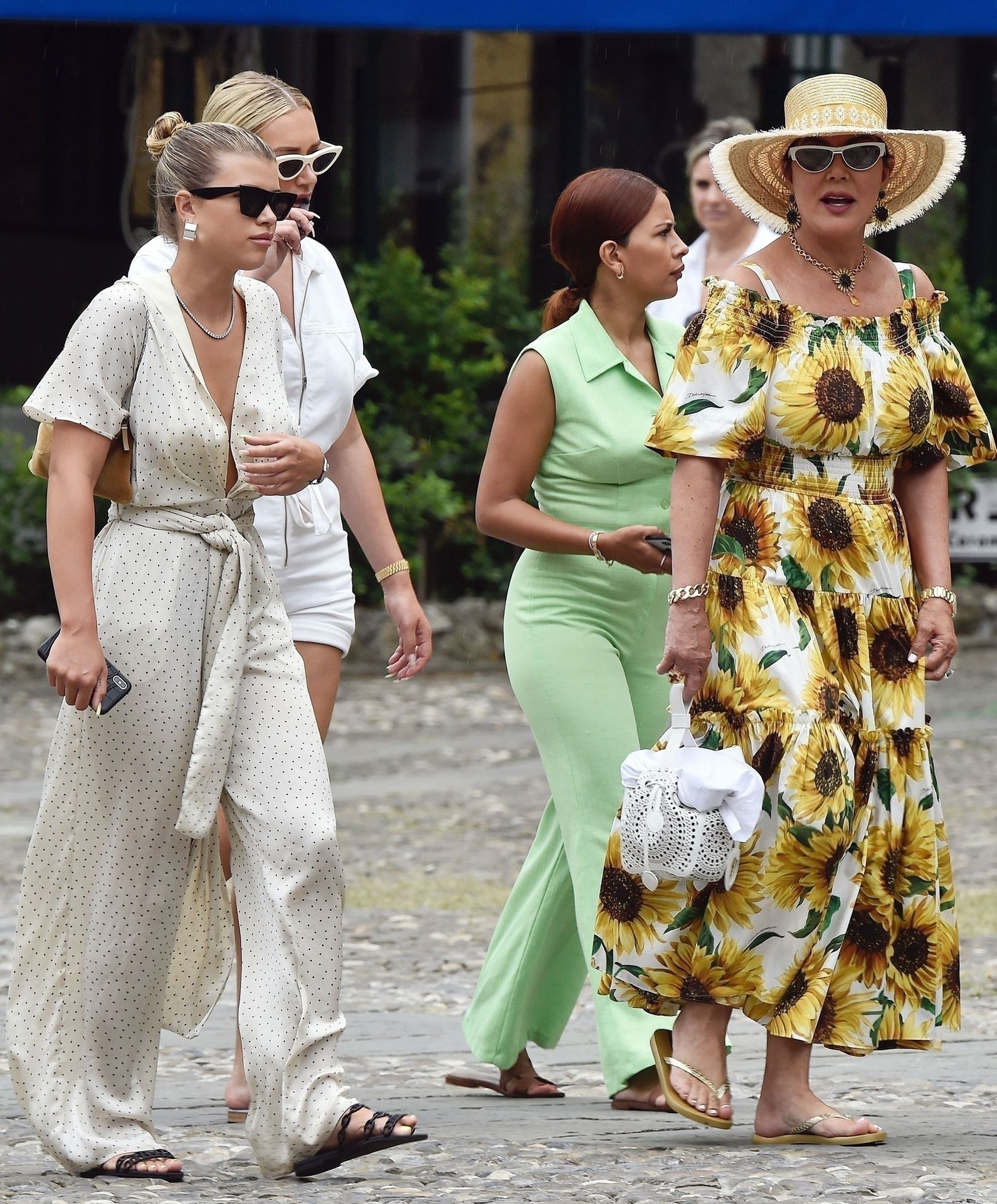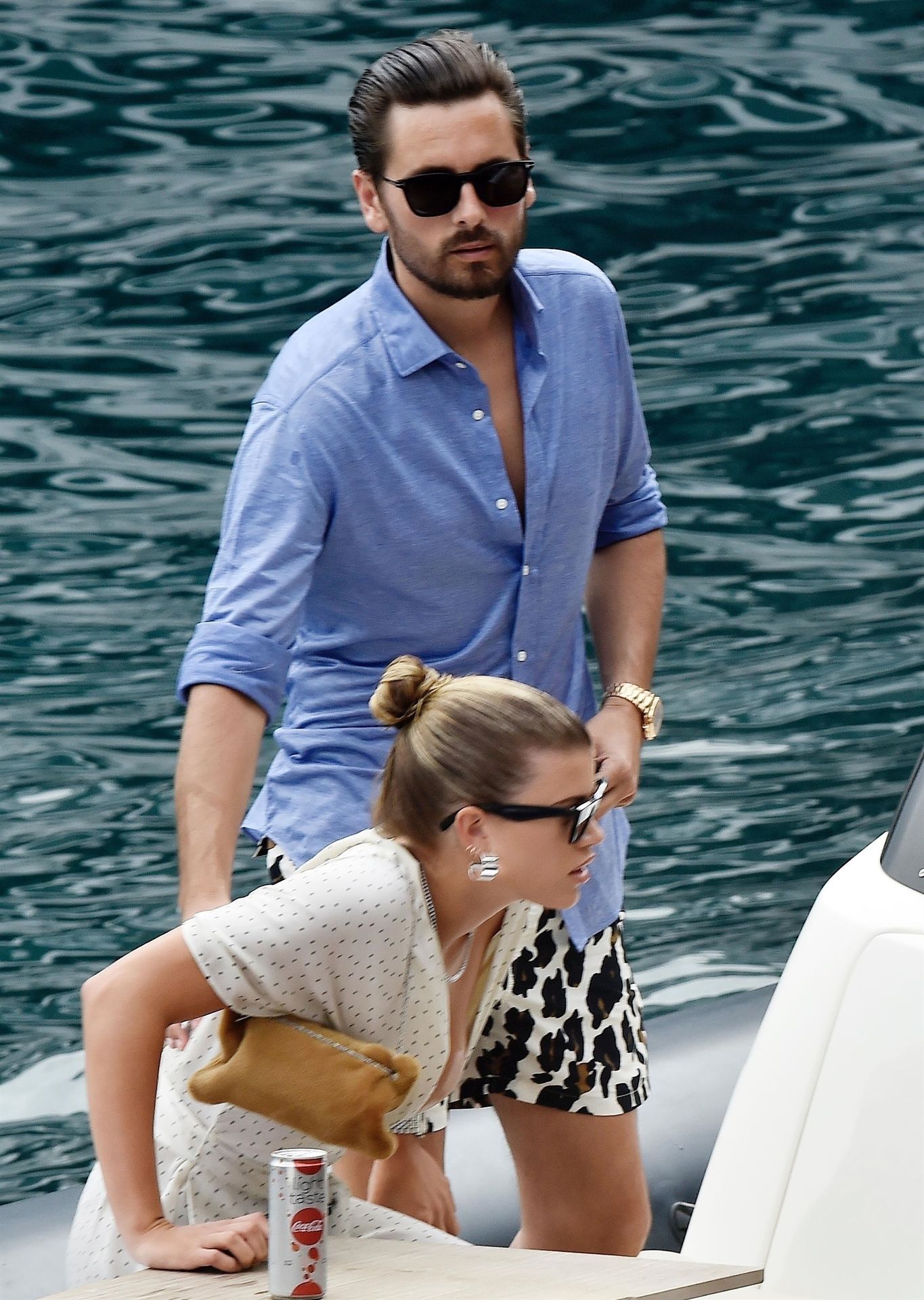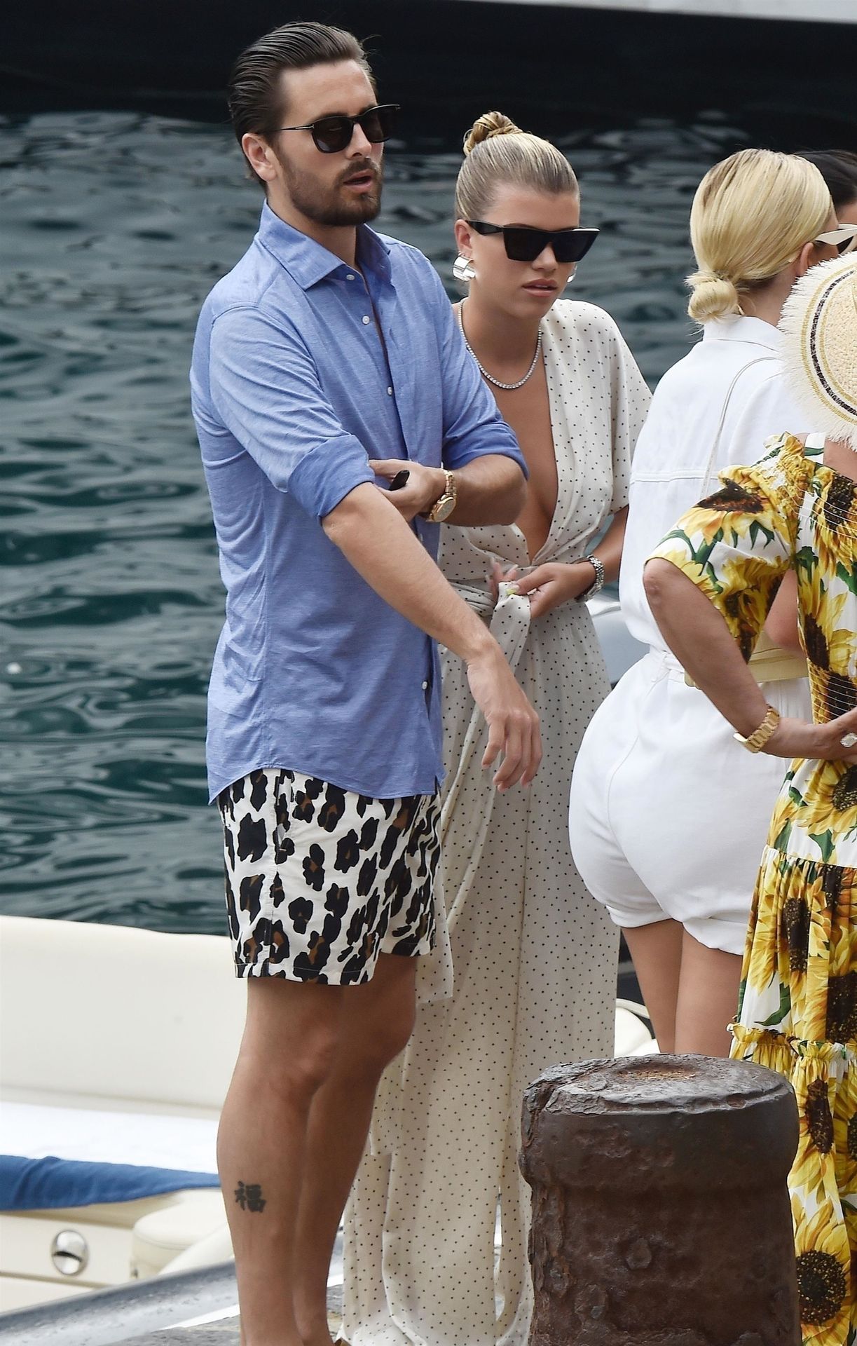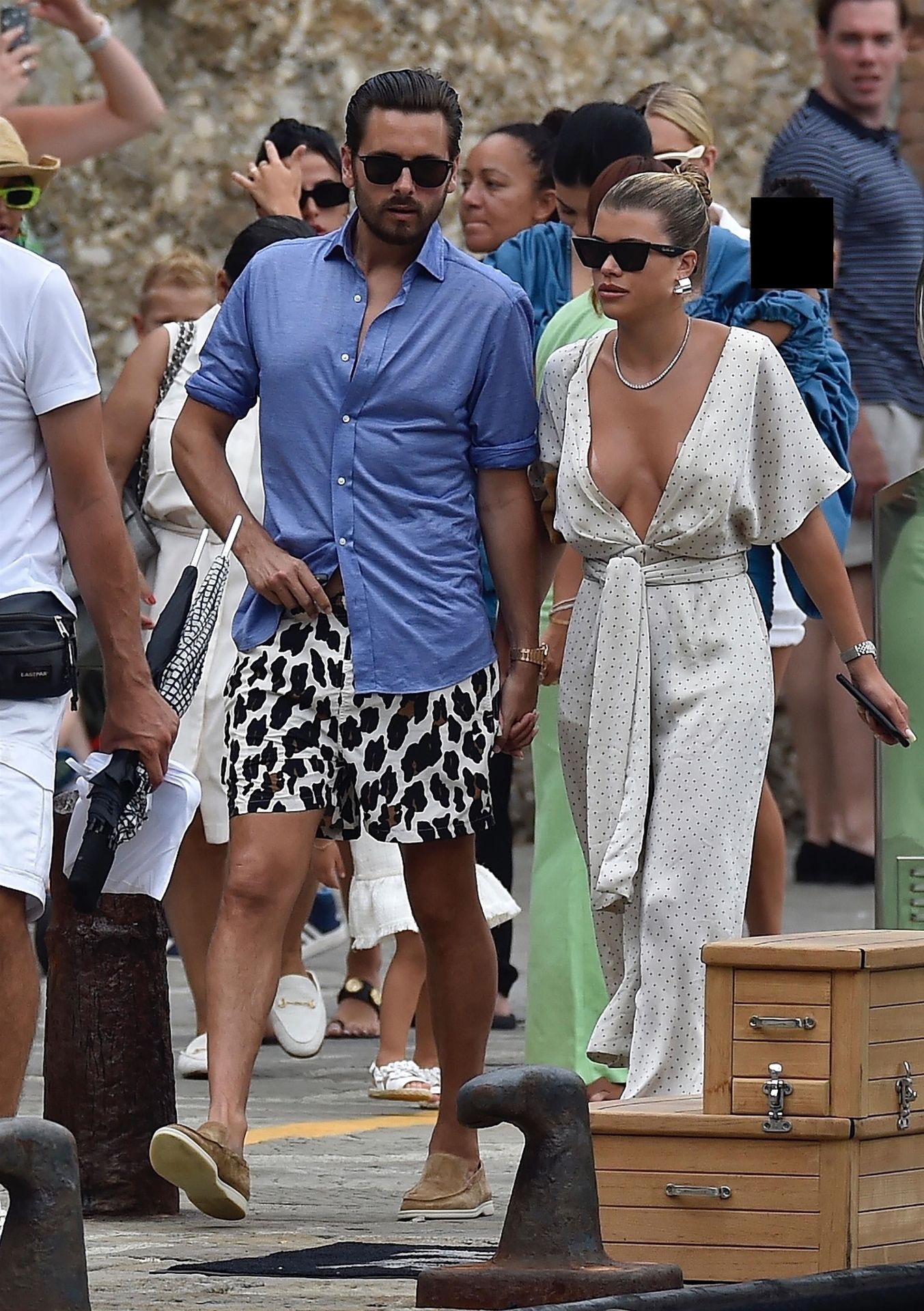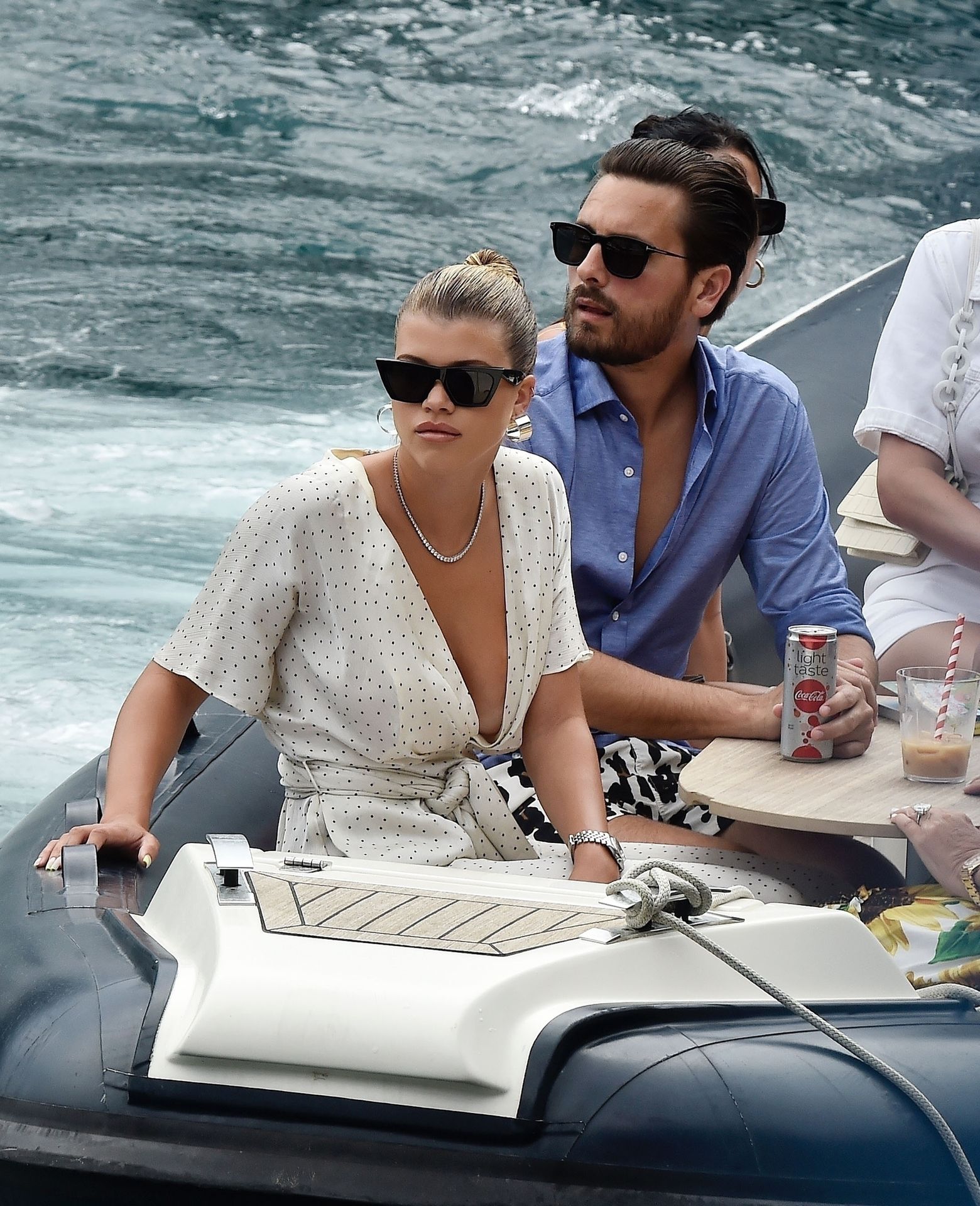 Lovebirds Scott Disick and Sofia Richie take in the sights with Kris and Kylie Jenner and her adorable daughter Stormy. The gang arrive at shore via a dinghy ride and stroll through the coastal town of Portofino turning a few heads with a variety of striking outfits as they go shopping looking rather glammed up on their Italian break.
