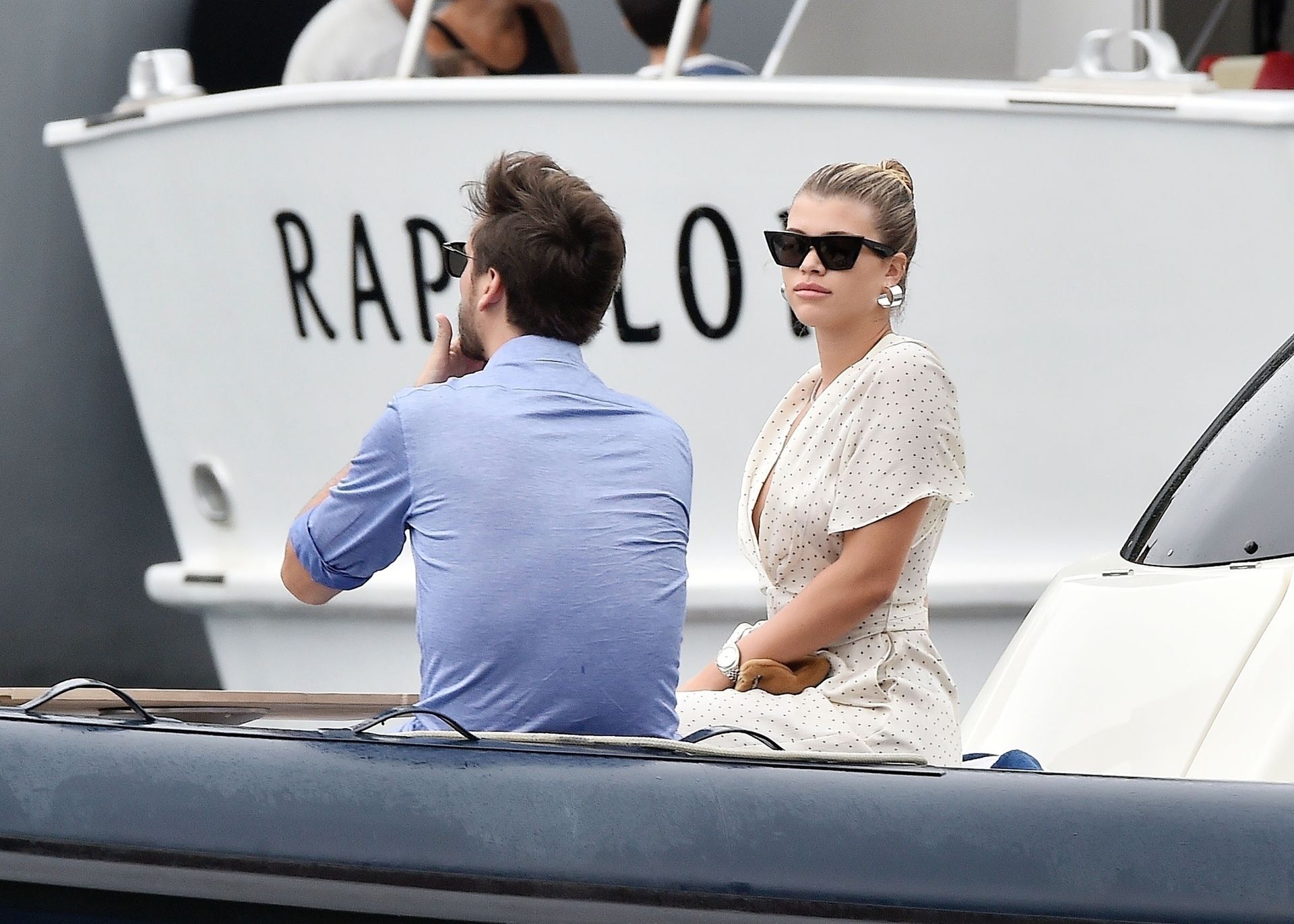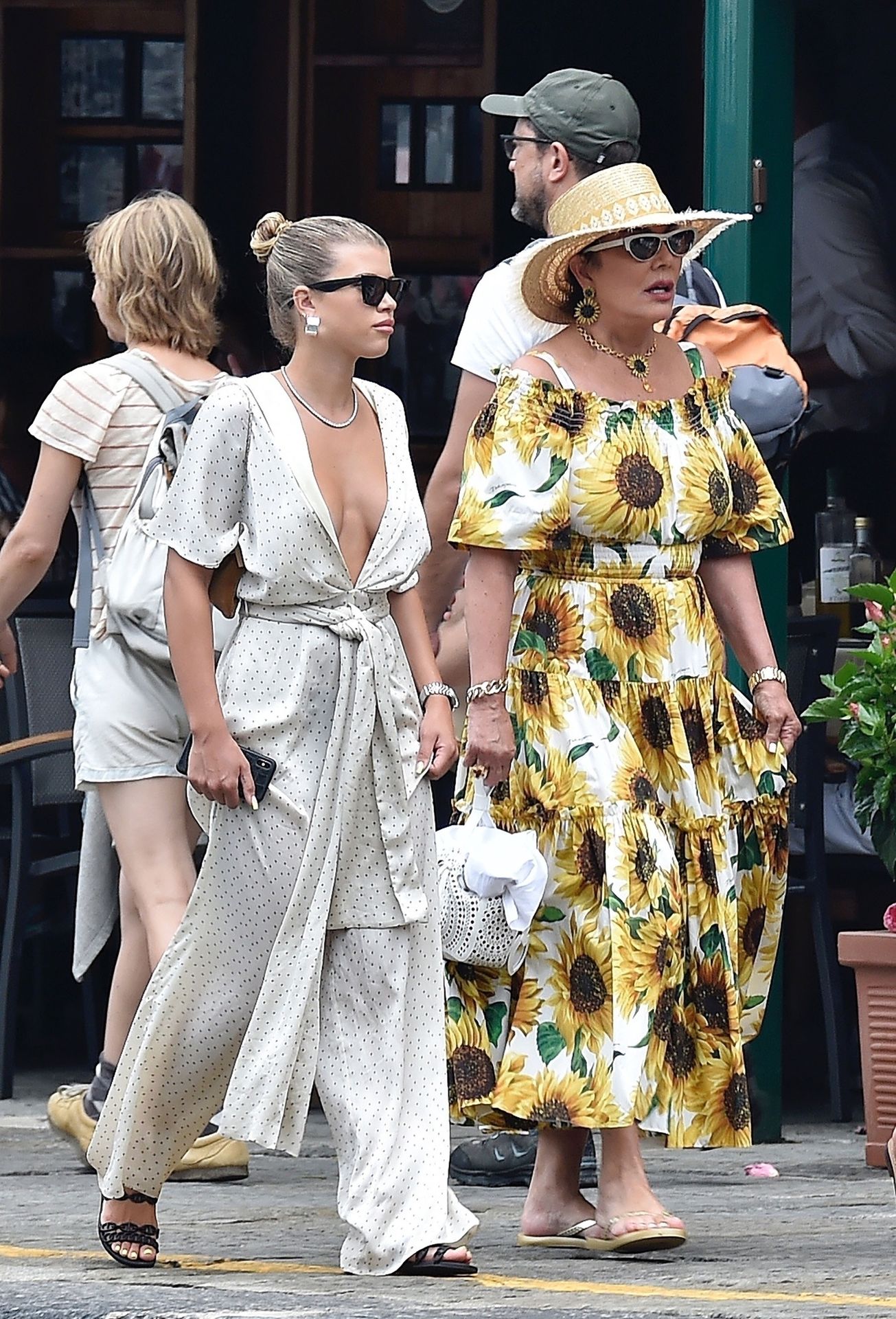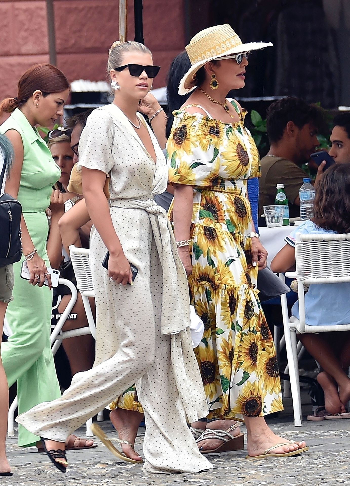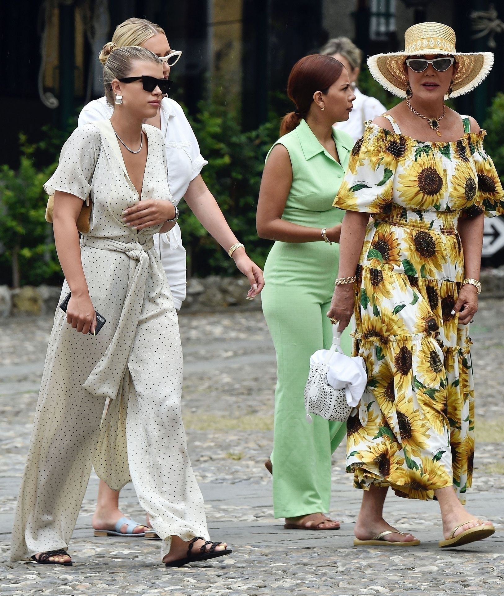 Lovebirds Scott Disick and Sofia Richie take in the sights with Kris and Kylie Jenner and her adorable daughter Stormy. The gang arrive at shore via a dinghy ride and stroll through the coastal town of Portofino turning a few heads with a variety of striking outfits as they go shopping looking rather glammed up on their Italian break.