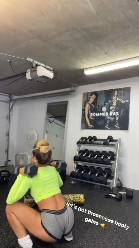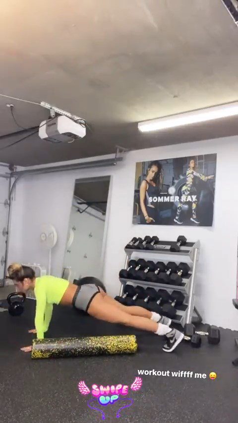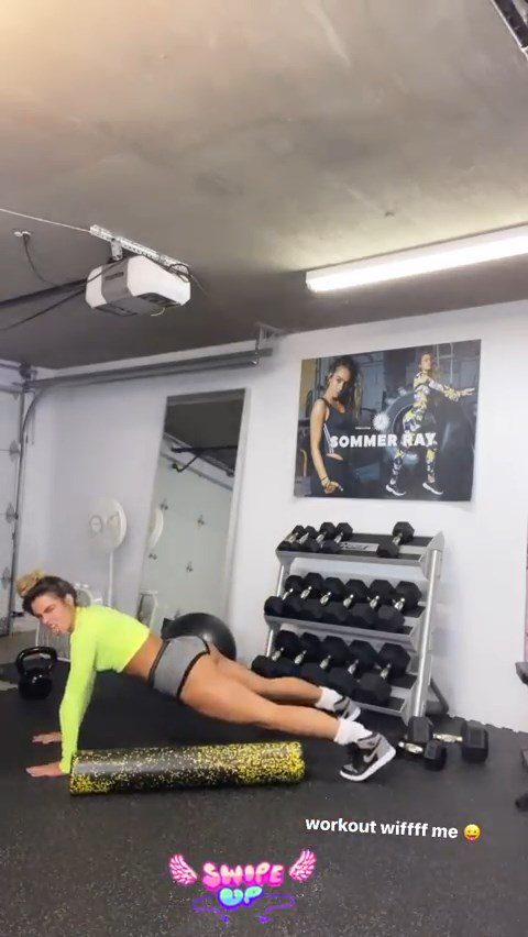 Check out model Sommer Ray’s camel toe, ass and hard nipples during workout on Instagram story, 03/20/2020.