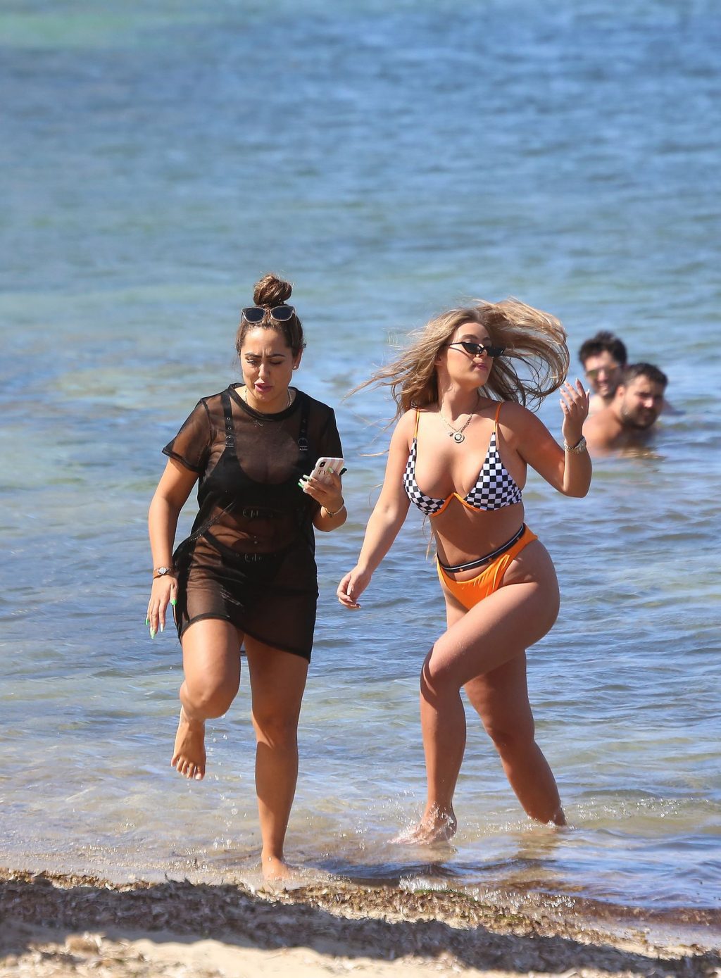 Geordie Shore’s Sophie Kasaei and Love Island’s Tyne-lexy Clarson were photographed doing selfies on the beach in Ibiza, 07/29/2019.
