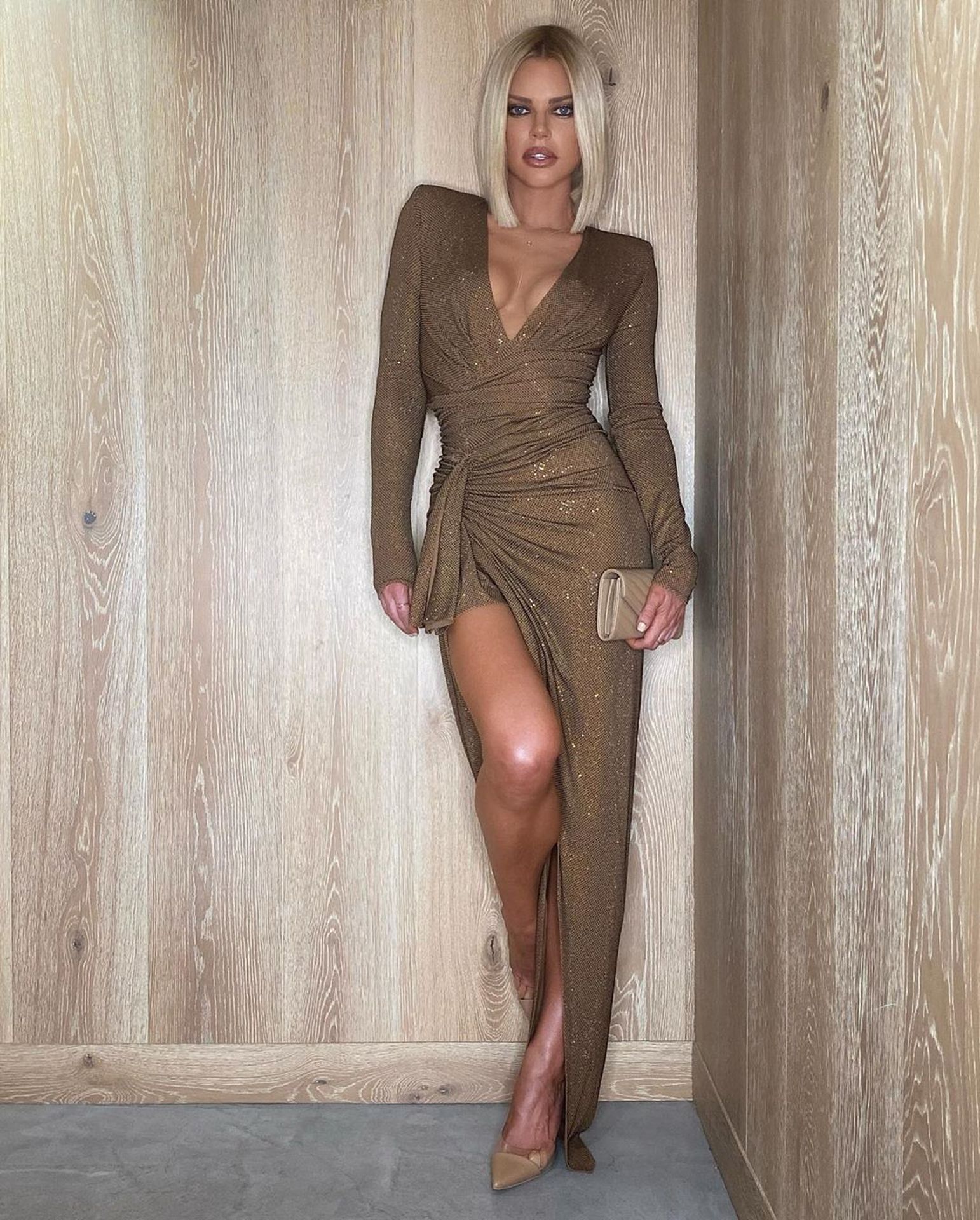 Sophie Monk showed off her sexy legs and cleavage on the red carpet and during a photoshoot, wearing a brown dress at the GQ Men Of The Year Awards 2019 in Sydney, Australia, 11/28/2019.