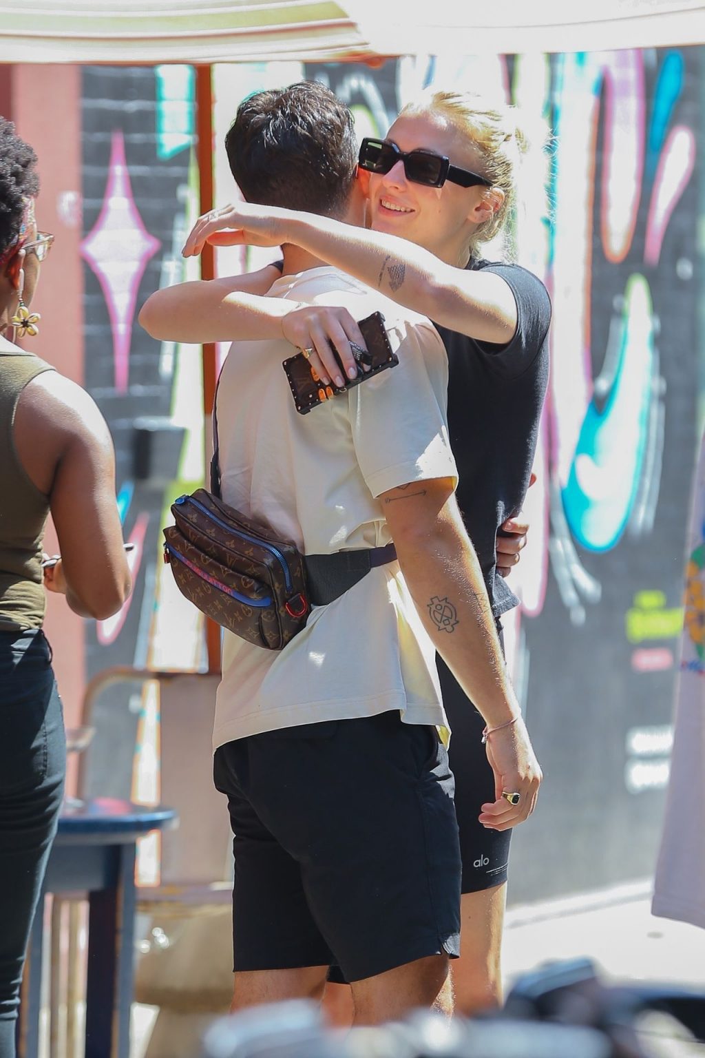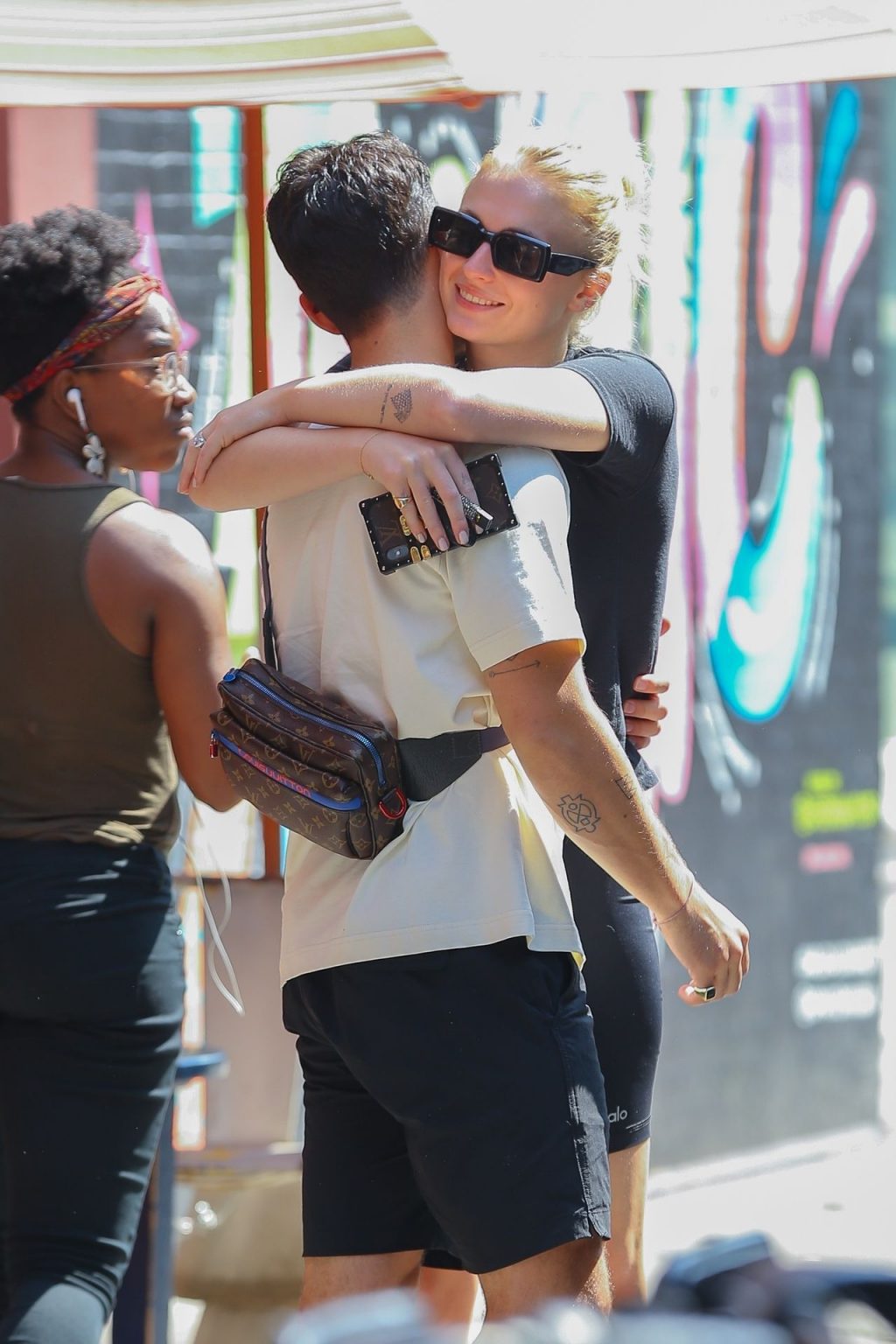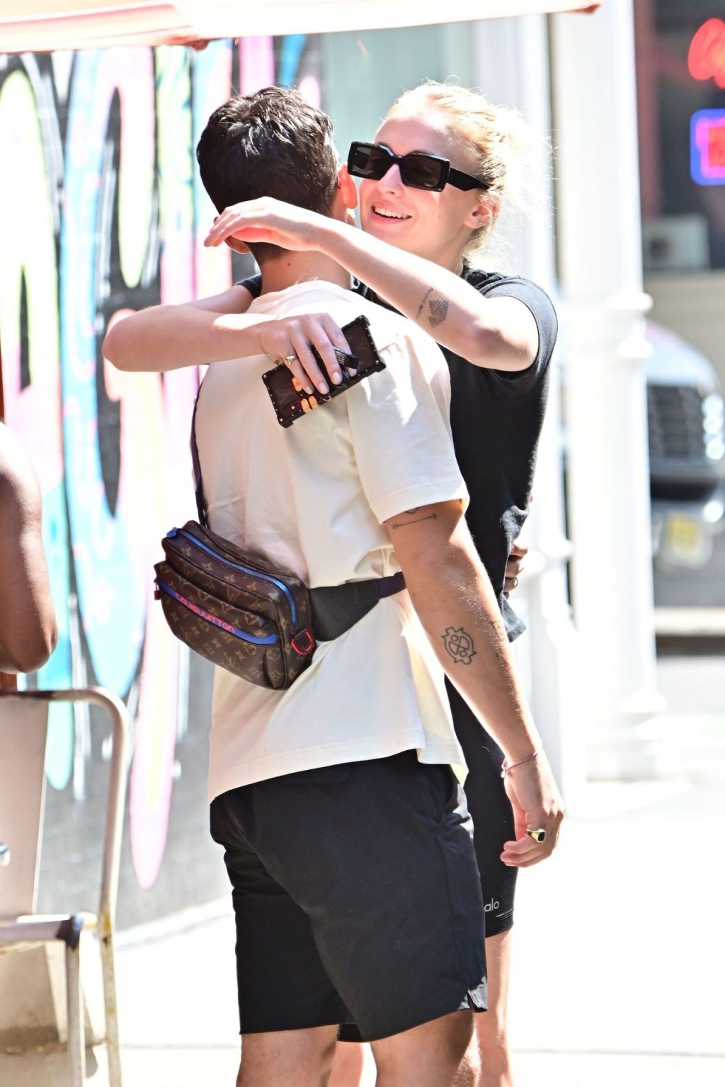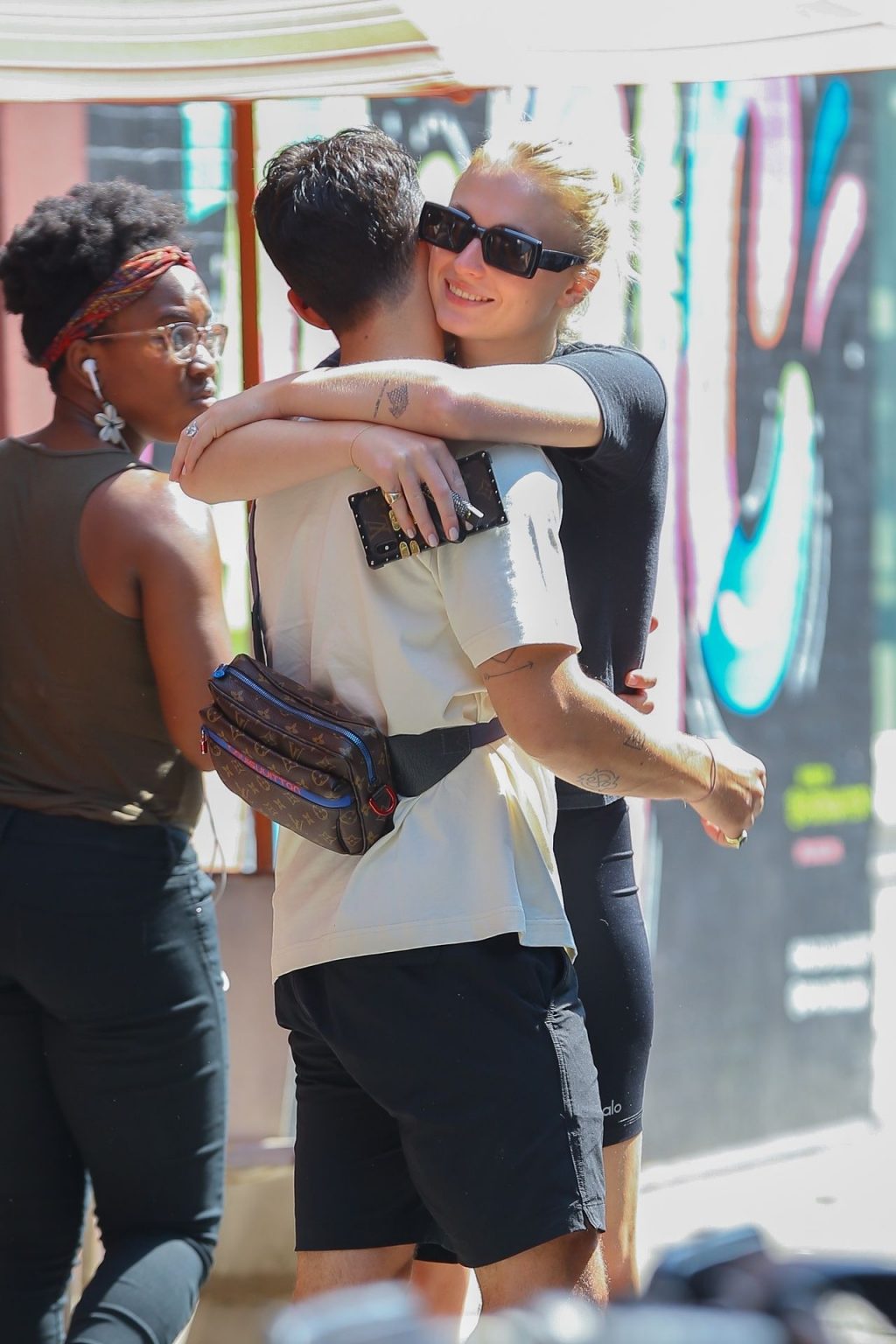Sophie Turner is kissing and hugging hubby Joe Jonas before he goes to a concert in a PDA filled moment after their lunch with friends in New York, 08/19/2019.