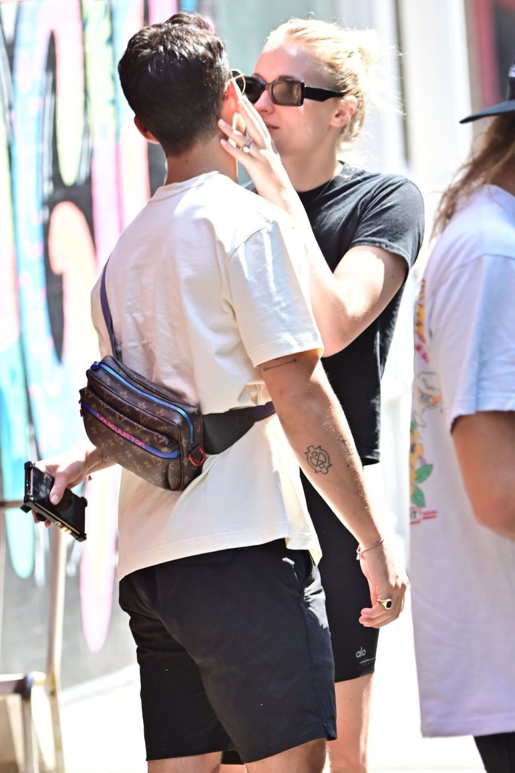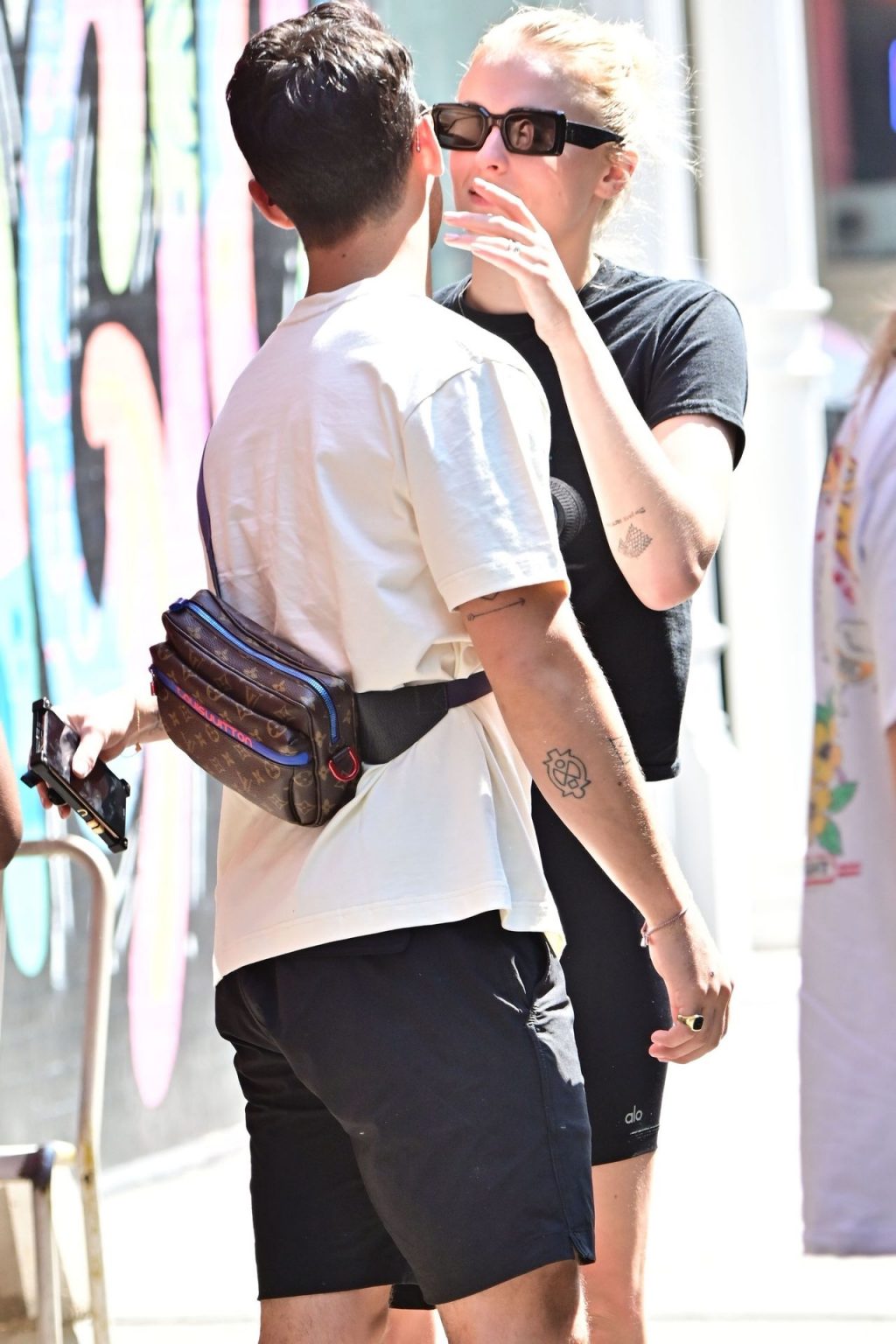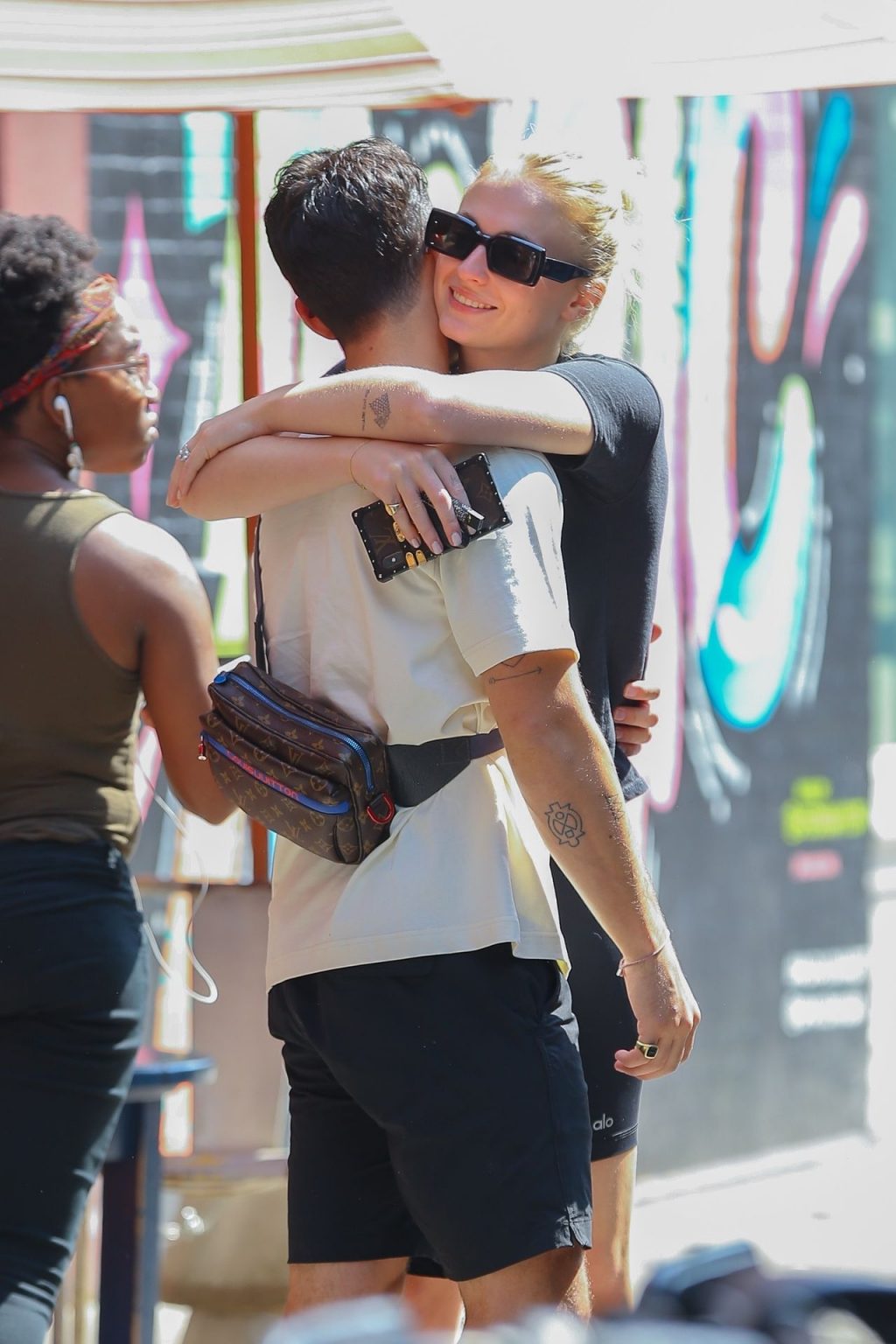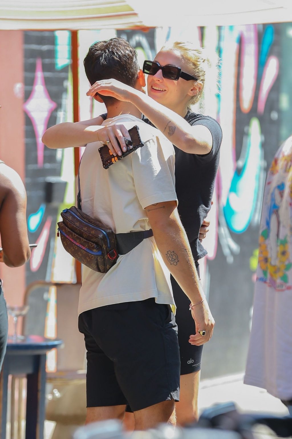 Sophie Turner is kissing and hugging hubby Joe Jonas before he goes to a concert in a PDA filled moment after their lunch with friends in New York, 08/19/2019.