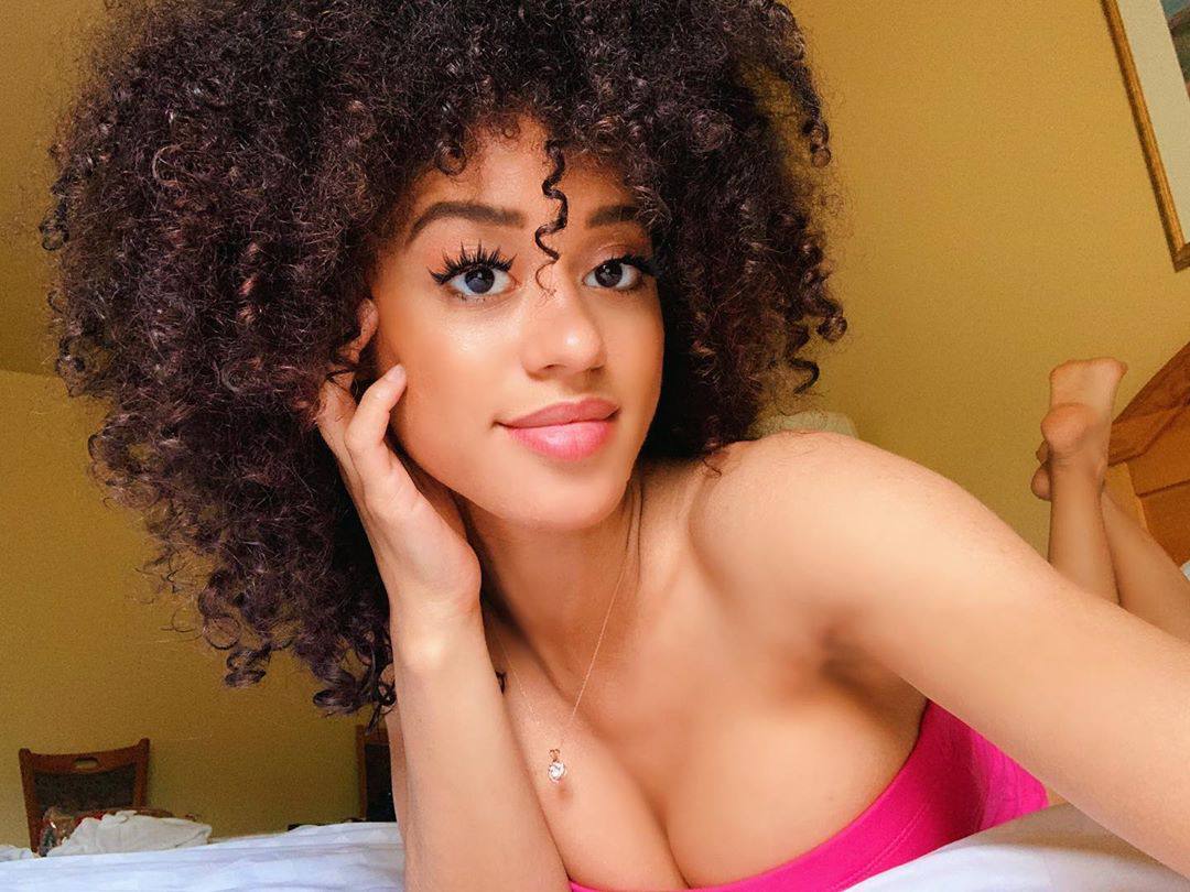 Stormi Maya looks beautiful wearing tight tube top and denim shorts in sexy braless photoshoot.