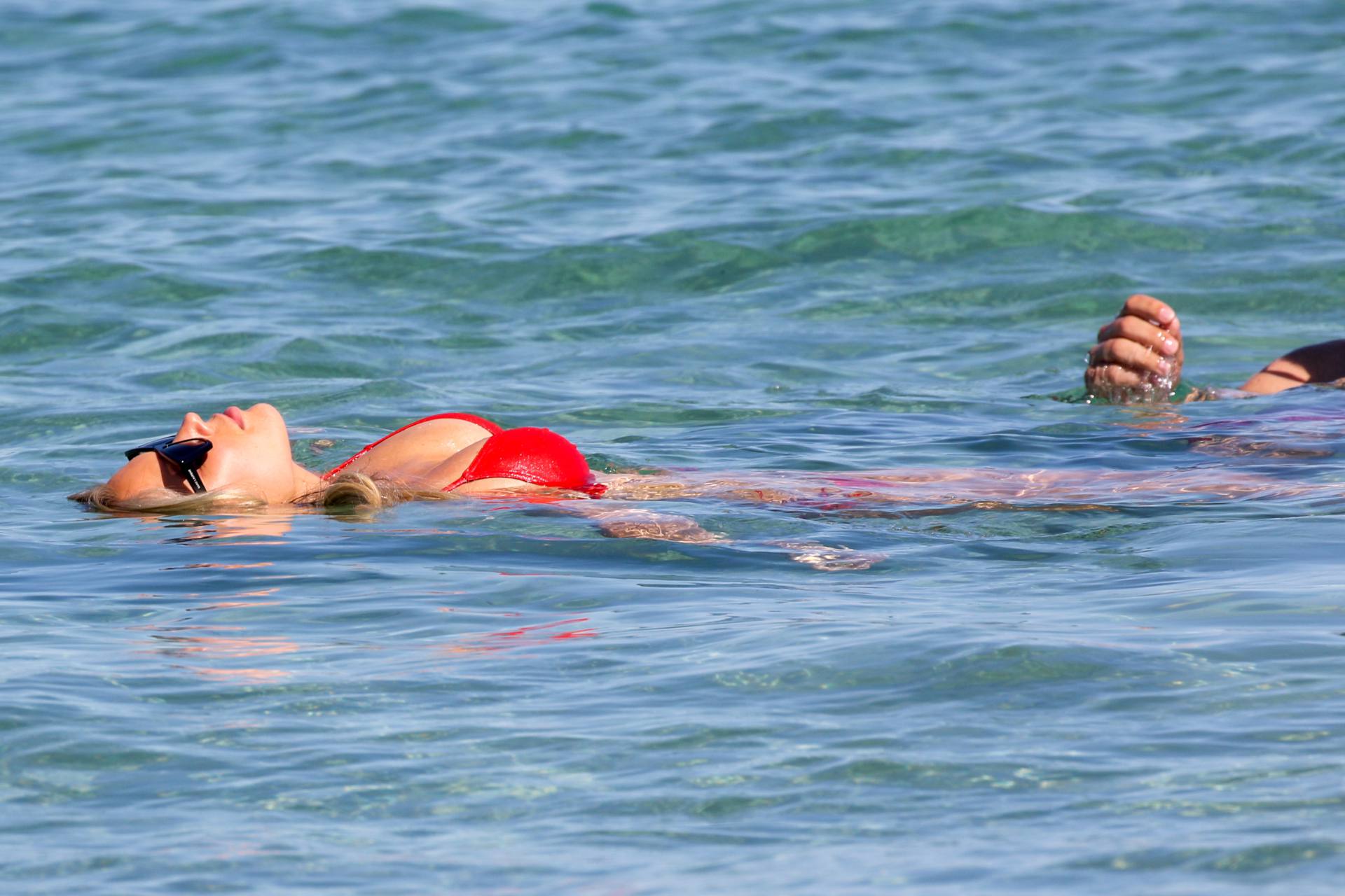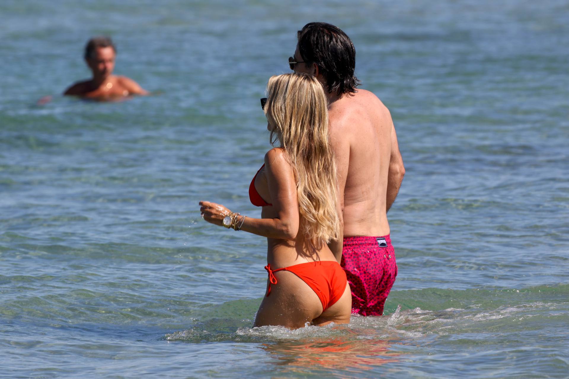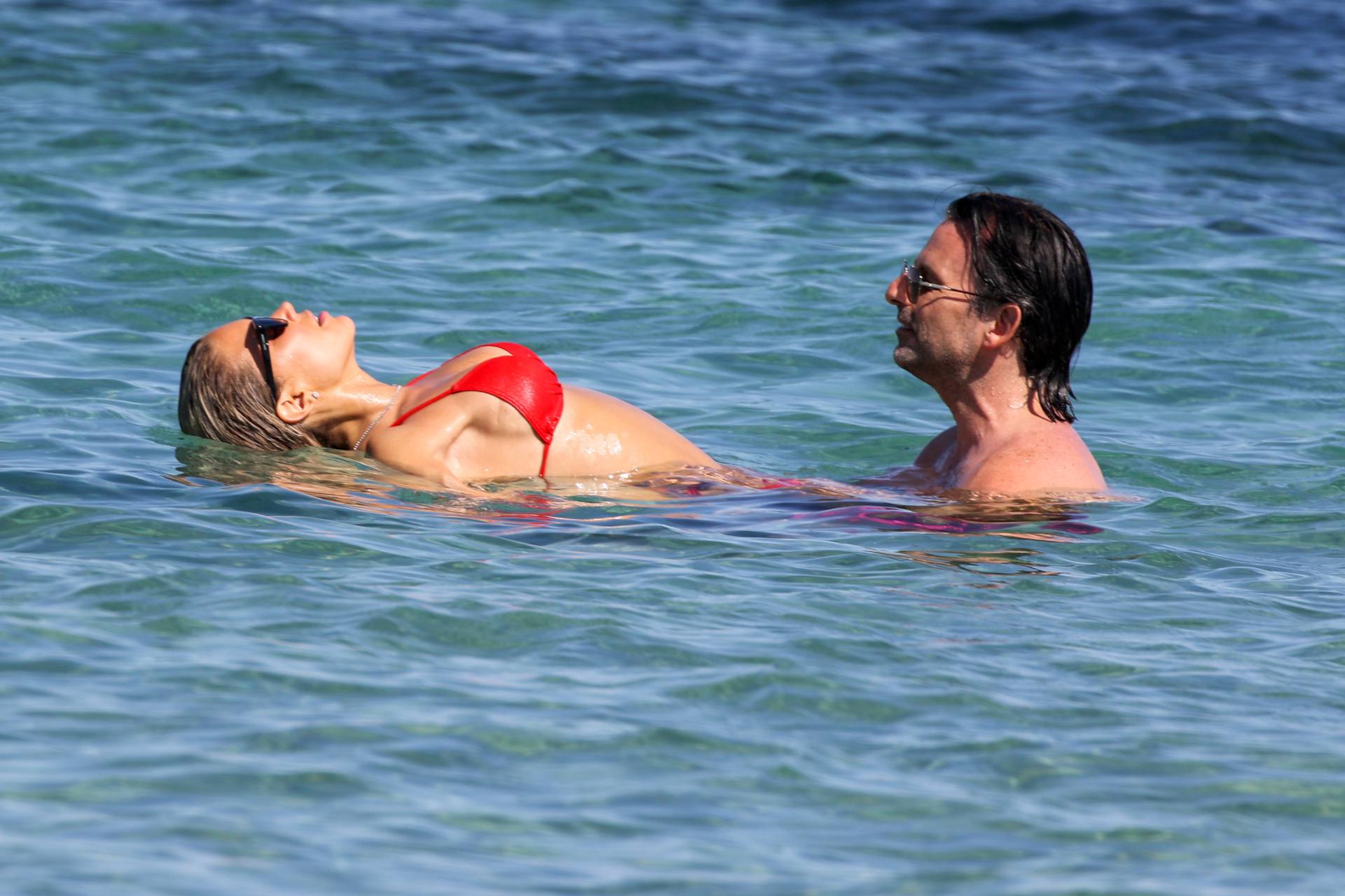 Sylvie Meis flaunts her sexy toned body wearing small red bikini on the beach in Saint Tropez.