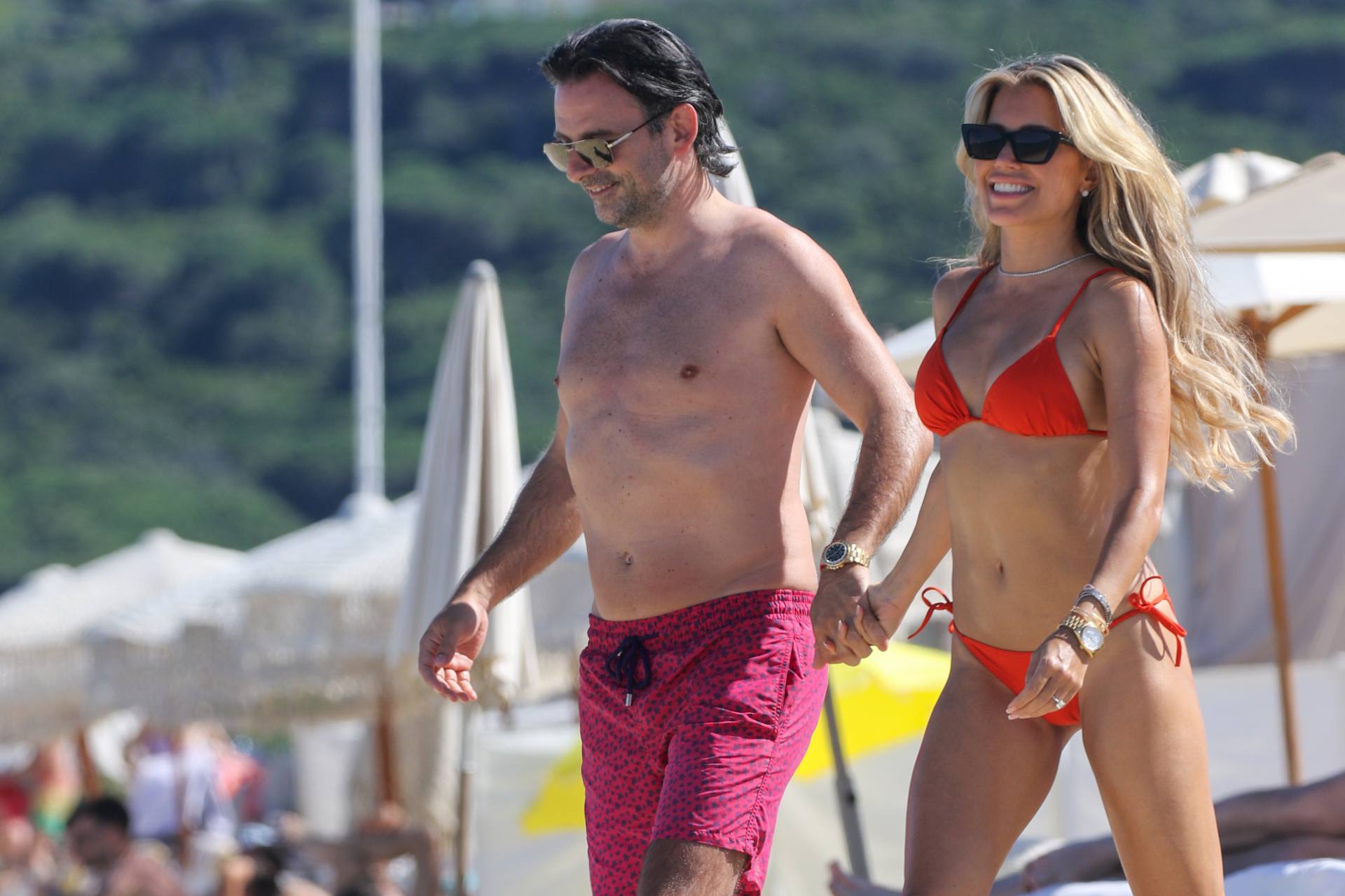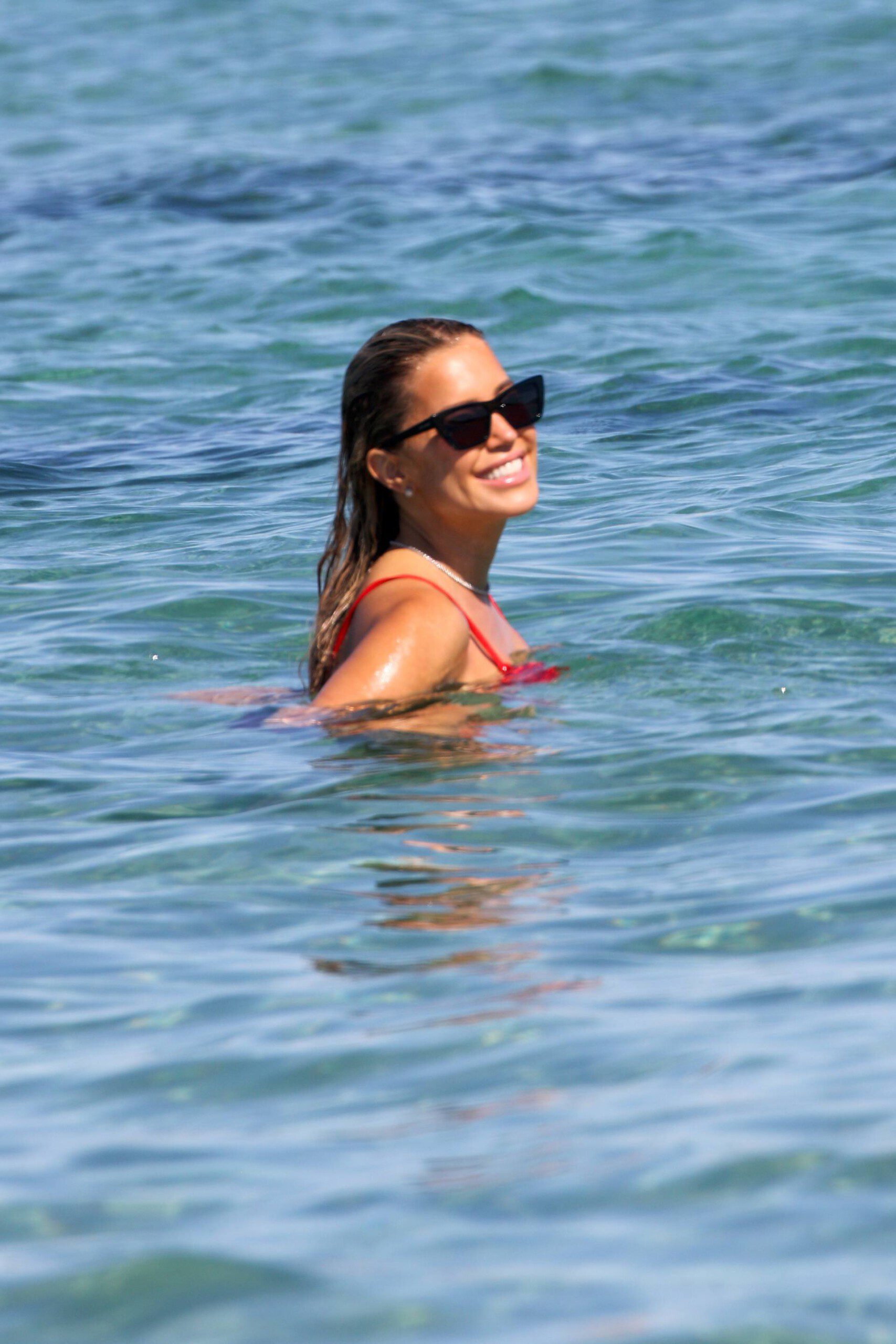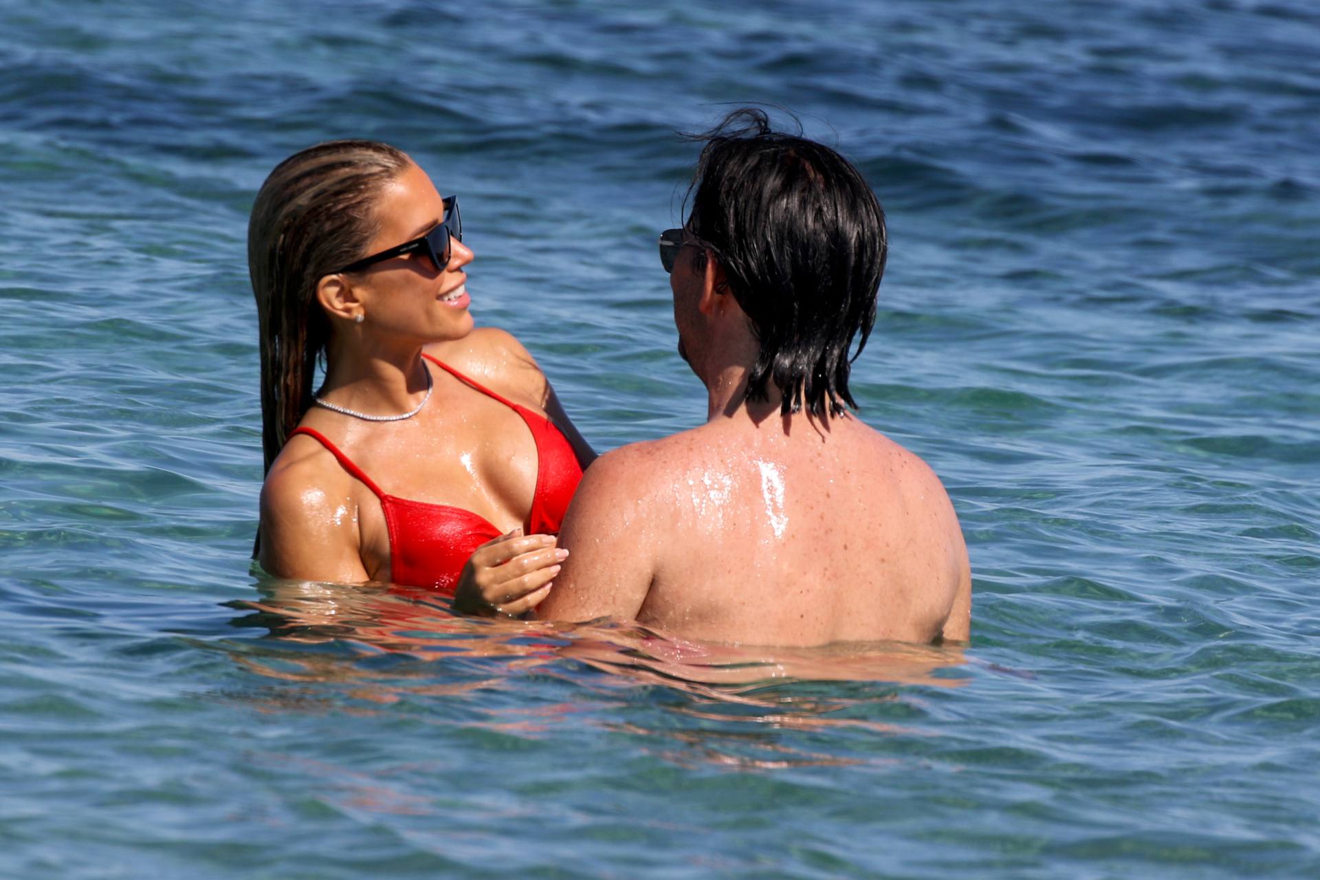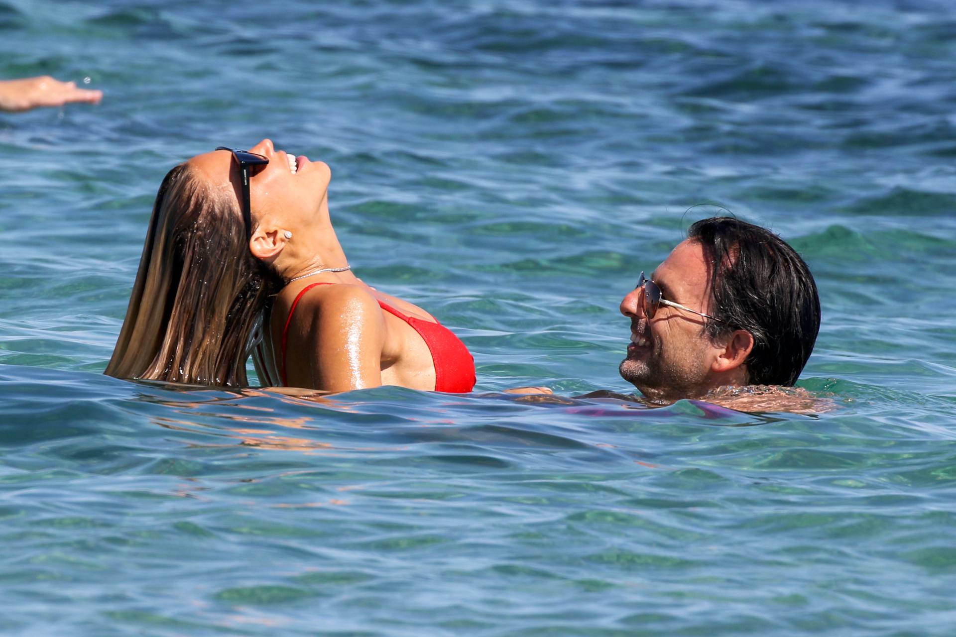 Sylvie Meis flaunts her sexy toned body wearing small red bikini on the beach in Saint Tropez.