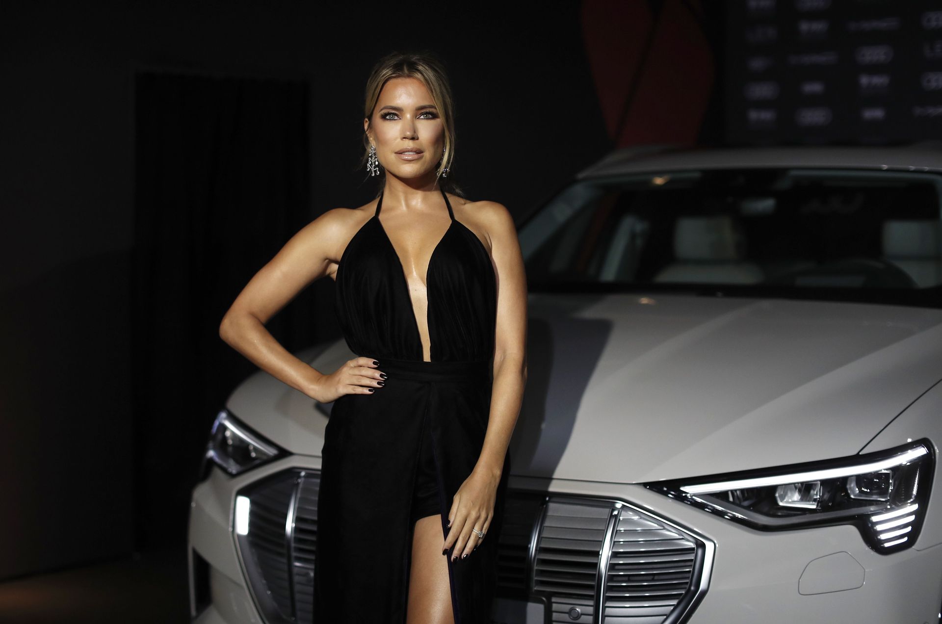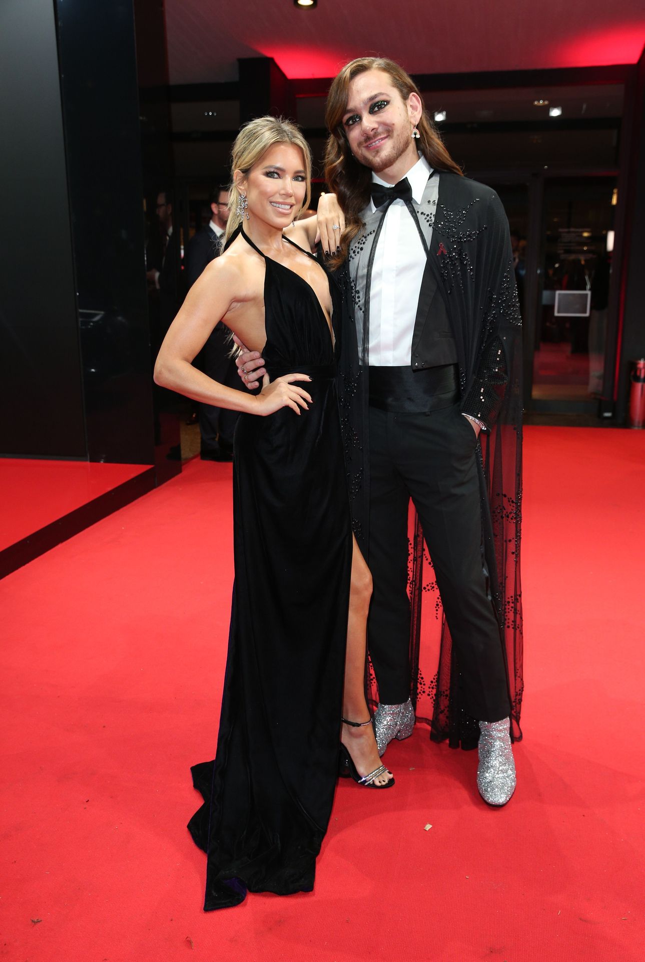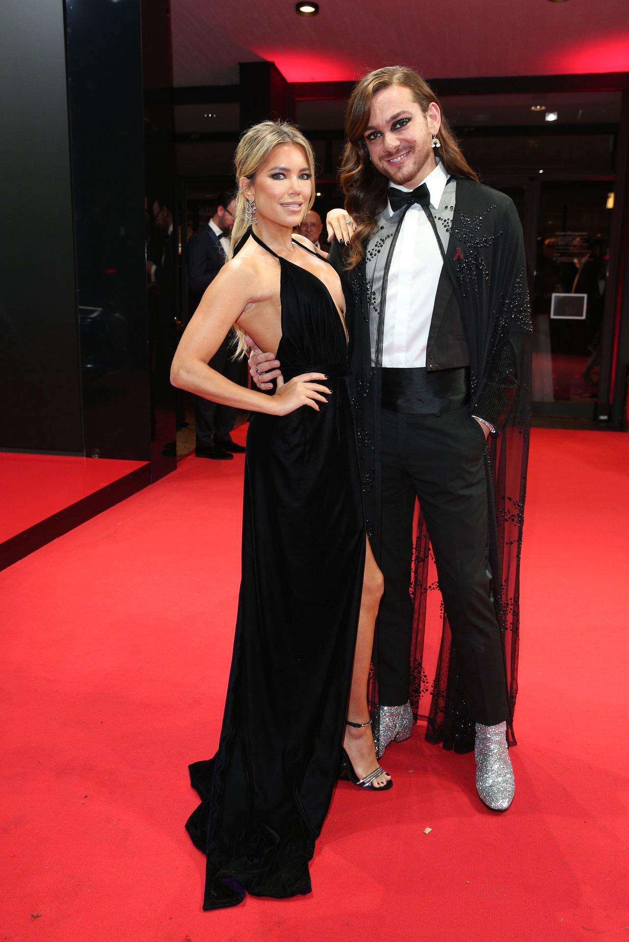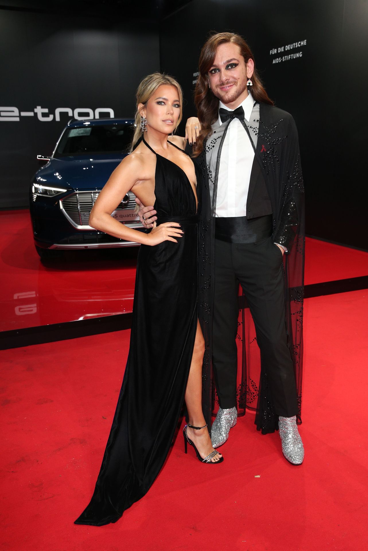 Sylvie Meis attends the German Aids Gala in Berlin, 11/02/2019. She presents her engagement ring. The dress is designed by Galia Lahav Germany and jewellery by Chopard.