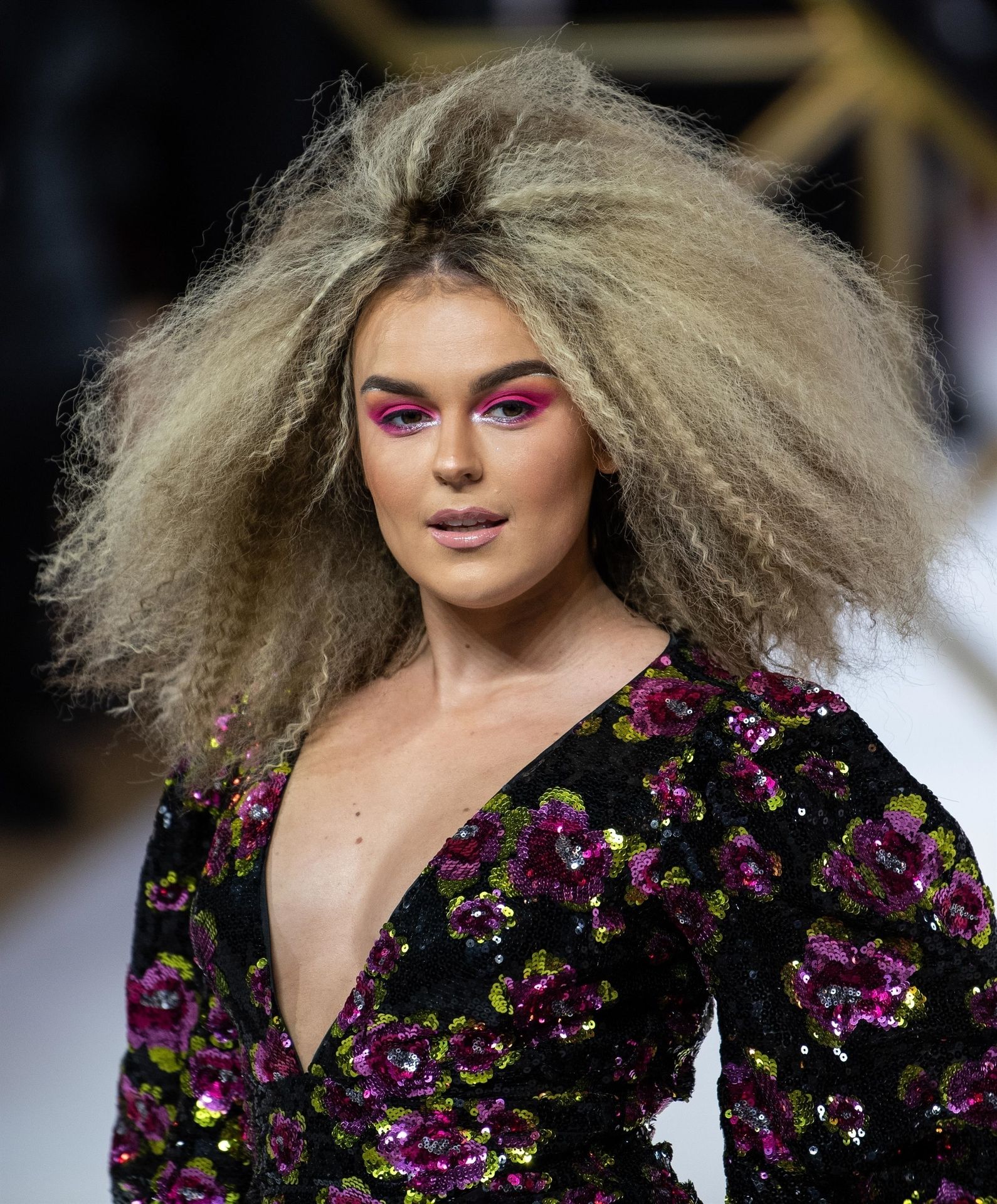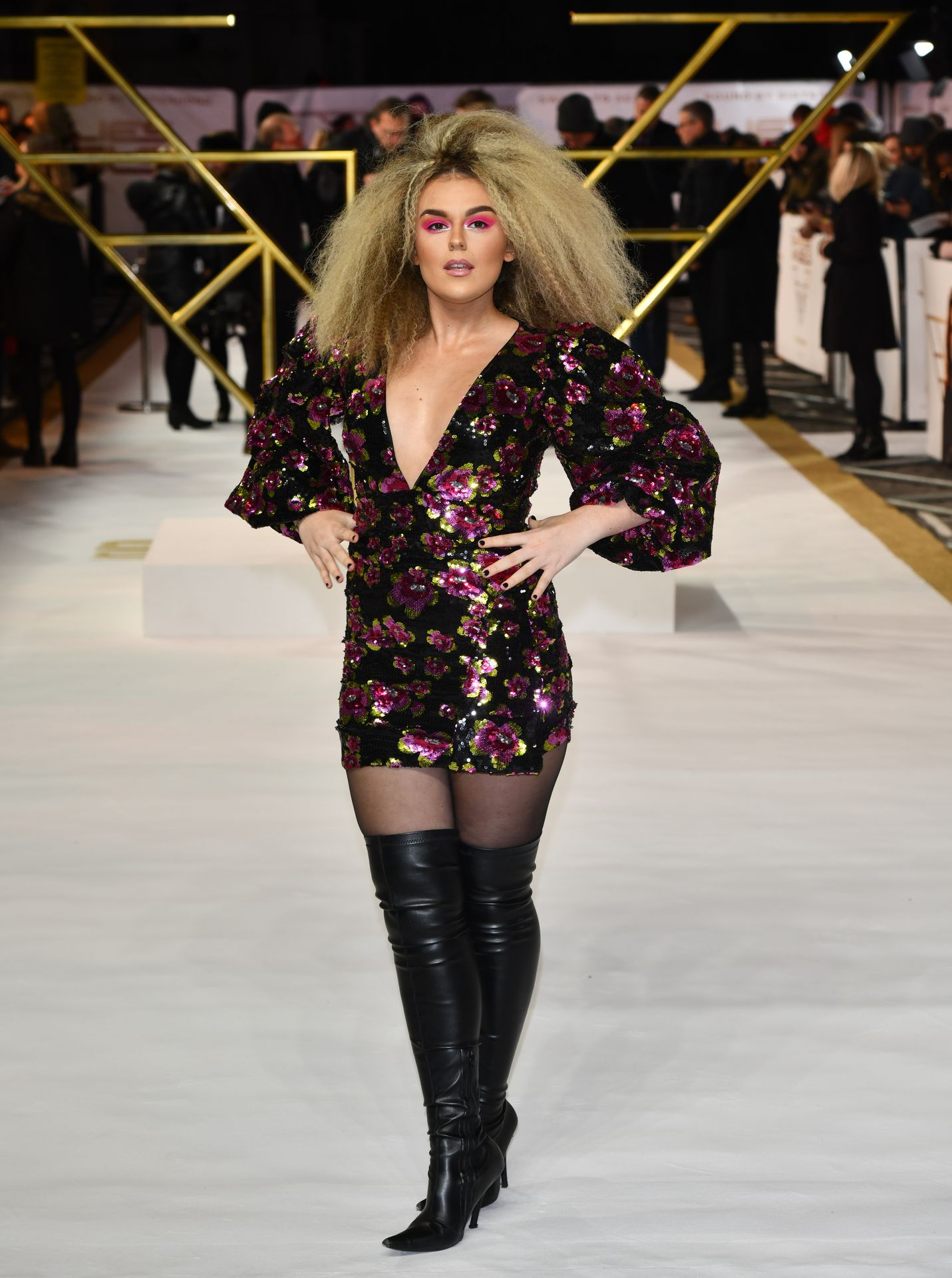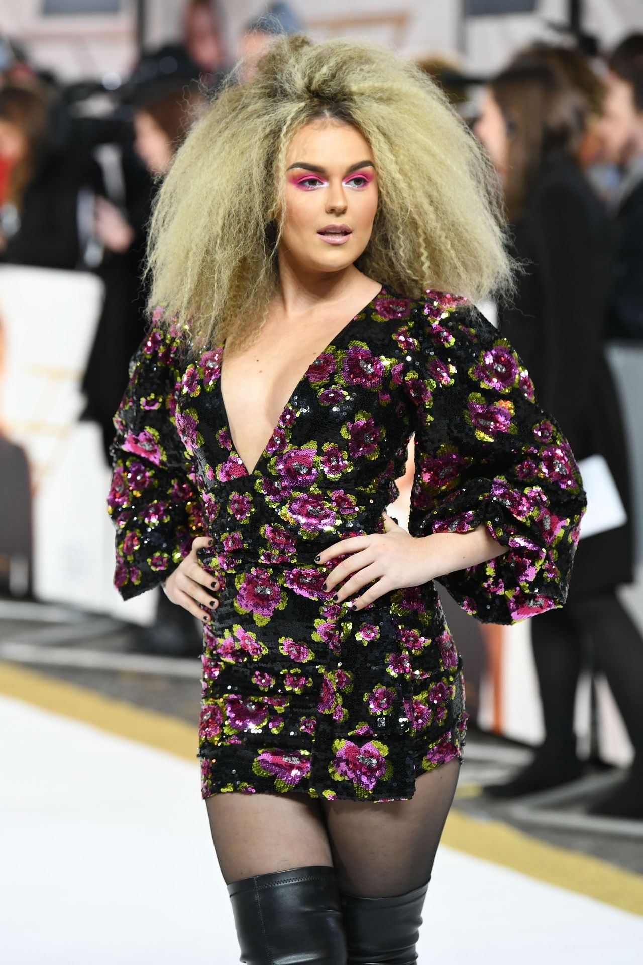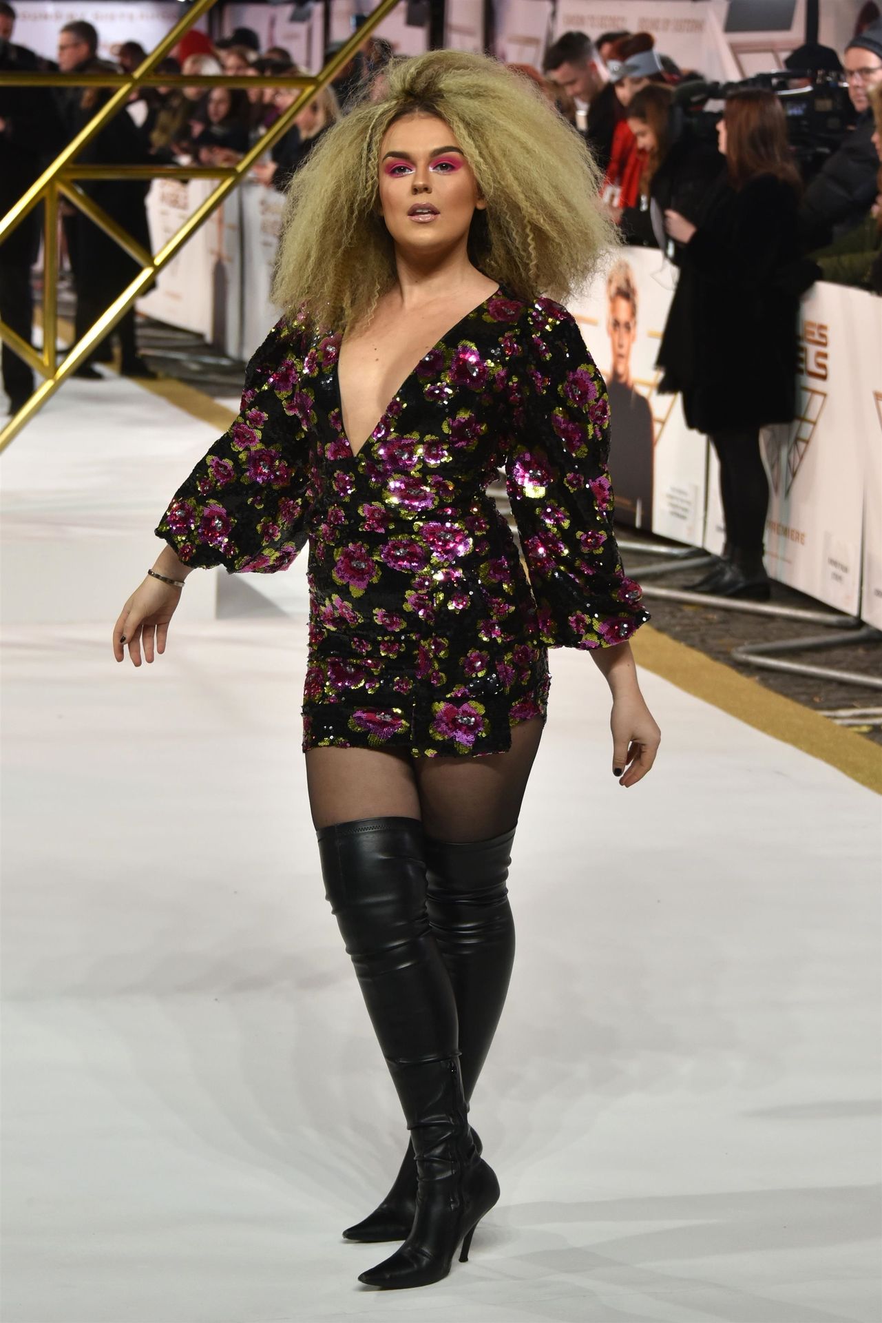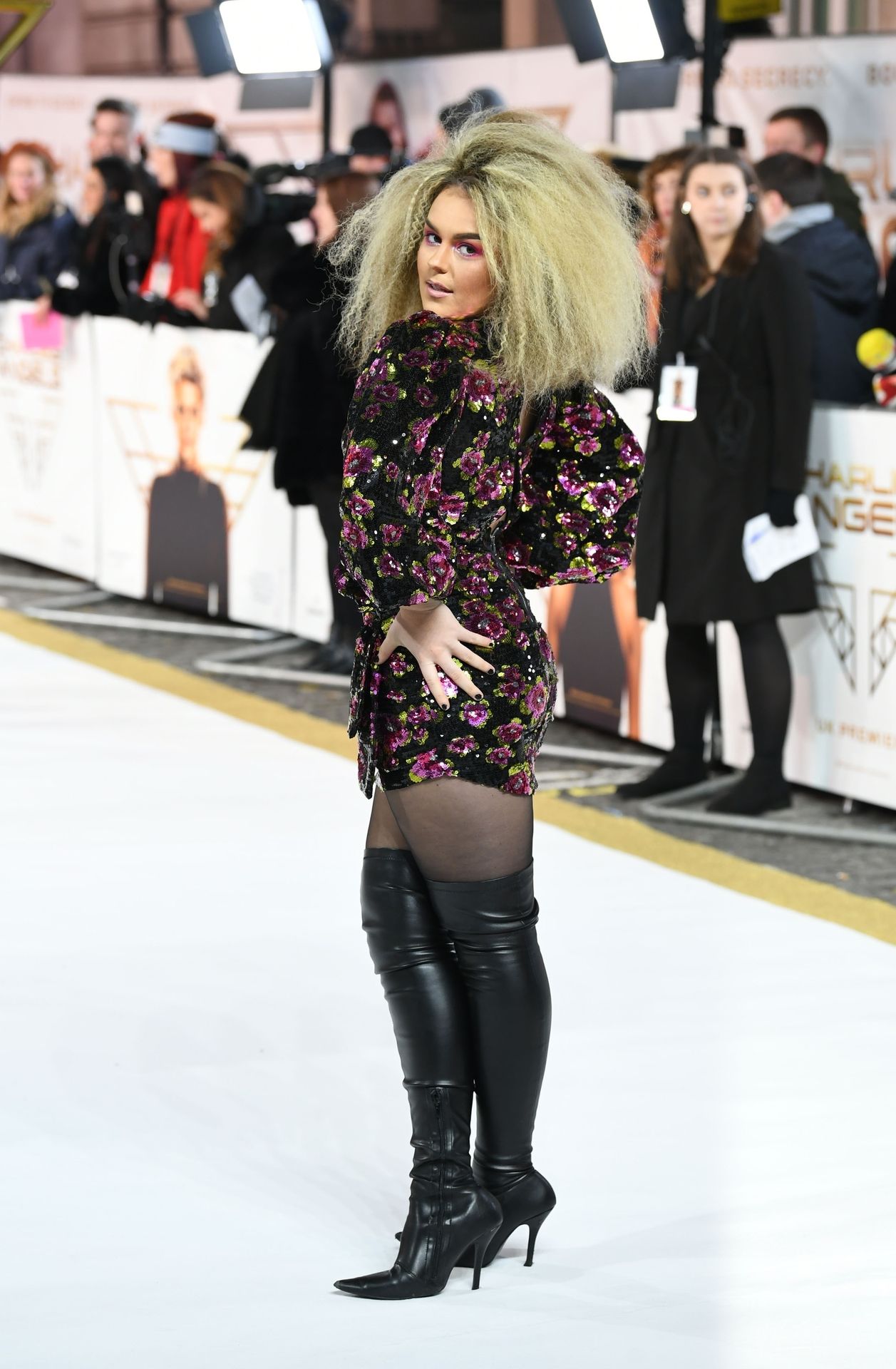 Tittyless singer Tallia Storm attends Charlie’s Angels Film Premiere at Curzons Mayfair in London, 11/20/2019. All the attention of the guests was turned to her hairstyle!
