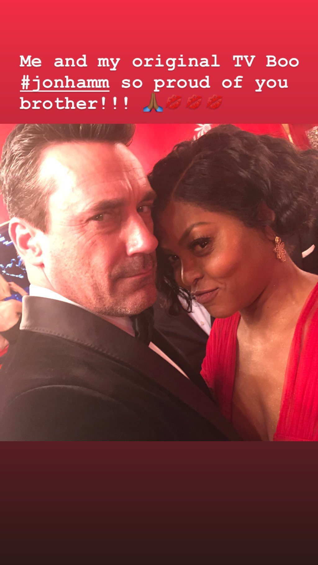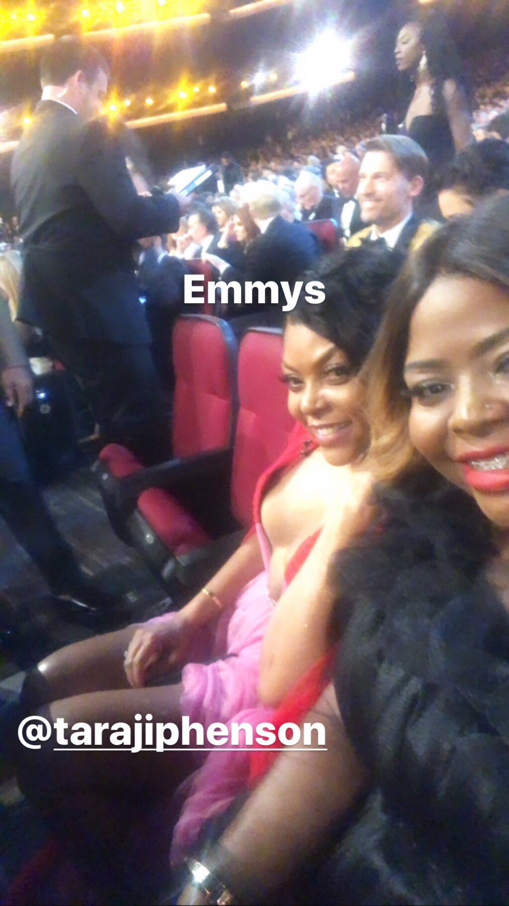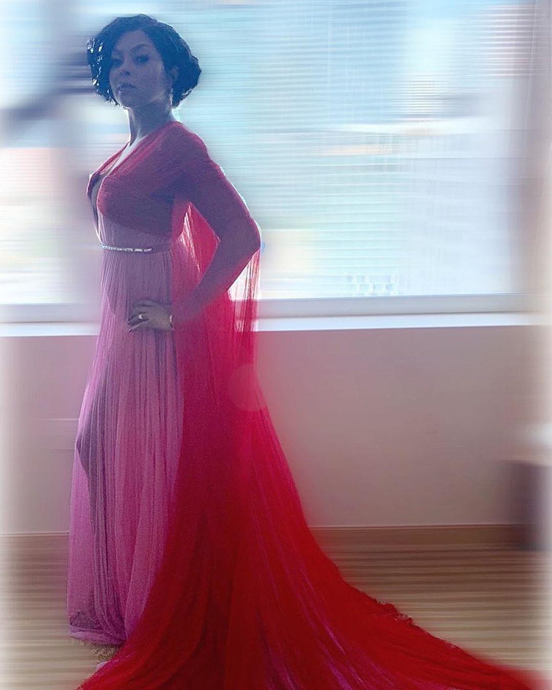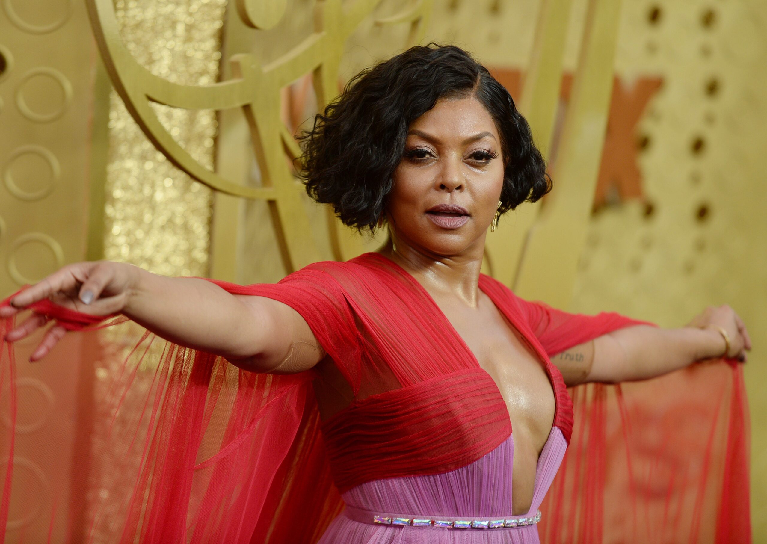 Actress Taraji P. Henson shared her wonderful mood, tits, and legs, wearing a red-pink light dress at the 71st Emmy Awards in Los Angeles, 09/22/2019.
