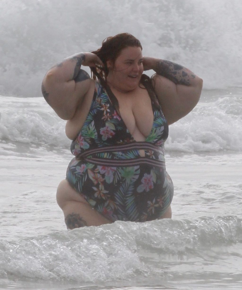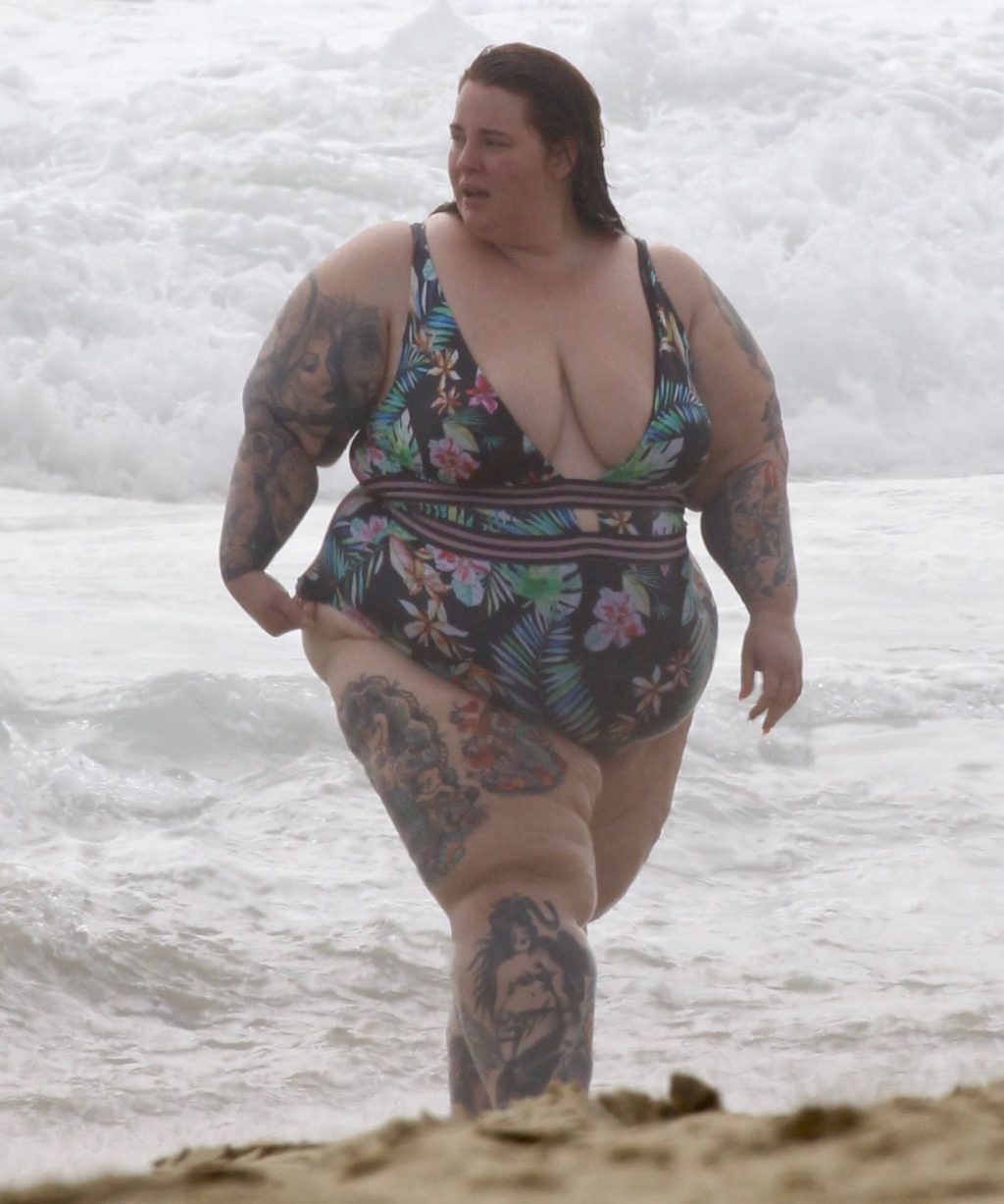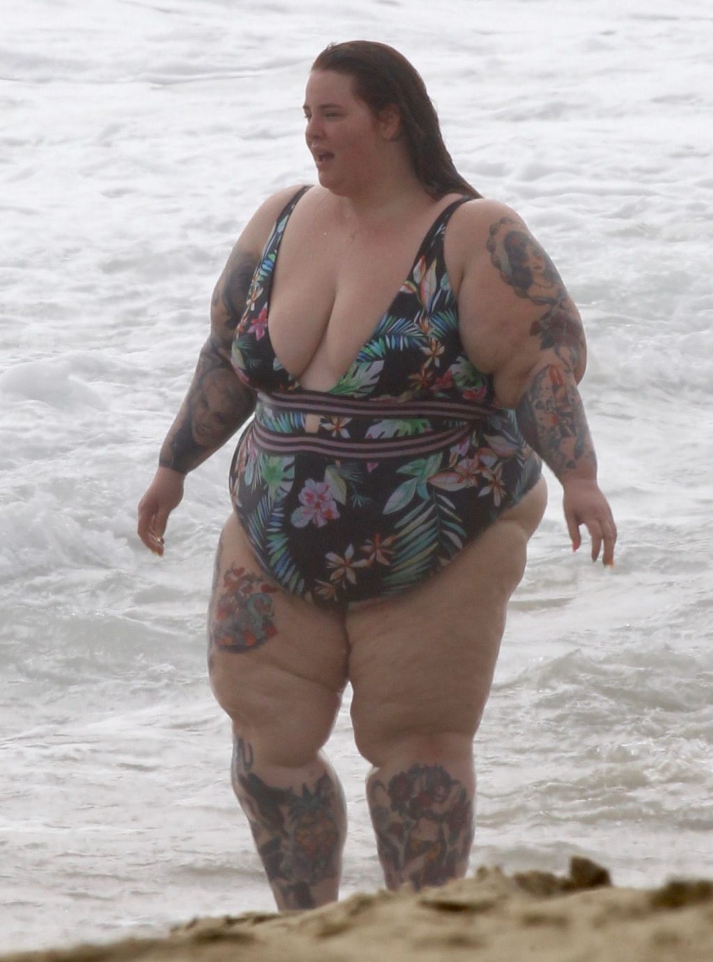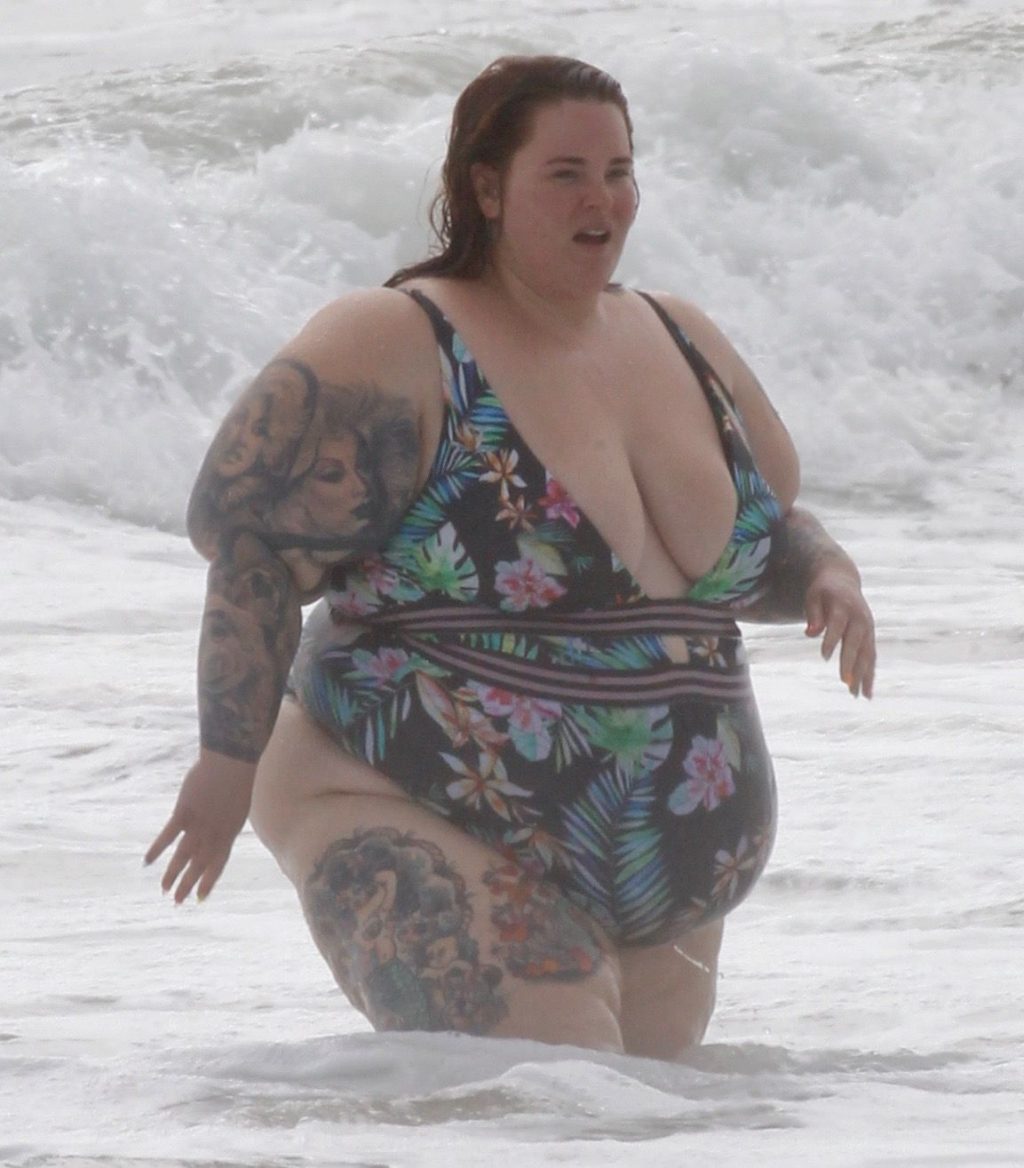 Model Tess Holliday spends the day at Malibu beach in a one-piece bikini, 07/16/2019. Crapper’s girlfriend wants to be popular, too!