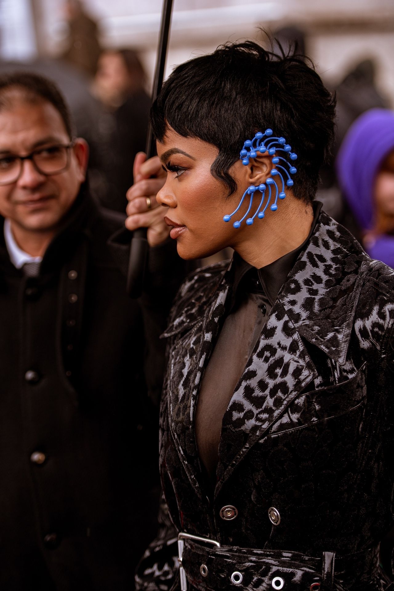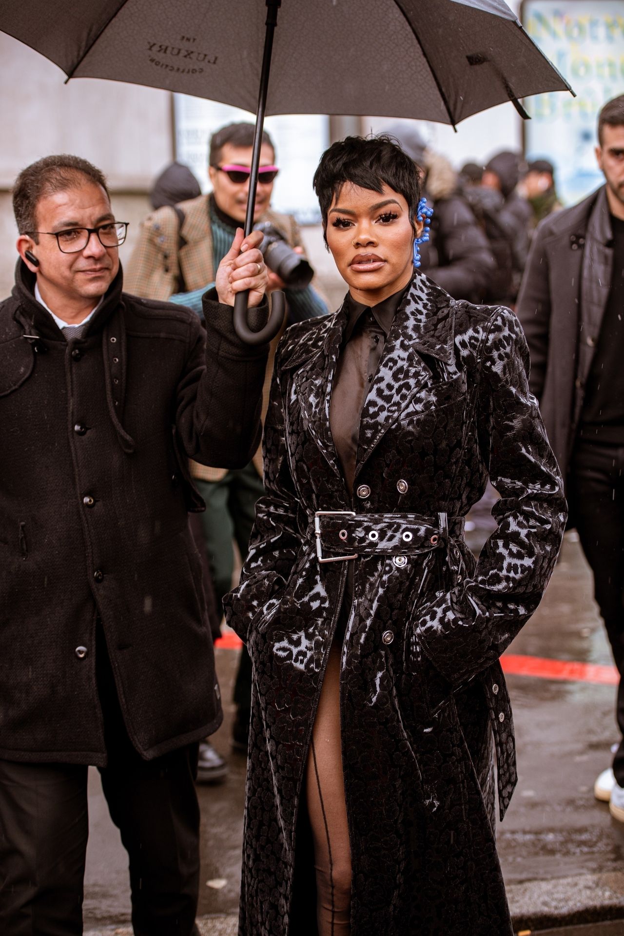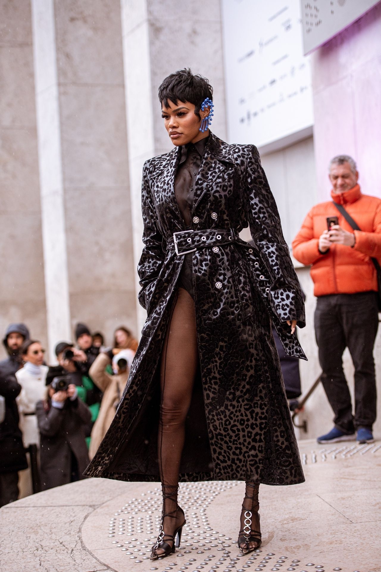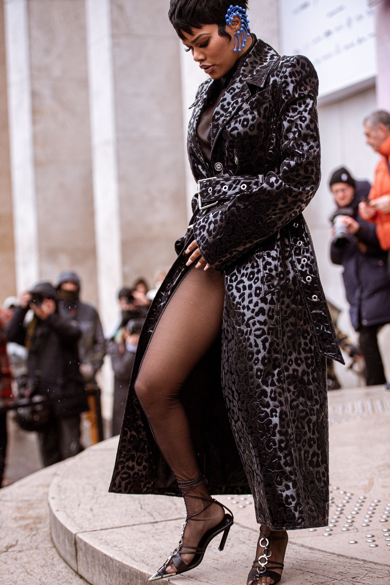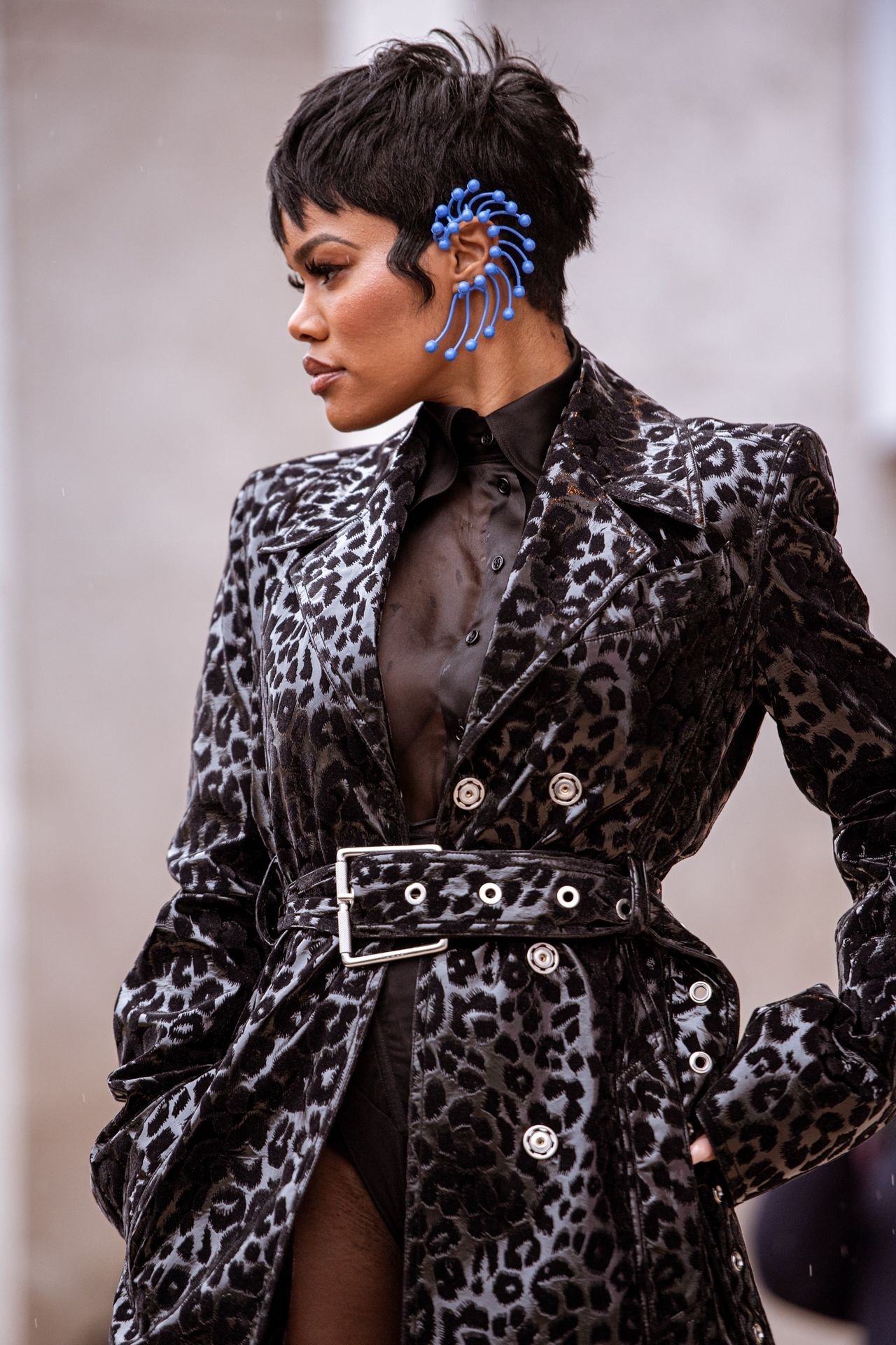 Busty model, dancer, singer and songwriter Teyana Taylor was pictured attending the Mugler show as part of the Paris Fashion Week Womenswear Fall/Winter 2020/2021 in Paris, 02/26/2020.