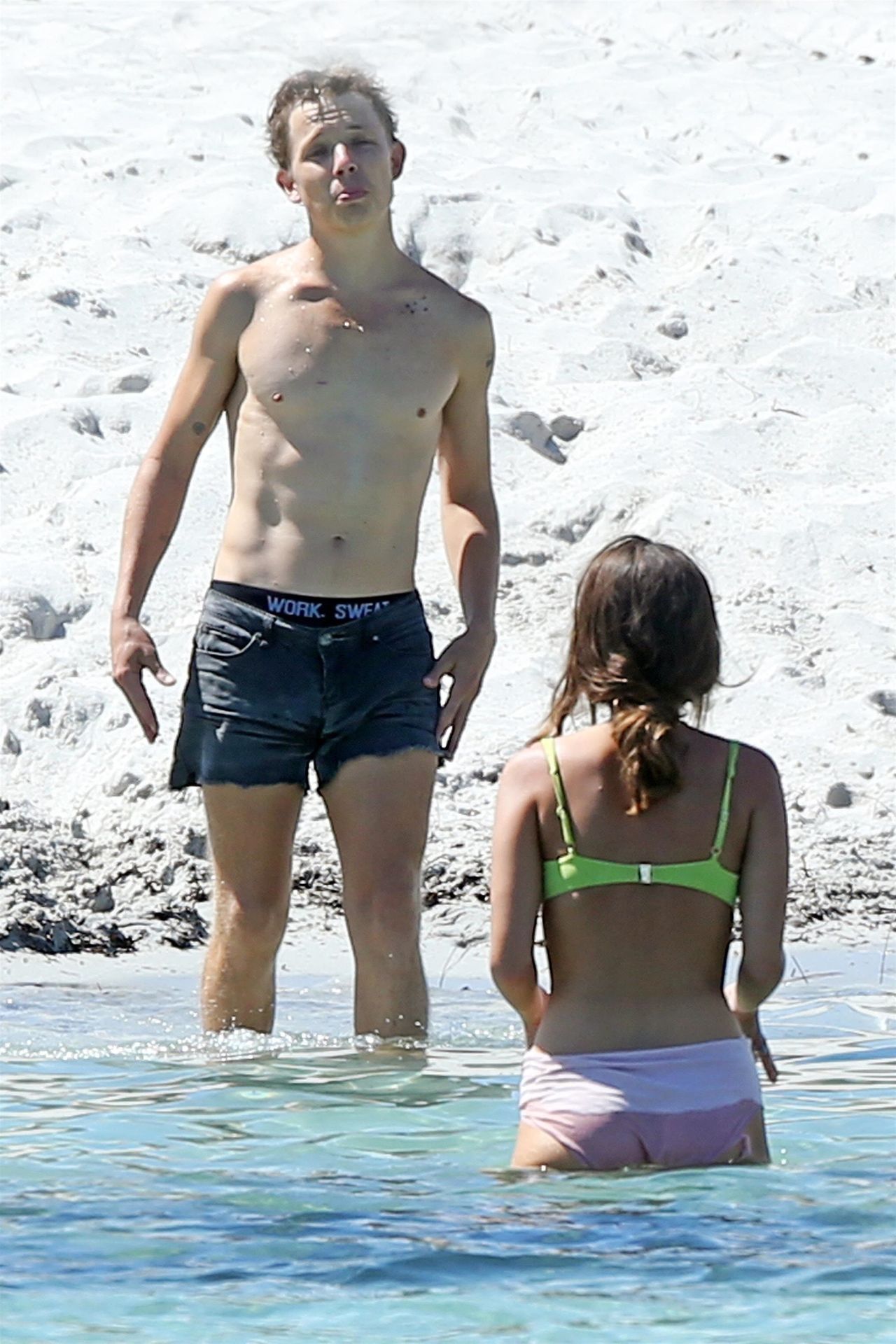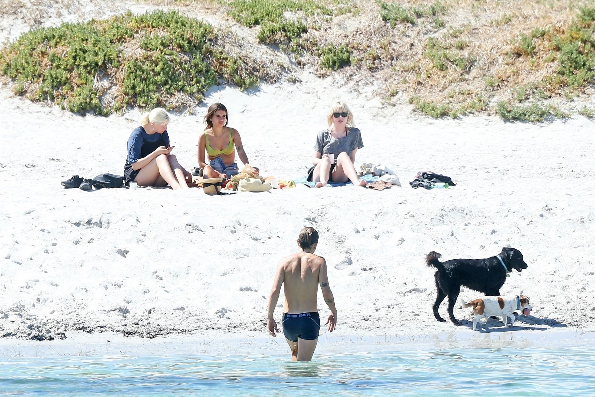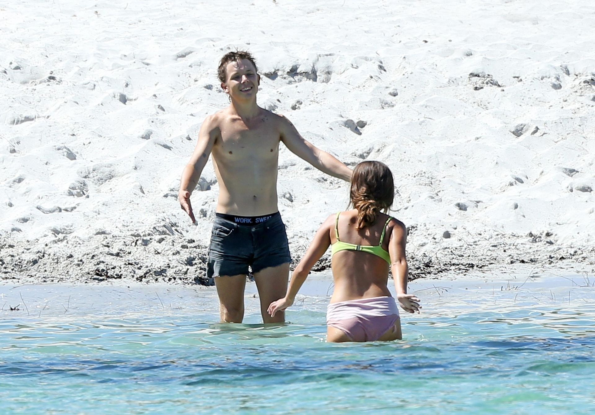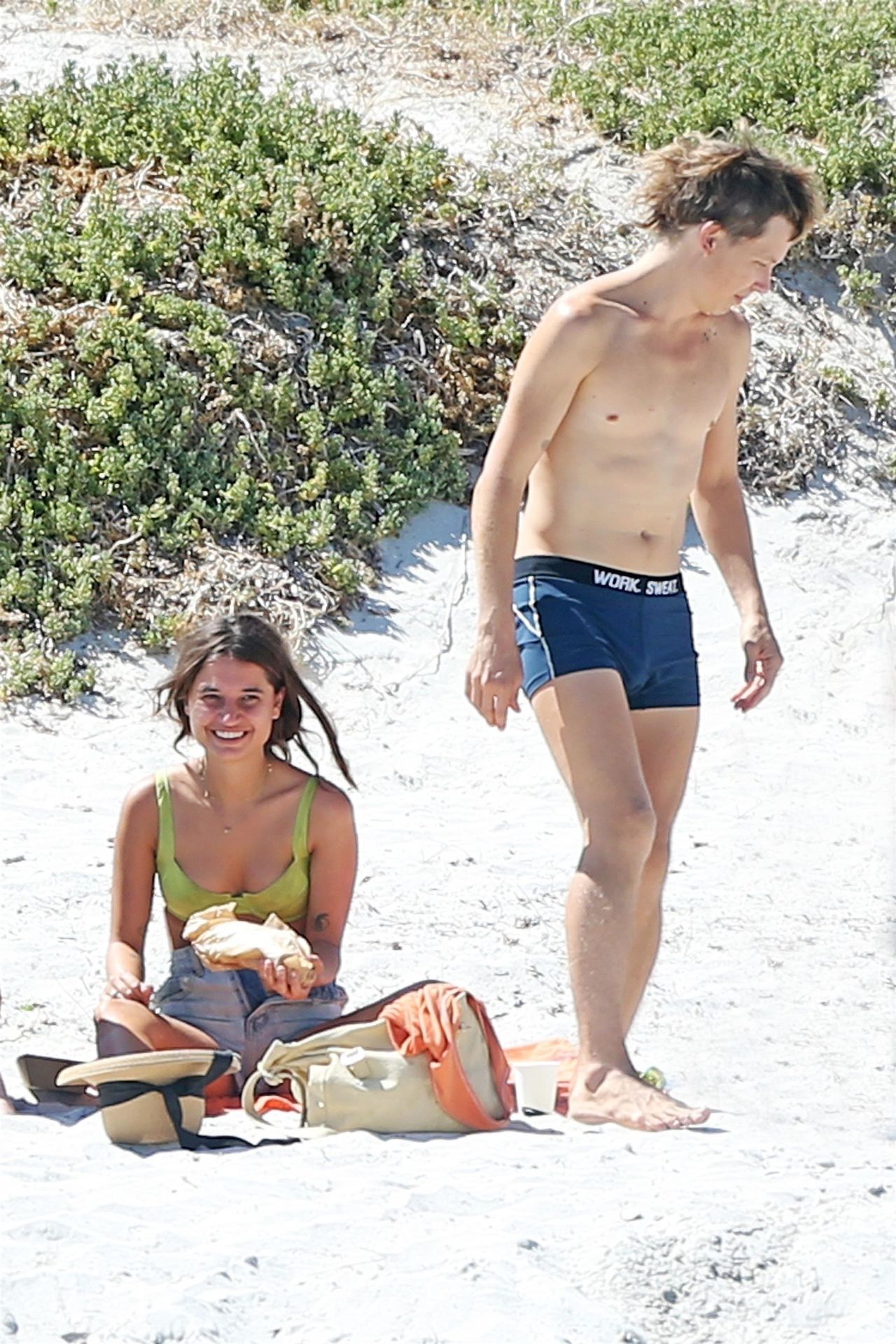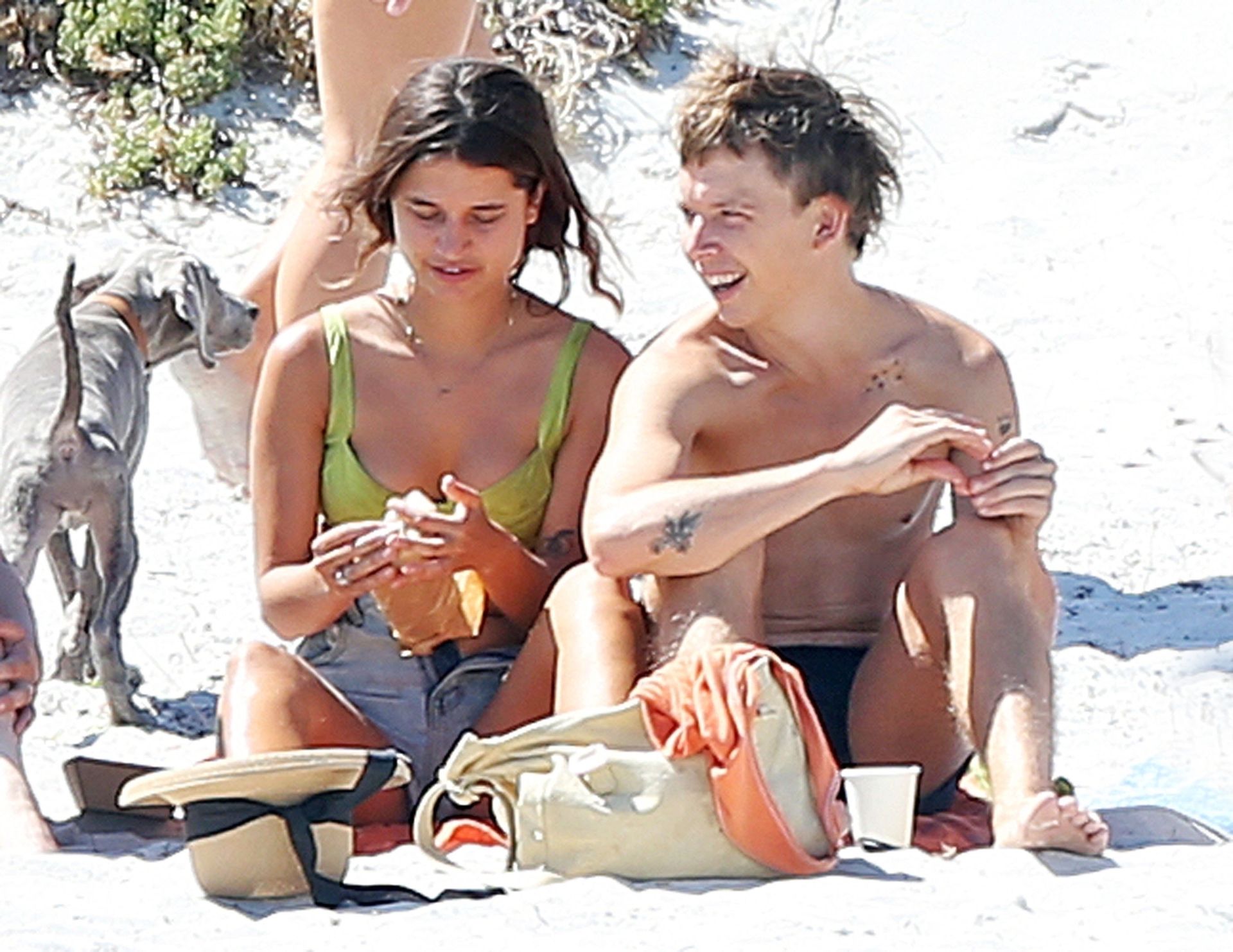 The young couple enjoyed a bite to eat on the beach with friends before taking a dip in the sea together with the pair embracing looking very much in love.