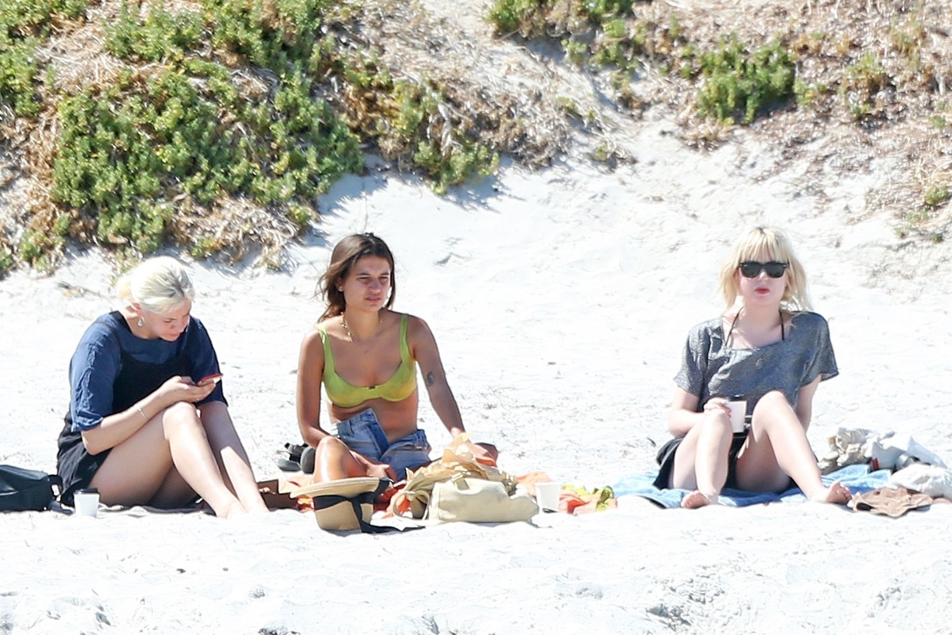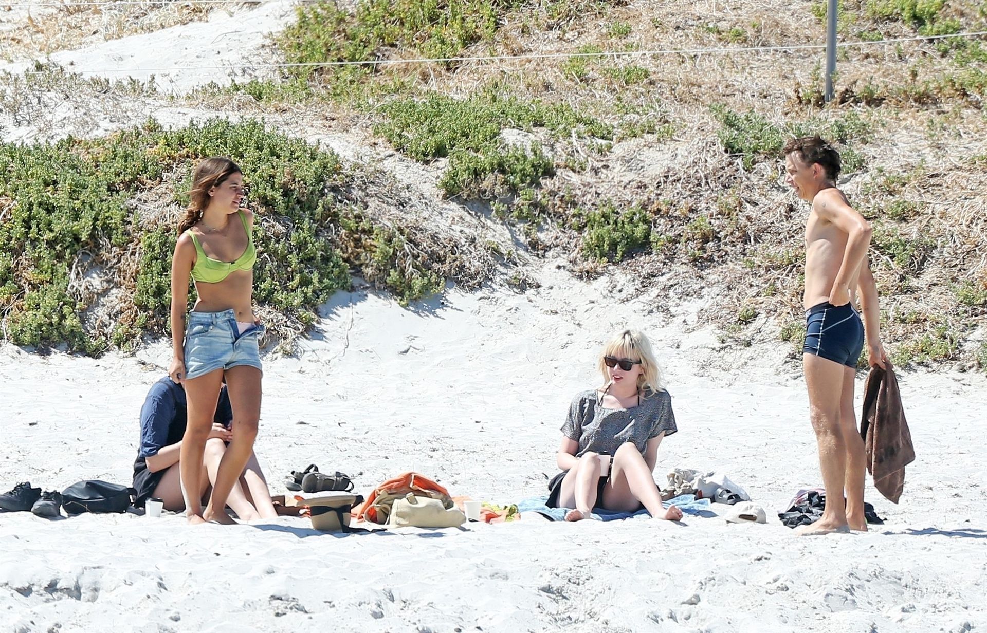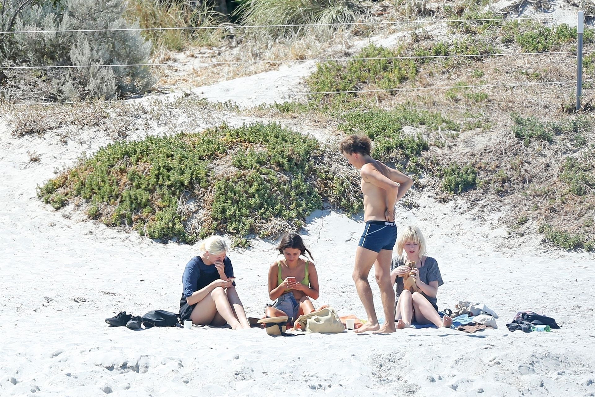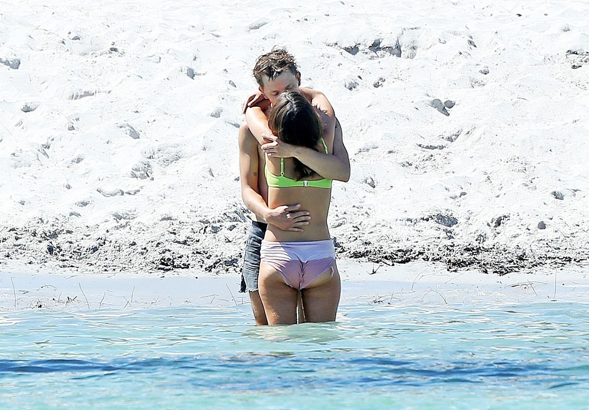 The young couple enjoyed a bite to eat on the beach with friends before taking a dip in the sea together with the pair embracing looking very much in love.