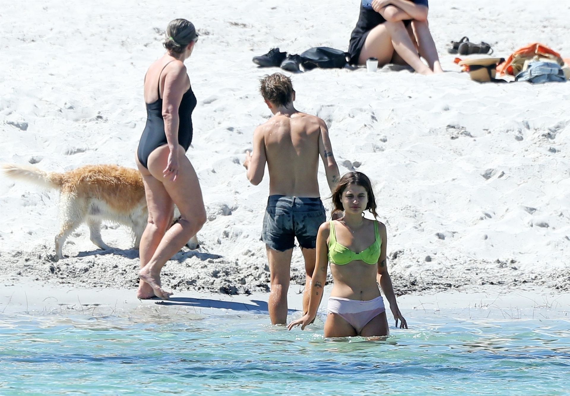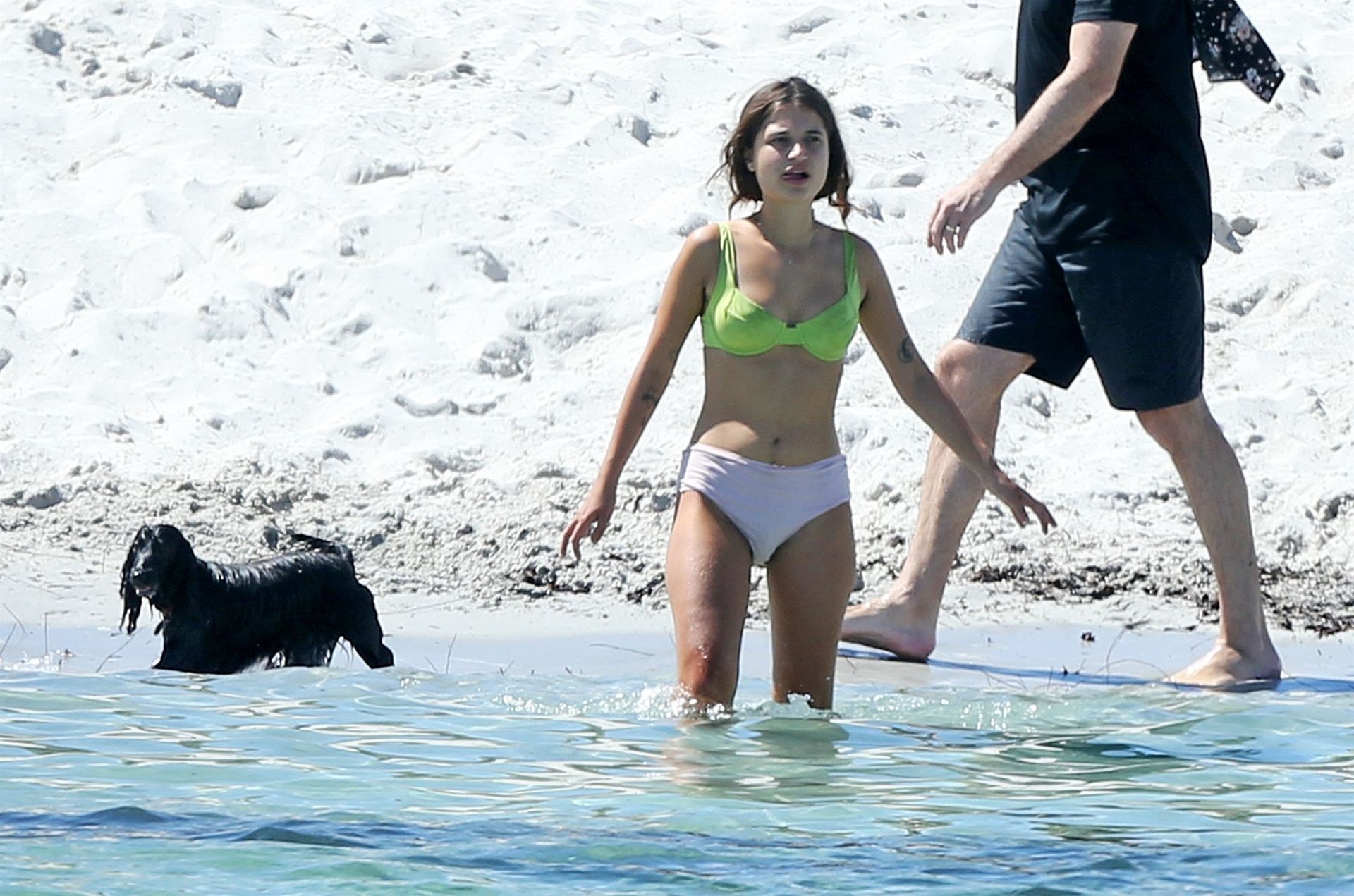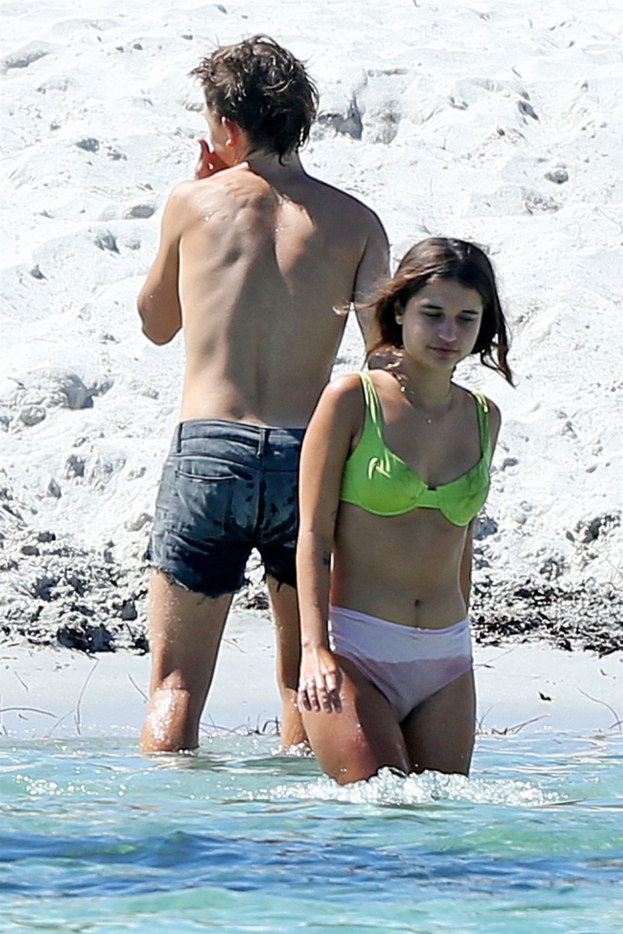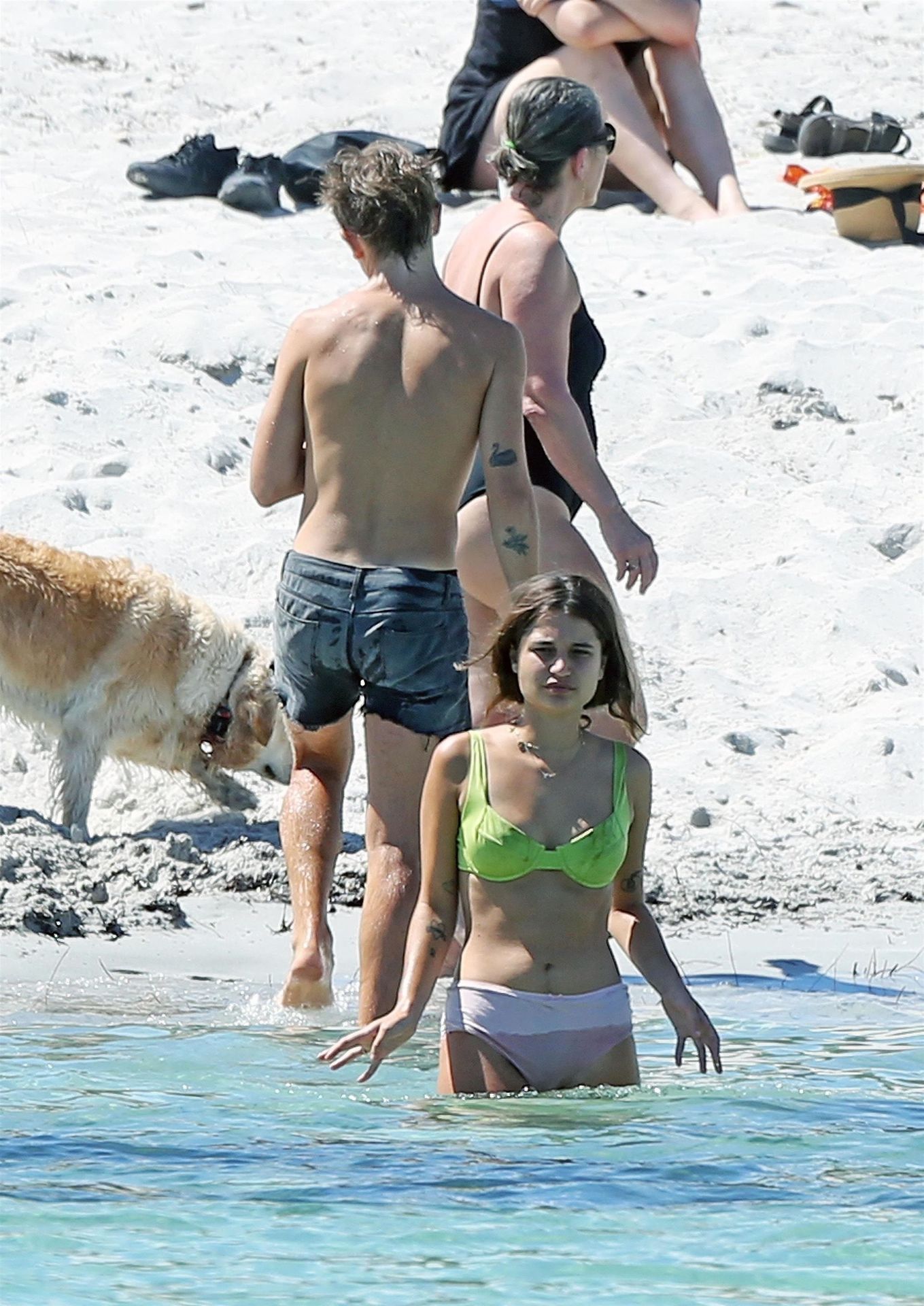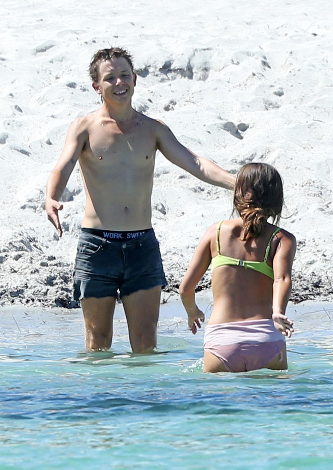 The young couple enjoyed a bite to eat on the beach with friends before taking a dip in the sea together with the pair embracing looking very much in love.