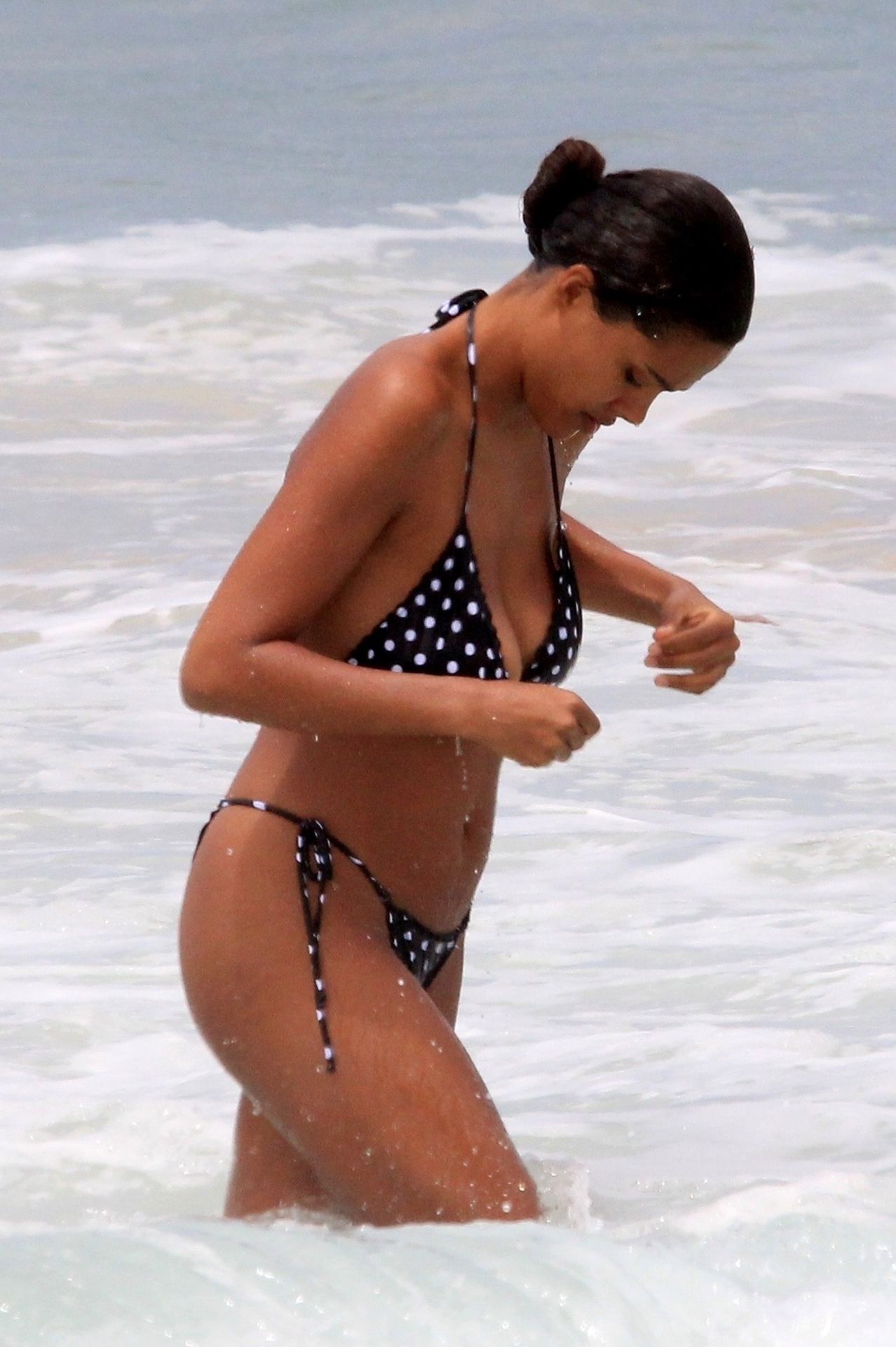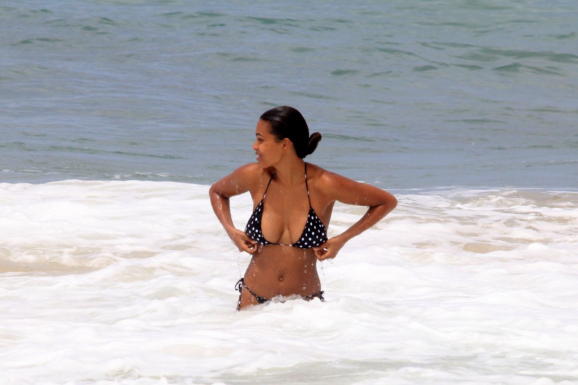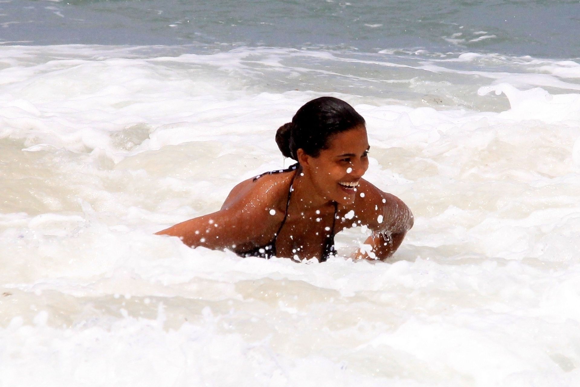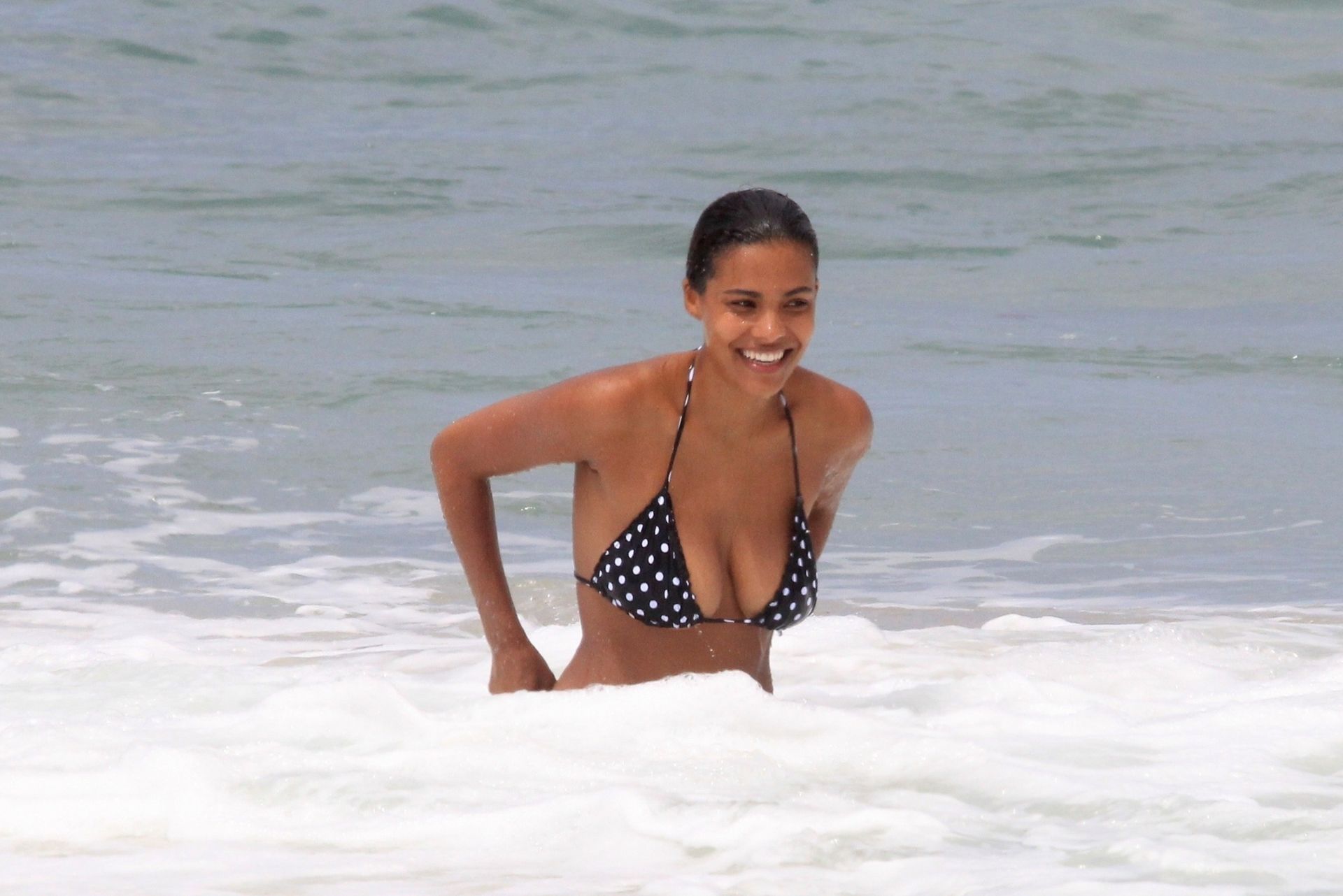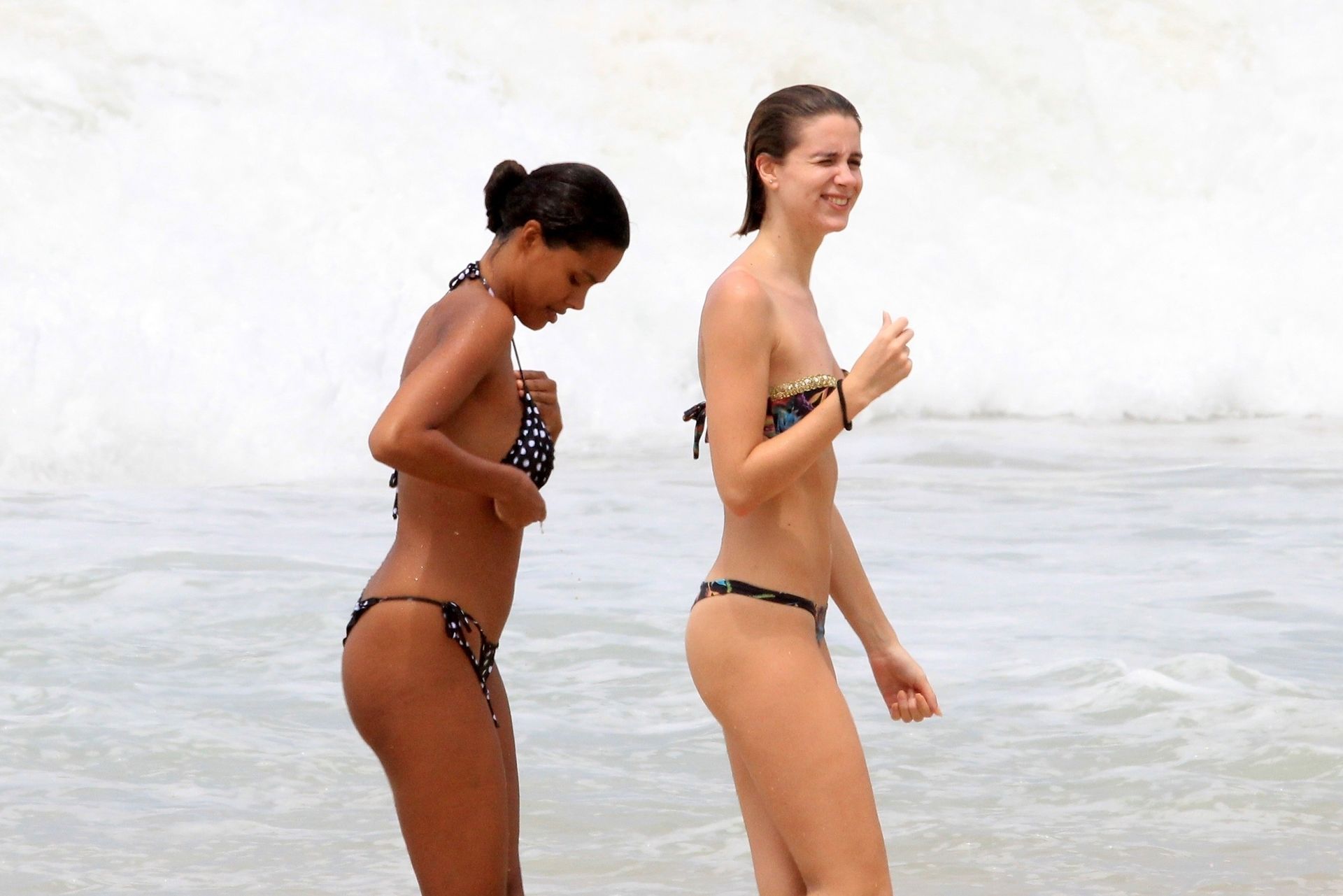 French actor Vincent Cassel’s busty wife Tina Kunakey nearly suffers a wardrobe malfunction while on the beaches of Rio de Janeiro, 01/29/2020. The model also shops for bikinis from a vendor on the beach.