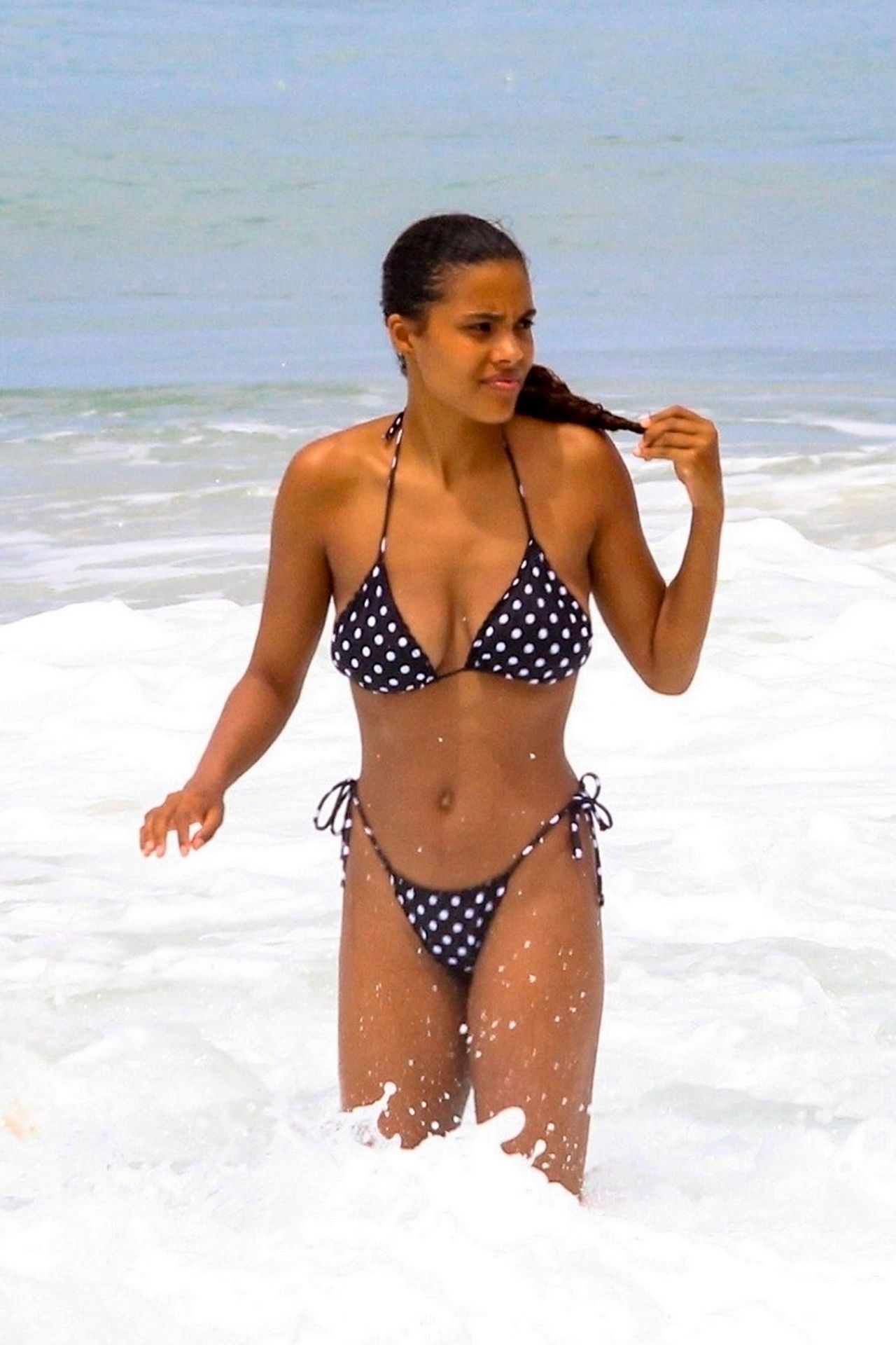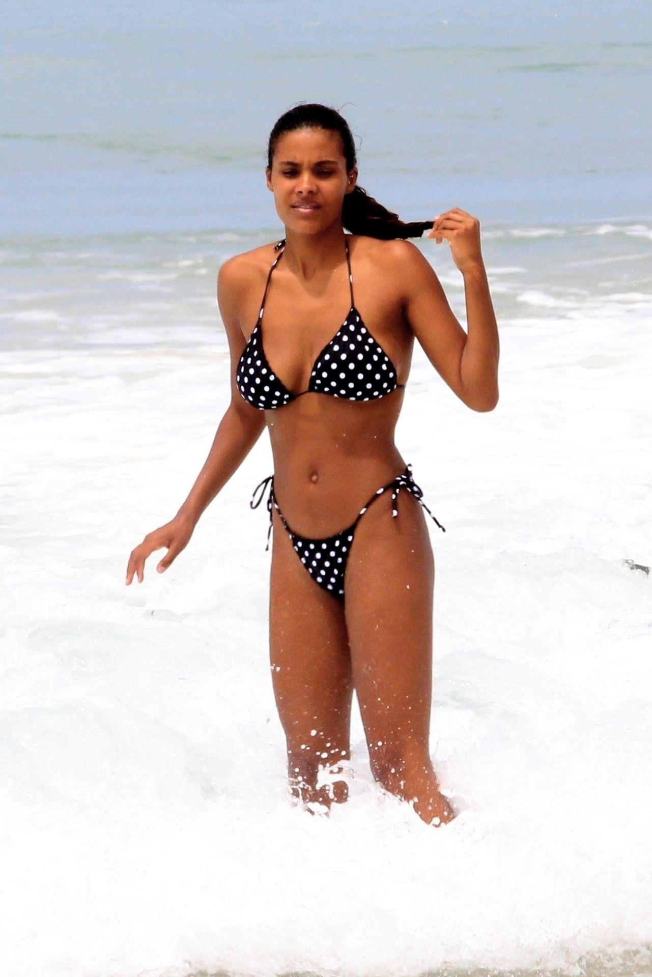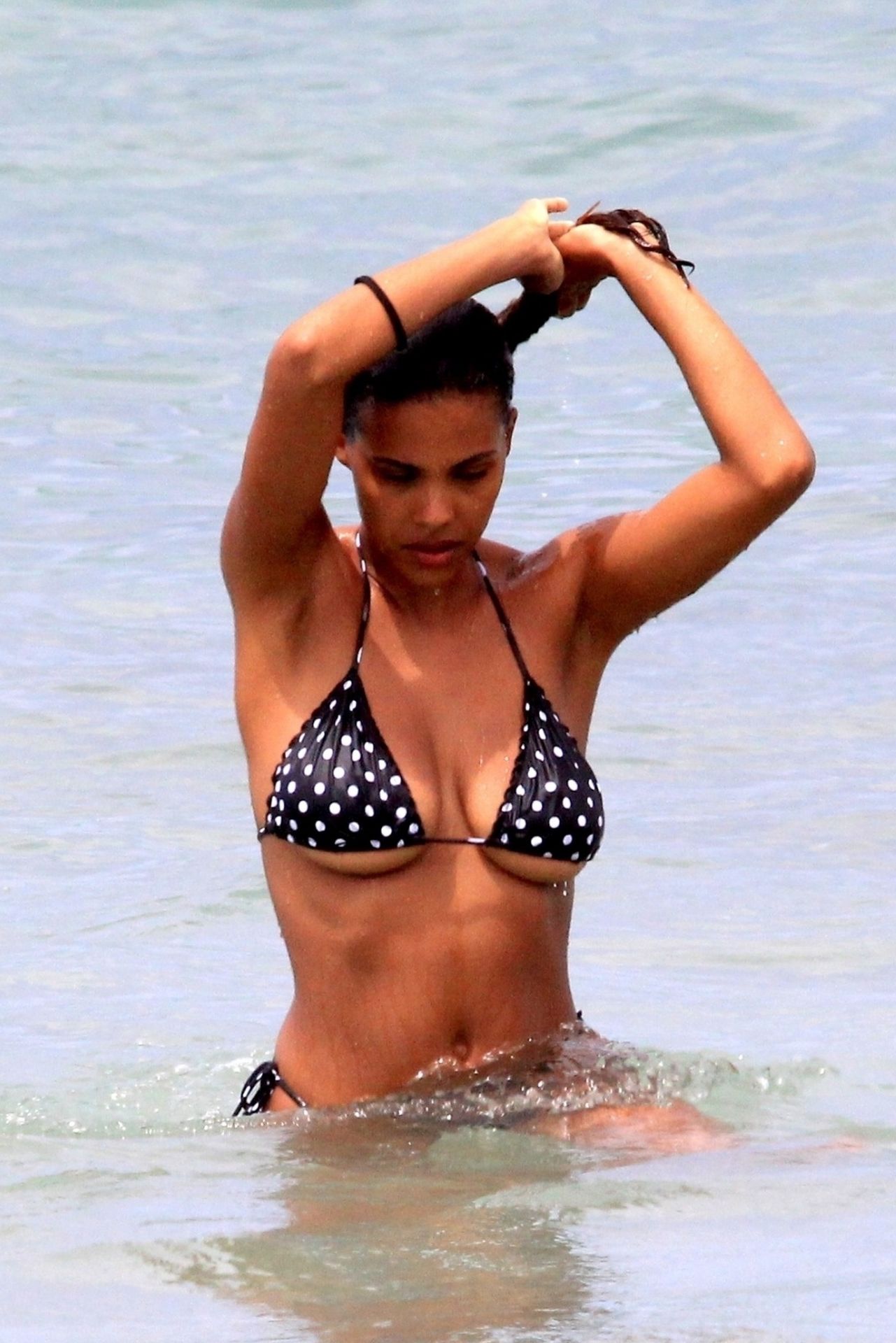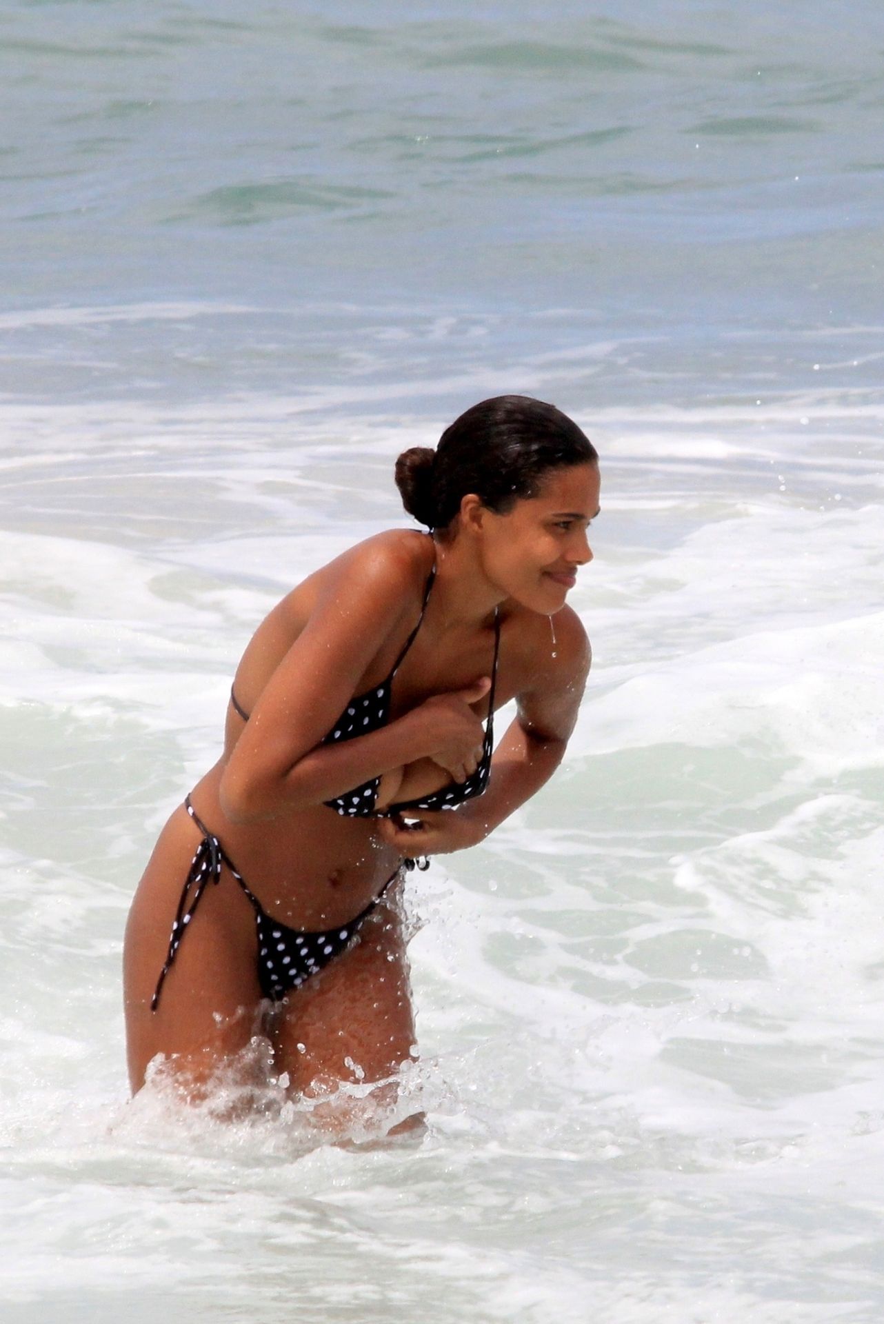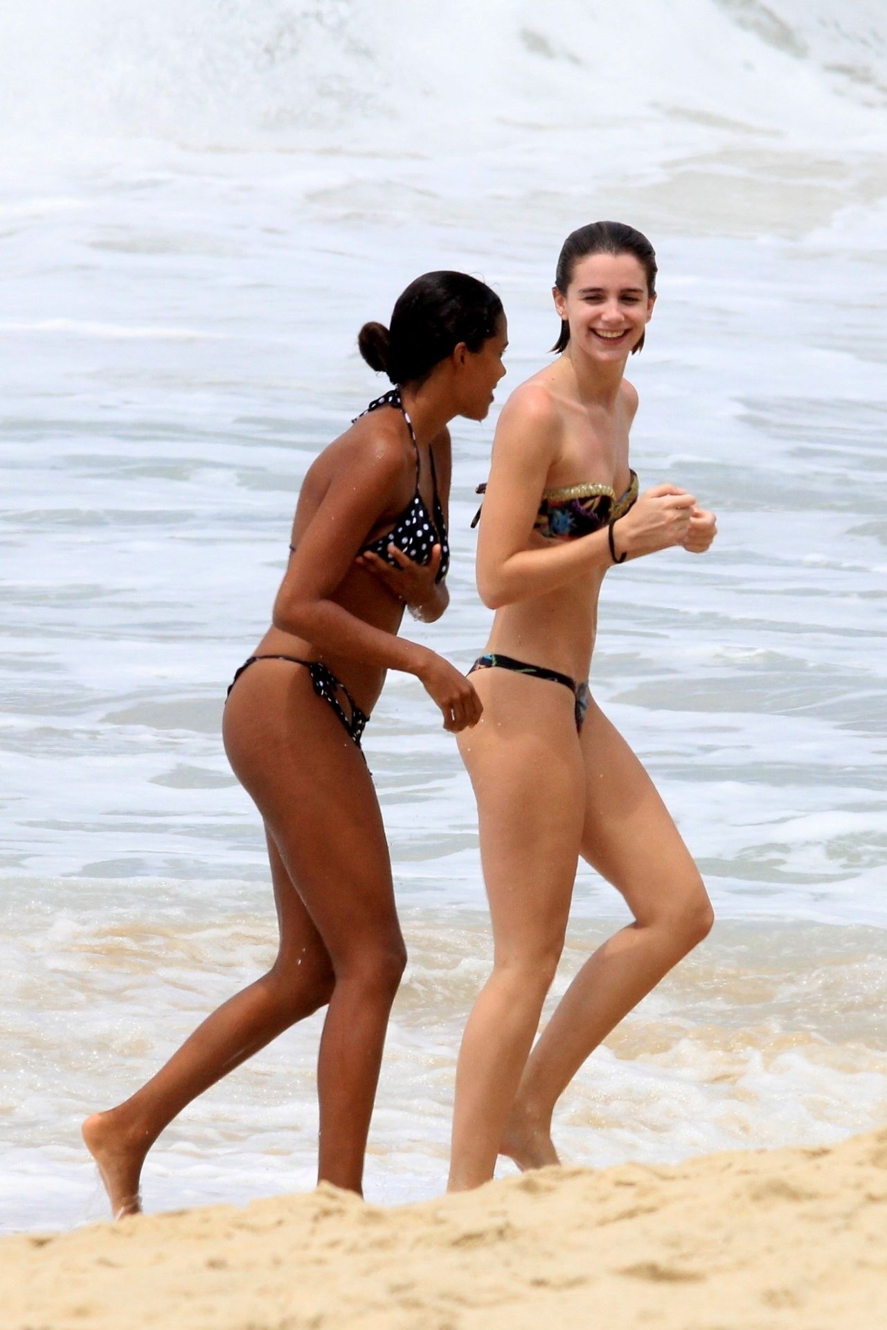 French actor Vincent Cassel’s busty wife Tina Kunakey nearly suffers a wardrobe malfunction while on the beaches of Rio de Janeiro, 01/29/2020. The model also shops for bikinis from a vendor on the beach.
