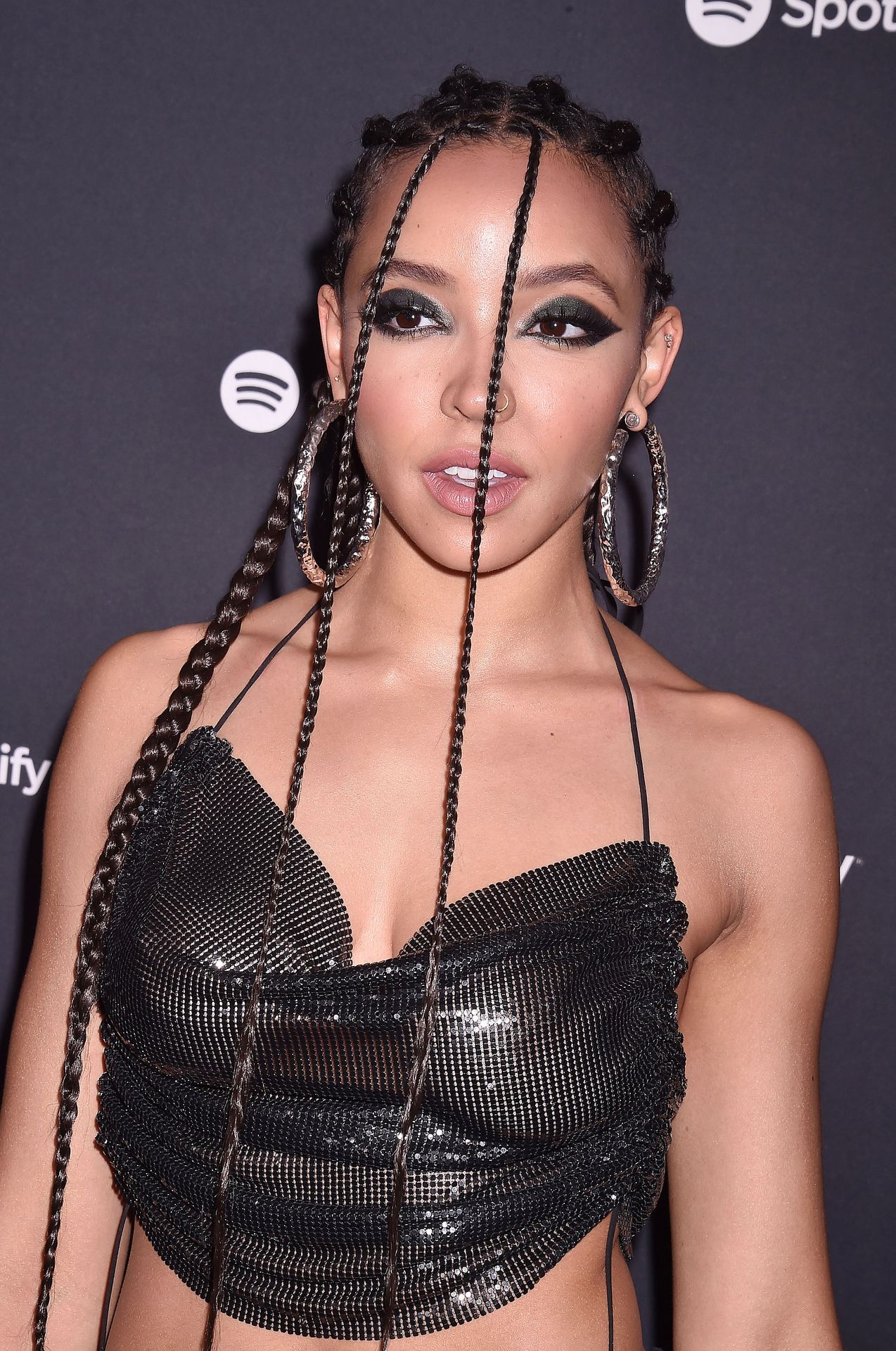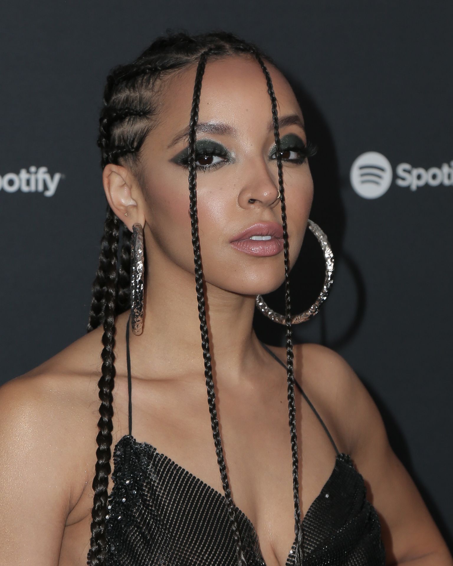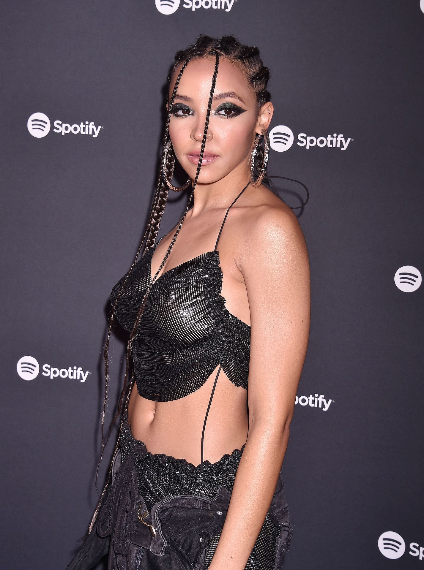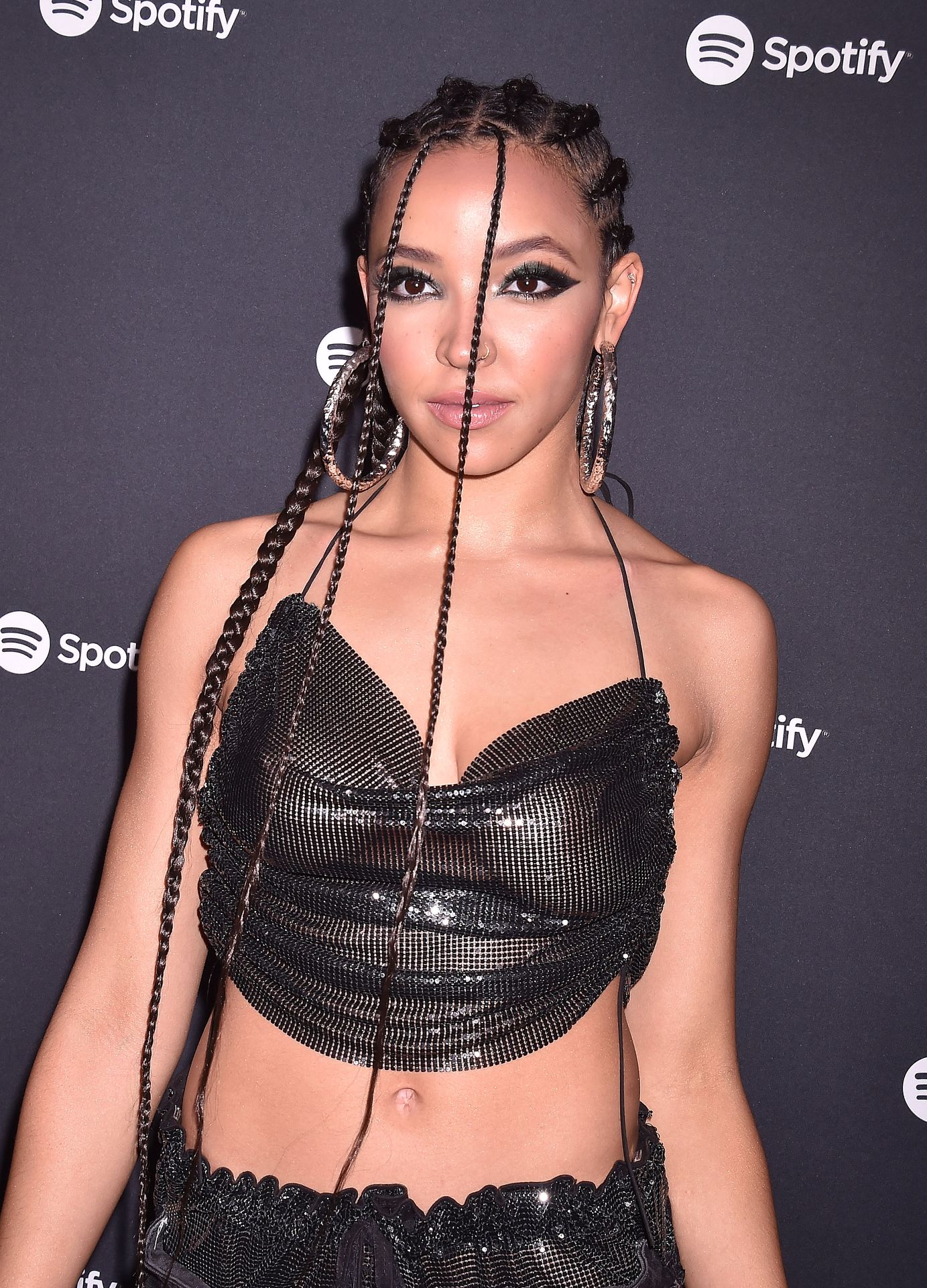 Singer Tinashe showed off her tits wearing a see-through top while attending the Spotify Best New Artist 2020 Party at The Lot Studios in West Hollywood, 01/23/2020.