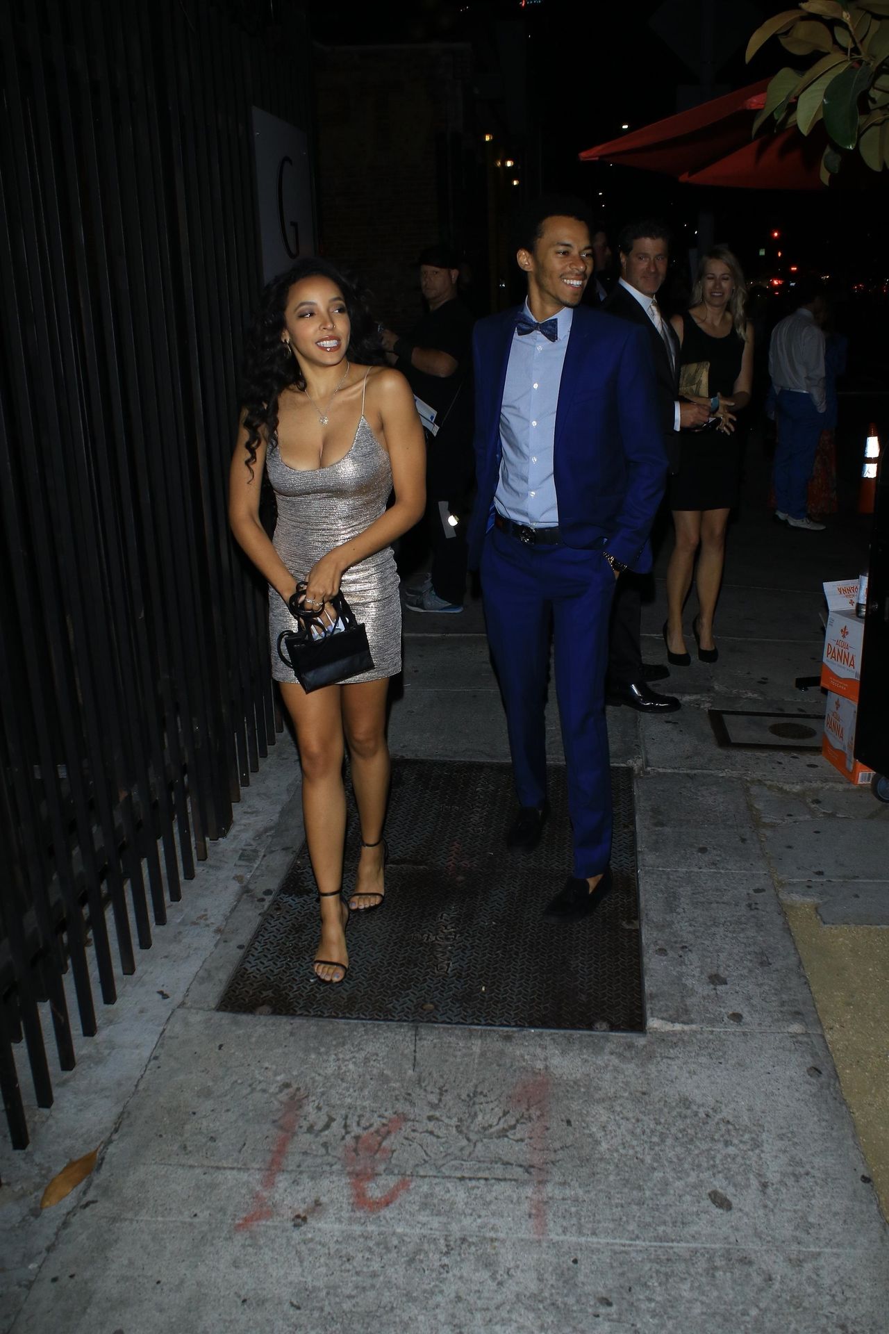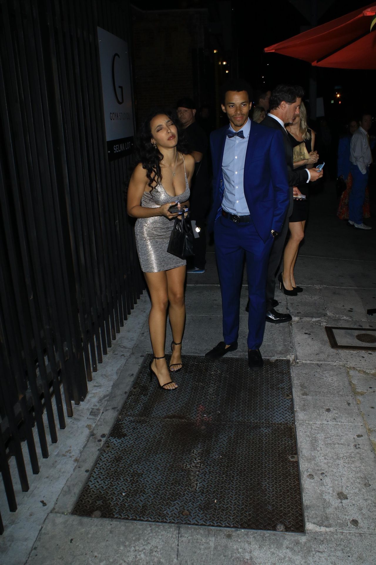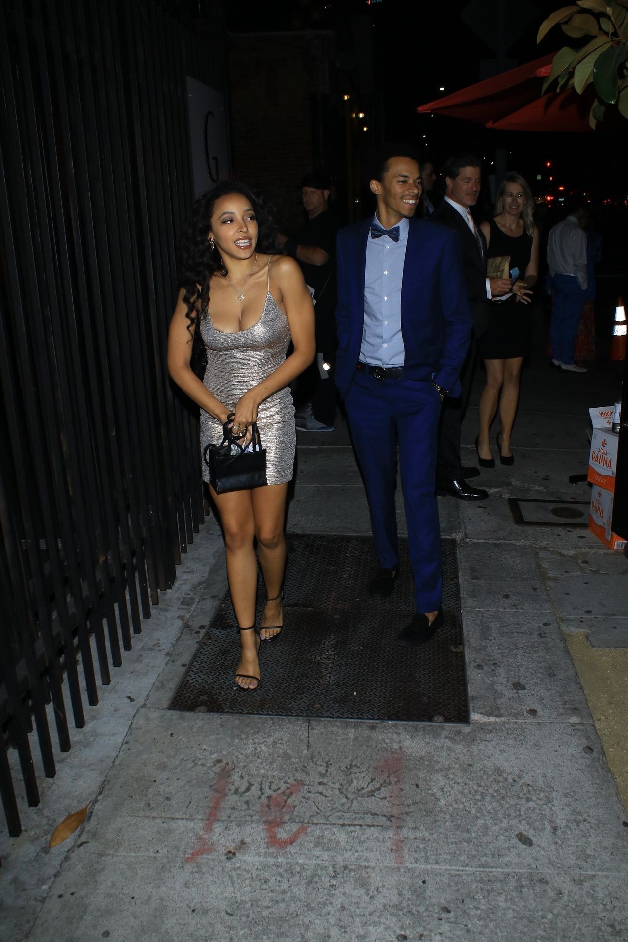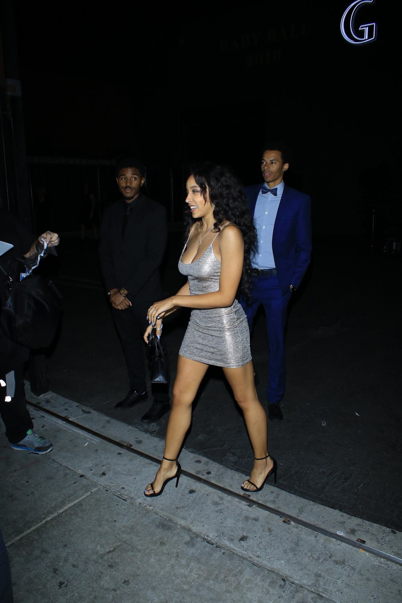 Singer Tinashe (26) posed in a short silver dress at the 5th Annual Baby Ball Gala held at Goya Studios in Los Angeles, 10/12/2019. She also was seen with Thulani Kachingwe outside Goya Studios.