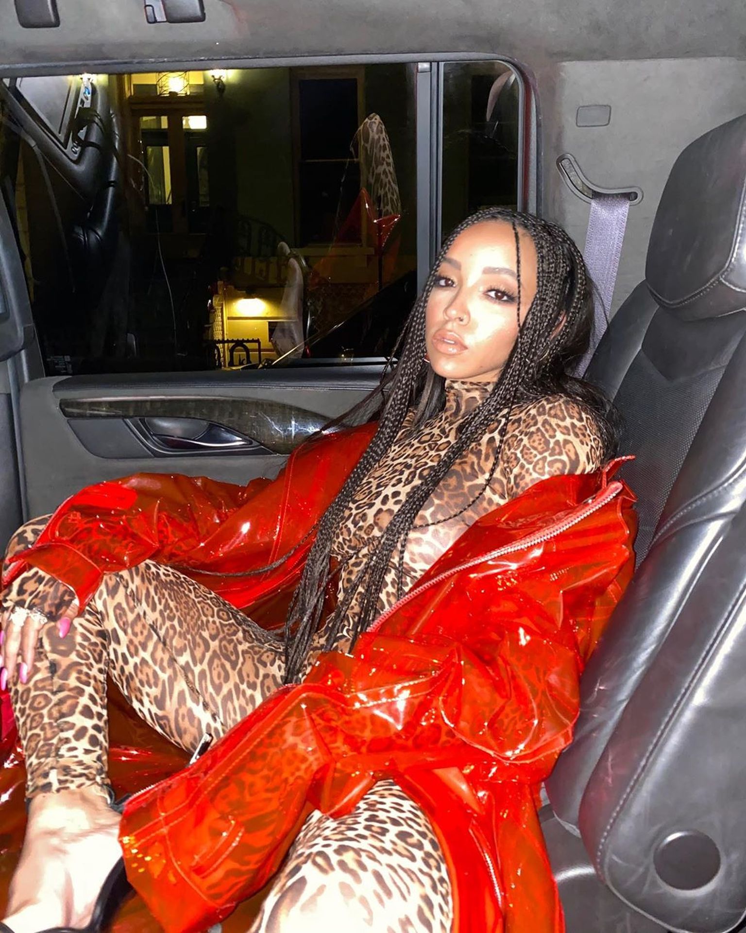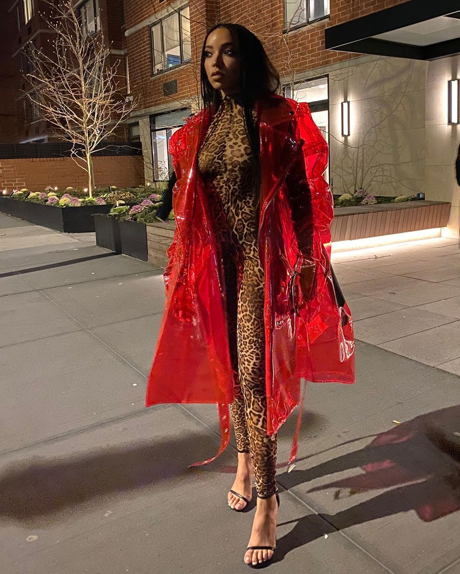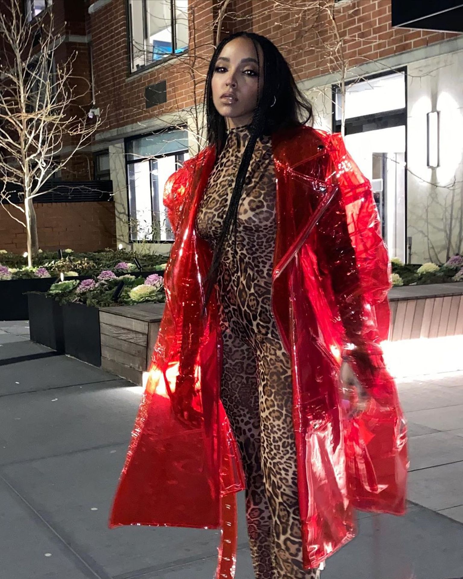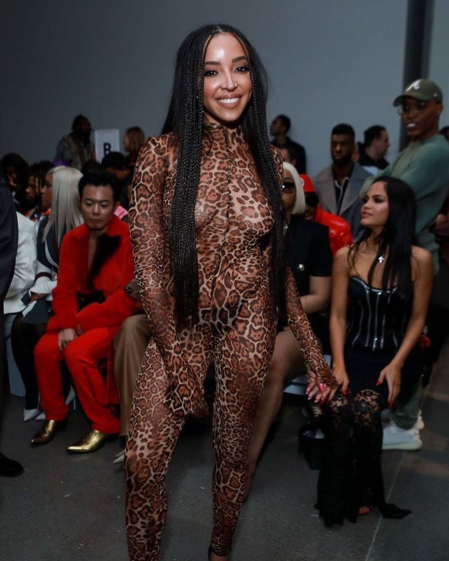 Tinashe was photographed in a leopard print see-through bodysuit while arriving at the LaQuan Smith Fashion Show during NYFW 2020 at Spring Studios in New York City, 02/08/2020.