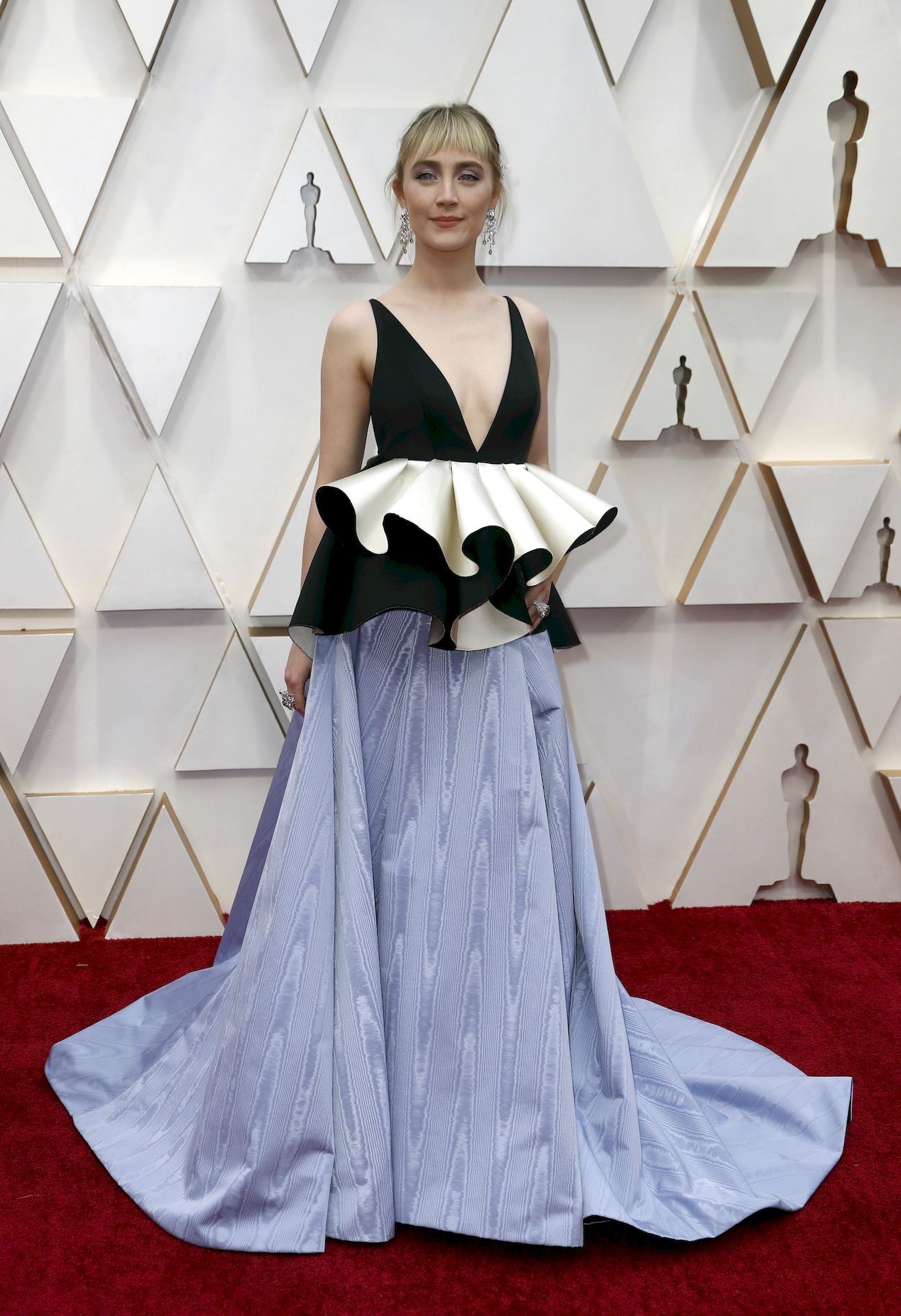 Actress Saoirse Ronan poses on the red carpet showing her tits during the Oscars arrivals at the 92nd Academy Awards in Hollywood, 09/02/202019.