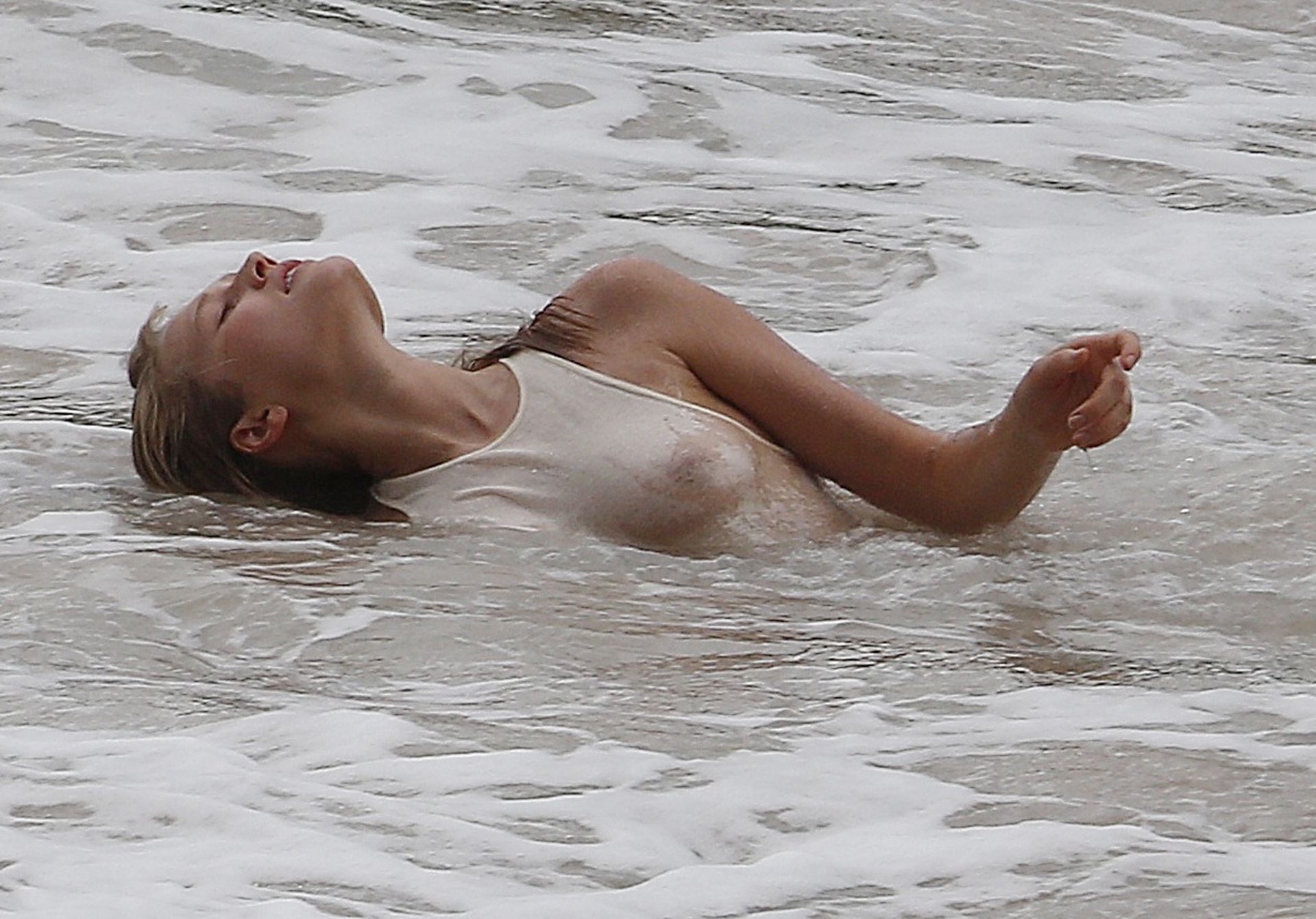 Toni Garrn was seen on the beach in St Barthelemy, 12/06/2013. The model decided to show off her bare breasts once again.