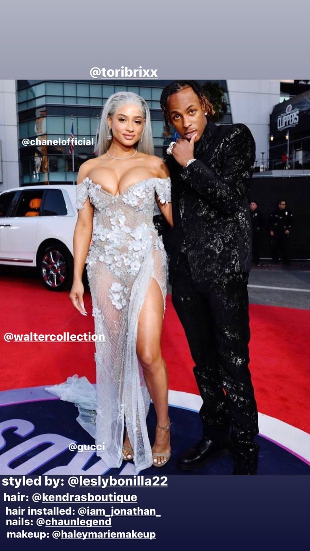 Rich The Kid, and busty model/DJ Tori Brixx (Hughes) pose at the 2019 American Music Awards held at the Microsoft Theater in Los Angeles, 11/24/2019. She made this evening!