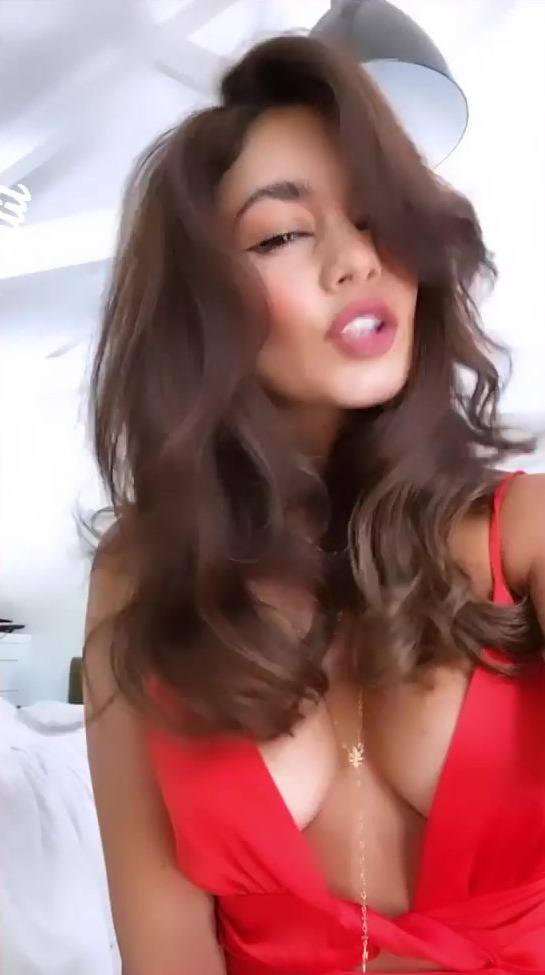 Vanessa Hudgens show off her beautiful boobs wearing sexy low-cut red dress for Jessica Rabbit photoshoot.