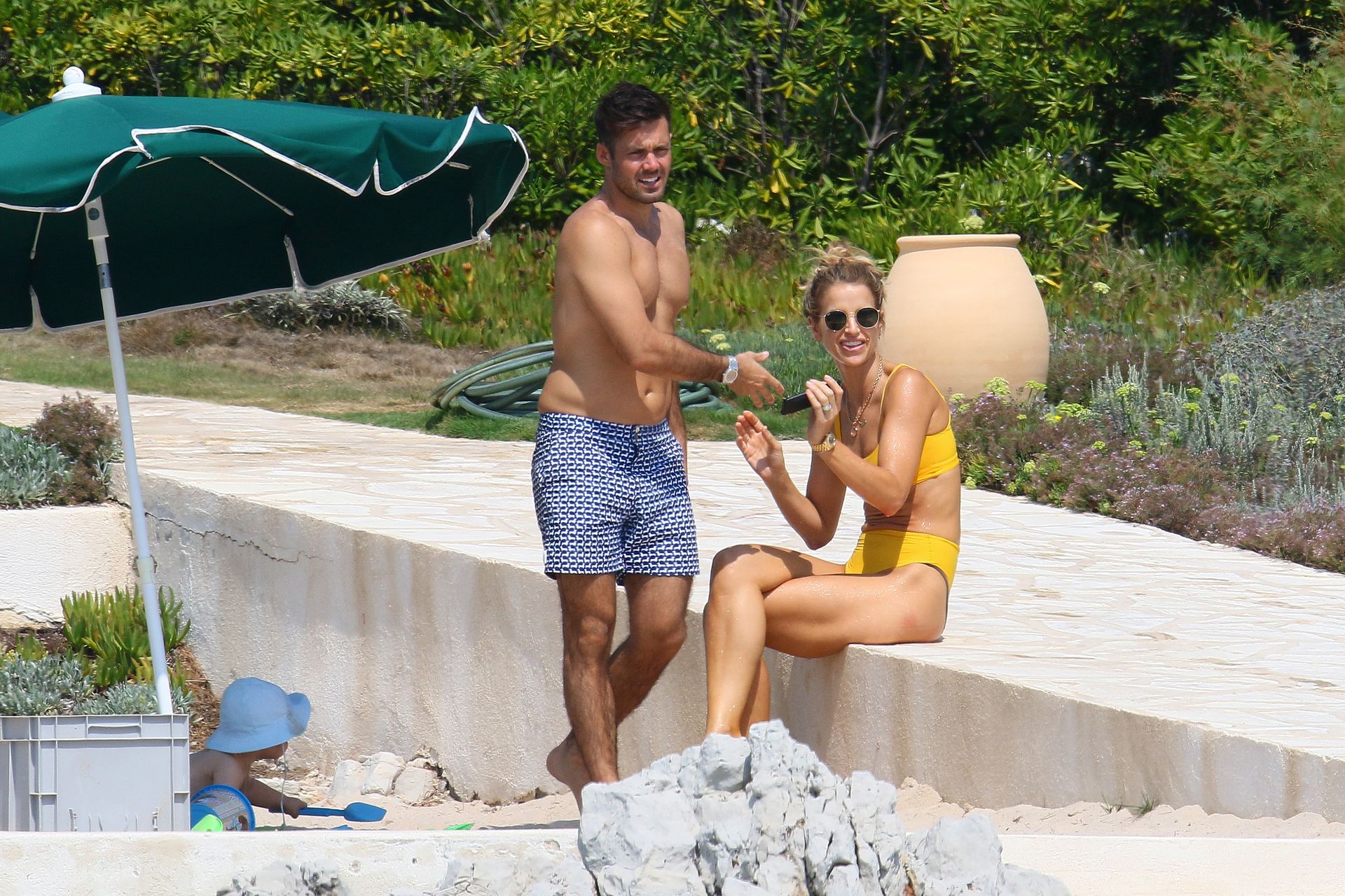 The Irish presenter, 33, husband Spencer Matthews, 31, and son Theodore were spotted enjoying the sun and taking a dip in the sea.
