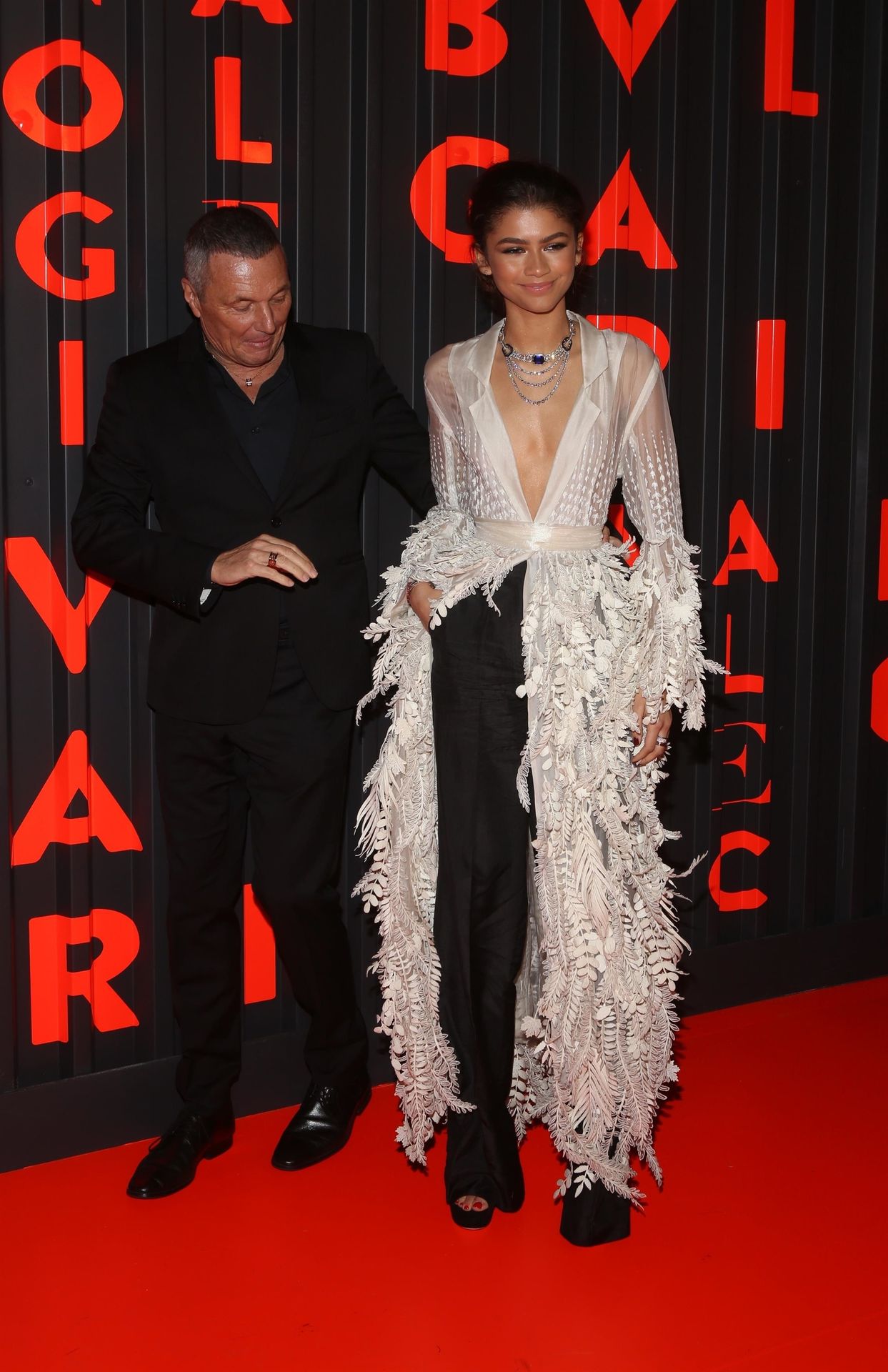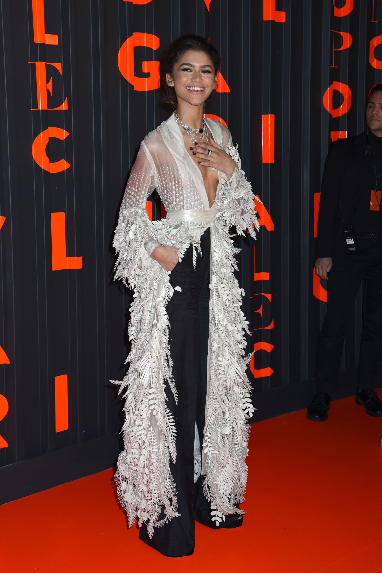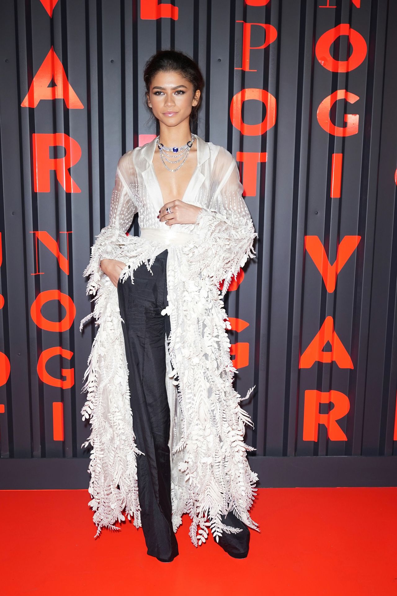 Braless actress Zendaya was photographed in a sexy outfit on the red carpet of the Bvlgari B.zero1 Rock Party Held at Duggal Greenhouse Brooklyn, New York, 02/06/2020.