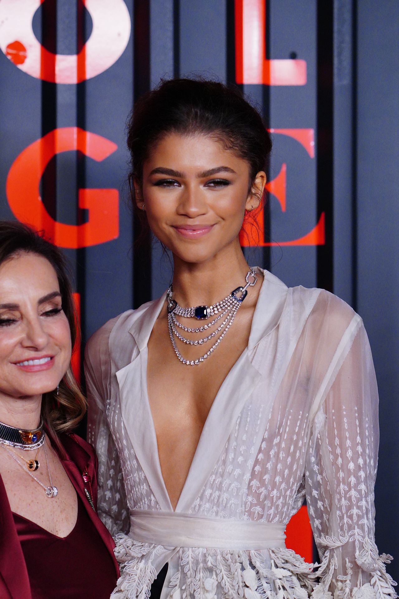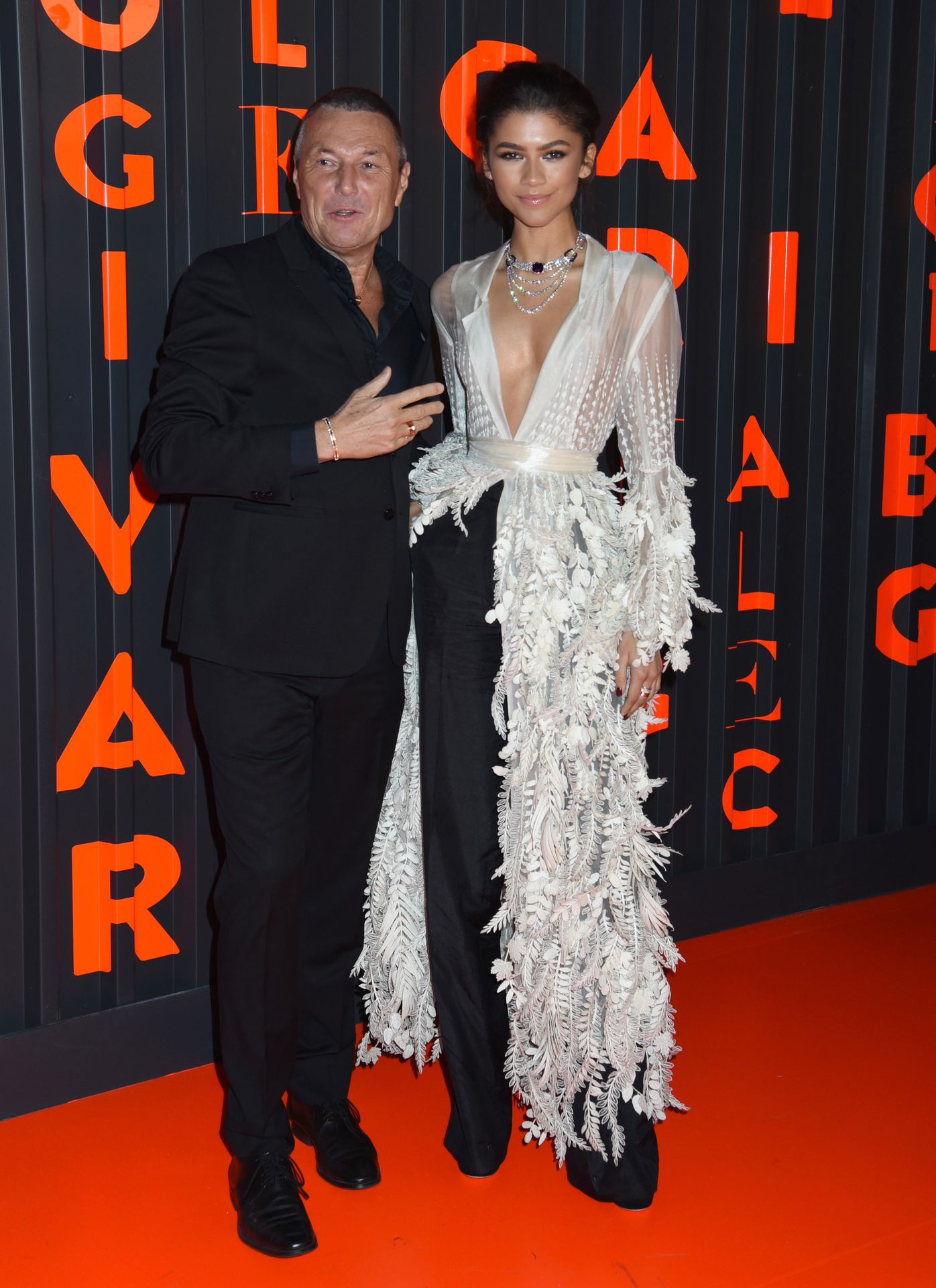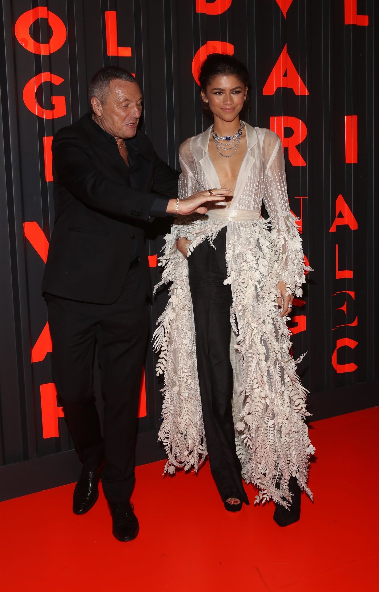 Braless actress Zendaya was photographed in a sexy outfit on the red carpet of the Bvlgari B.zero1 Rock Party Held at Duggal Greenhouse Brooklyn, New York, 02/06/2020.